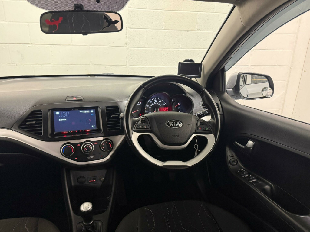 Discover this 2013 Kia Picanto 2, a smart choice for those seeking an economical and well equipped city car. This particular model boasts a 1.0 litre petrol engine, offering a blend of efficiency and practicality for everyday driving. Inside, you'll find comfort and convenience with air conditioning to keep you cool and Bluetooth with voice recognition, allowing for hands free calls and music streaming.This Kia Picanto stands out with its impressive fuel economy, achieving up to 67 miles per gallon, which is excellent for keeping running costs down. Furthermore, its low CO2 emissions mean it's kinder to the environment. The vehicle also benefits from being in a low insurance group, making it an affordable option for new drivers or those looking to minimise their annual expenses. These factors combined indicate that this Picanto offers a superior ownership experience compared to many other vehicles in its class. v power socket, 14in alloy wheels, 3 x passenger assist grips, 4-speaker system, 60-40 split folding 2nd row seats, abs - anti lock braking system, adaptive brake lights, air conditioning, airbags - curtain, airbags - driver, airbags - passenger, airbags - side, alarm system, all-round height adjustable headrests, bas - brake assist system, black radiator grille with chrome surround, bluetooth with voice recognition, body coloured bumpers, body coloured door mirrors, centre fascia - metallic, child safety rear door locks, coat hooks - rear, cupholders - centre console with ambient lighting, day and night rear-view mirror, daytime running lights, door handles - chrome, door handles - interior - chrome finish, drivers seat height adjuster, ebd - electronic brakeforce distribution, esc - electronic stability control, electric windows - front and rear, electrically adjustable and heated door mirrors, electrically folding door mirrors, emergency stop signalling - ess, engine immobiliser, front cabin map light, front door map pockets, front fog lights, front passenger airbag cut off switch, front passenger seat undertray, front seatback pockets, glovebox, headlight levelling system, heated rear window, high mounted brake light, hill-start assist control - hac, isofix child seat top tethers and anchor fixings, impact sensing auto door unlocking, inside handle over ride, instant mobility tyre inflation system, integrated indicator lights led in door mirrors, leather trimmed gear shift, leather trimmed steering wheel, locking wheel nuts, luggage area light, luggage compartment - load cover, motor driven power steering - mdps, rds radio with cd and mp3, rear combination lights, remote central locking with folding key, seatbelt reminder warning, side impact protection system, speed sensing auto door locking, speed/impact sensing, steering wheel mounted audio controls, sunvisors with vanity mirrors and ticket holder, tilt steering wheel adjustment, tinted glass, trip computer, tyre repair kit, usb and aux ports, vsm - vehicle stability management, ipod connectivity