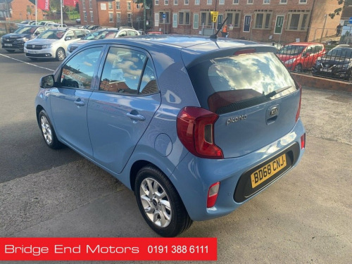 Bridge End Motors is pleased to offer for sale an immaculate, ultra reliable, 1 owner, full service history (7 services), low mileage (12056 miles), cheap to run and insure, low CO2 emissions Euro 6 2019 Kia Picanto 1.0 2 5 door with parking sensors, air con, Bluetooth, smart alloy wheels, and an excellent economy engine achieving up to 68 miles per gallon! The Picanto 1.0 2 is known for its quality interior trim, excellent reliability, quality build, and deceptive amounts of luggage and cabin space! The Picanto is highly rated for its ride comfort, sprightly performance handling, and excellent all round visibility achieved through Kia's traction control and electronic brake stability system. 1 x Coat Hooks - Rear, 12V Power Socket - Front, 14in Alloy Wheels, 2.6in Monochrome Cluster Display, 3 x Passenger Assist Grips, 3.8in Monochrome Audio Display with RDS, 4-Speaker System, 60-40 Split Folding 2nd Row Seats, ABS with Electronic Brakeforce Distribut, Air Conditioning, All-Round 3-Point Seatbelts, All-Round Height Adjustable Headrests, Anti-Theft Alarm System, Automatic Headlight Control, Black Radiator Grille with Chrome Surrou, Bluetooth with Music Streaming, Body Coloured Bumpers, Body Coloured Exterior Mirrors and Exter, Centre Console Cupholders, Child Safety Rear Door Locks, Daytime Running Lights, Driver and Front Passenger Sunvisors wit, Drivers Seat Height Adjustment,