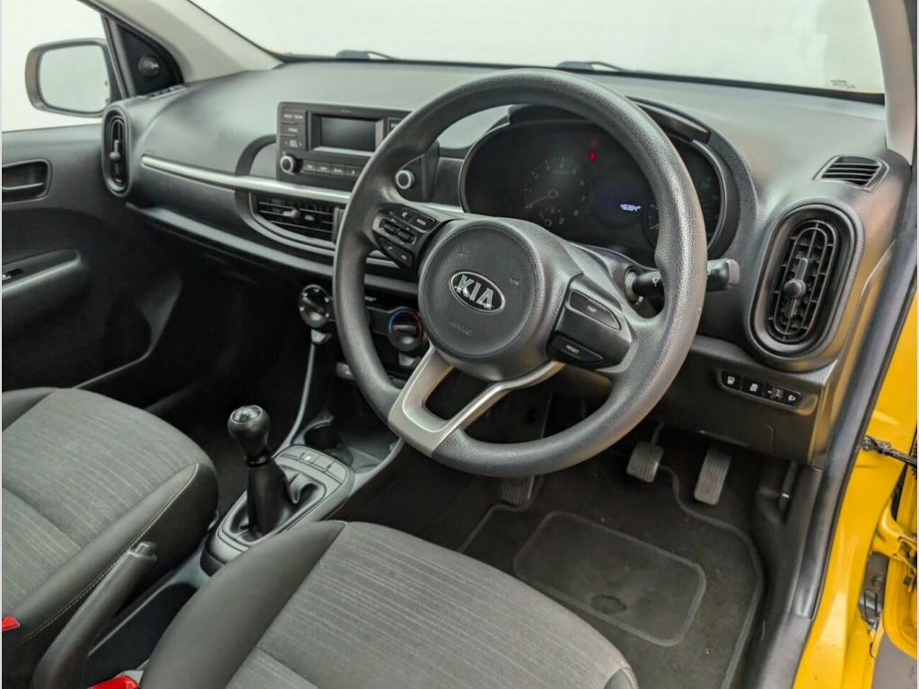 Great looking Kia Picanto in Yellow with Heated Rear Window - DAB Radio - Bluetooth - Hill-Start Assist Control - HAC - Tinted Glass 6 Services, last serviced 17/10/25 at 46382 miles. The Kia Picanto 1.0 DPi 1 is a compact, efficient 5-door hatchback with 66 bhp petrol power and a smooth manual gearbox. Euro 6 compliant and perfect for city driving, it offers great fuel economy, easy parking, and practical style—ideal for first-time drivers or urban commuters. 1 x Coat Hooks - Rear, 12V Power Socket - Front, 14in Steel Wheels, 2-Speaker System, 2.6in Monochrome Cluster Display, 3 x Passenger Assist Grips, 3.8in Monochrome Audio Display with RDS , 60-40 Split Folding 2nd Row Seats, ABS with Electronic Brakeforce Distribut, All-Round 3-Point Seatbelts, All-Round Height Adjustable Headrests, Anti-Theft Alarm System, Automatic Headlight Control, Black Interior Door Handles, Black Radiator Grille with Silver Paint , Bluetooth with Music Streaming, Body Coloured Bumpers, Centre Console Cupholders, Child Safety Rear Door Locks, Daytime Running Lights, Driver and Front Passenger Sunvisors wit, Electronic Stability Control - ESC and V, Emergency Stop Signa