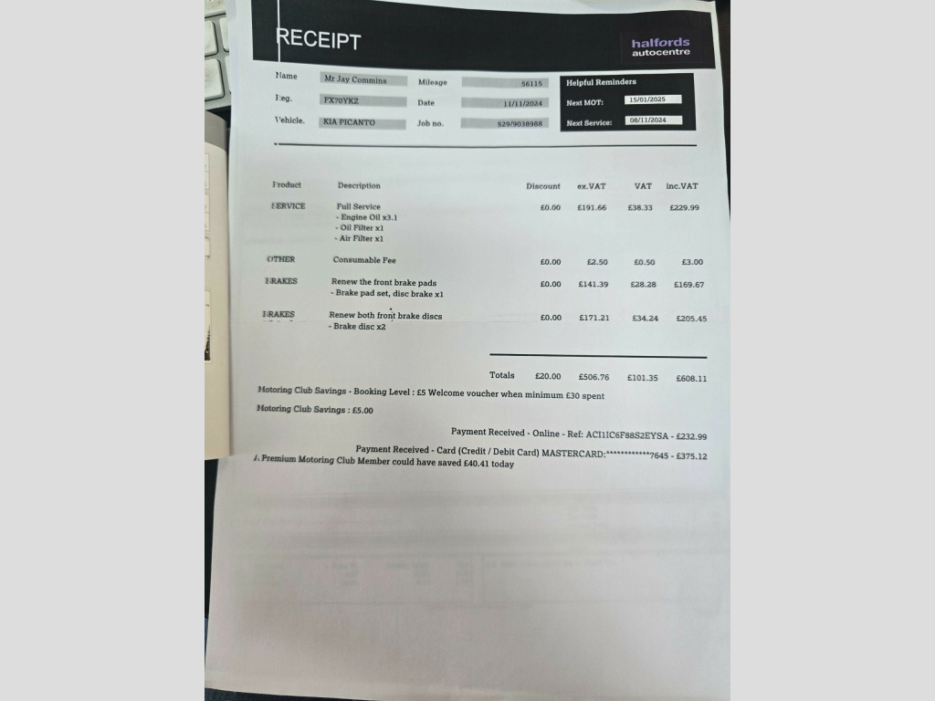 This 2021 Kia Picanto DPi 3 is a superb example, having been owned by just one careful keeper from new. It features a responsive 1.0 litre petrol engine and meets Euro 6 emissions standards. Inside, you'll find a wealth of modern technology designed for convenience and connectivity, including Apple CarPlay and Android Auto with voice control, allowing seamless integration with your smartphone. Enjoy your music on the go with Bluetooth and music streaming, and navigate tight spots with ease thanks to the reversing camera system with dynamic guidelines. The cabin comfort is further enhanced by automatic air conditioning, ensuring a pleasant environment whatever the weather.This Picanto truly shines with its impressive fuel economy, achieving a remarkable 58 miles per gallon, which indicates it is more economical than many similar vehicles. Furthermore, its low insurance group rating means running costs are kept to a minimum, making it an attractive choice for many drivers. The low CO2 emissions also highlight its efficiency and environmental consideration compared to other cars in its class. This combination of low running costs, modern features, and single owner provenance makes this Kia Picanto a very appealing option.. 1 x Coat Hooks - Rear, 12V Power Socket - Front, 15in Alloy Wheels, 3 x Passenger Assist Grips, 6-Speaker System, 60-40 Split Folding 2nd Row Seats, 8in Touchscreen Satellite Navigation with RDS and DAB with Telematics, ABS with Electronic Brakeforce Distribution - EBD and Brake Assist System - BAS, Advanced Driving Assistance Pack - ADAP, All-Round 3-Point Seatbelts, All-Round Height Adjustable Headrests, Android Auto with Voice Control, Anti-Theft Alarm System, Apple CarPlay with Voice Control, Automatic Air Conditioning, Automatic Headlight Control, Black Radiator Grille with Chrome Surround, Bluetooth with Music Streaming, Body Coloured Bumpers, Body Coloured Mirrors and Chrome Exterior Handles, Centre Console Cupholders, Centre Console with Storage Box and Sliding Armrest, Child Safety Rear Door Locks, Cruise Control with Speed Limiter, Daytime Running Lights, Driver and Front Passenger Sunvisors with Vanity Mirror, Drivers Seat Height Adjustment, Electrically Folding-Adjustable and Heated Door Mirrors with LED Indicator Lights, Electronic Stability Control - ESC and Vehicle Stability Management - VSM, Emergency Stop Signalling - ESS, Engine Immobiliser, External Temperature Display, Front Cabin Light, Front Fog Lights, Front Passenger Airbag Cut Off Switch, Front Passenger Seatback Pocket, Front Seatbelt Height Adjusters, Front Seatbelt Pre-Tensioners and Load Limiters, Front and Rear Electric Windows with Drivers Auto Up-Down Function, Glovebox, Headlight Levelling Device, Heated Rear Window, High Gloss Lower Centre Fascia Trim - Door Armrest and Air Vents, High Mounted Brake Light, Hill-Start Assist Control - HAC, ISOFIX Child Seat Top Tethers and Anchor Fixings, Impact Sensing Auto Door Unlocking, Kia Connected Services Featuring TomTom, Leather Trimmed Steering Wheel with Leather Trimmed Gearshift, Locking Wheel Nuts, Luggage Area Light, Luggage Area Parcel Shelf, Motor Driven Power Steering - MDPS, Multi Focus Reflector Headlights with Black Bezel, Rear Fog Light, Rear Parking Sensors, Rear Wiper-Washer, Remote Central Locking with Folding Key, Reversing Camera System with Dynamic Guidelines, Seatbelt Reminder Warning, Side Impact Protection System, Silver Paint Finished Interior Door Handles, Sliding and Reclining Front Seats, Speed Variable Front Wipers, Steering Wheel Mounted Audio Controls, TMK - Tyre Mobility Kit, Tachometer, Tilt Steering Wheel Adjustment, Tinted Glass, Torque Vectoring Brake Based and Straight-Line Stability - SLS, Trip Computer, Twin Curtain Airbags, Twin Front Airbags and Knee, Twin Side Airbags - Front, Tyre Pressure Monitoring System - TPMS, USB Ports for Connection of a Media Device, Visible Vehicle Identification Number - VIN, Welcome and Follow-Me-Home Light Functionality.