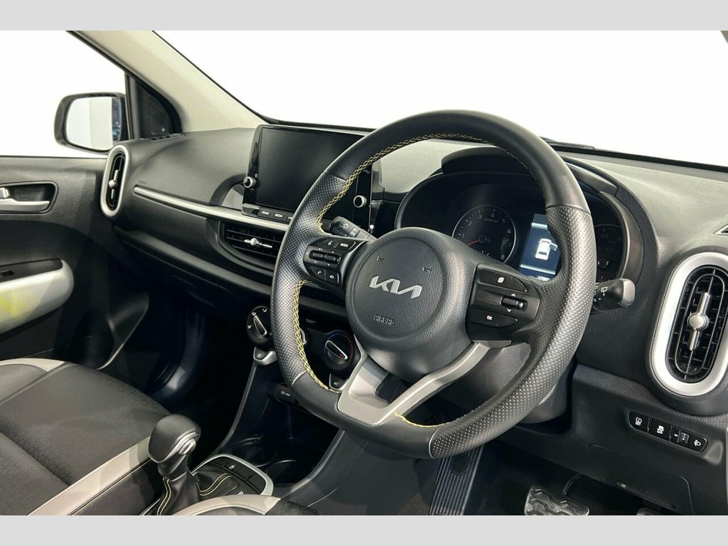 This 2022 Kia Picanto DPi X Line is a superb example, having had only one owner since new. This stylish hatchback boasts a 1.0L Euro 6 petrol engine, making it an efficient choice for city driving and beyond. The X Line trim level comes equipped with a range of convenient features, including Bluetooth with music streaming for your entertainment, automatic headlights for enhanced visibility, and rear parking sensors complemented by a reversing camera system with dynamic guidelines to assist with manoeuvring. You'll also appreciate the comfort provided by the air conditioning, ensuring a pleasant cabin environment whatever the weather. The Kia Picanto DPi X Line stands out with its impressive fuel economy, achieving an excellent 52 miles per gallon, which is better than many other vehicles in its class. Furthermore, its low CO2 emissions and low insurance group rating mean that running costs are kept to a minimum, making it an economical and practical choice for many drivers. This well maintained, single owner vehicle offers a compelling package of style, technology, and affordability. 1 x Coat Hooks - Rear, 12V Power Socket - Front, 16in Alloy Wheels, 3 x Passenger Assist Grips, 6-Speaker System, 60-40 Split Folding 2nd Row Seats, 8in Touchscreen Display, ABS with Electronic Brakeforce Distribut, Advanced Driving Assistance Pack - ADAP, Air Conditioning, All-Round 3-Point Seatbelts, All-Round Height Adjustable Headrests, Android Auto with Voice Control, Anti-Theft Alarm System, Apple CarPlay with Voice Control, Automatic Headlight Control, Bi-Function Projection Headlights, Black Radiator Grille with Silver Paint , Black Side Sill Moulding and Wheel Arch , Bluetooth with Music Streaming, Body Coloured Bumpers, Body Coloured Exterior Mirrors and Exter, Centre Console Cupho