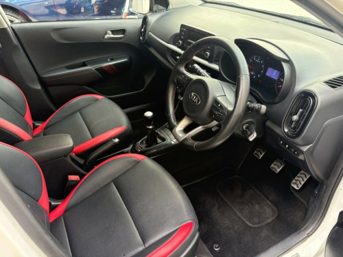 This 2017 Kia Picanto GT Line is presented with a clear vehicle history check, offering you peace of mind.  As a 1.0L petrol model, this Euro 6 compliant car is a smart choice for city driving and beyond.  Inside, you'll find comfortable air conditioning to keep you cool, and the convenience of Bluetooth with music streaming for your journeys.  The GT Line trim also includes Two tone Leather Interior as well as automatic headlight control, ensuring your lights are always on when needed.  This Kia Picanto stands out with its impressive fuel economy, achieving up to 64 miles per gallon, which is excellent for its class. Furthermore, its low insurance group rating means more money in your pocket. The vehicle also boasts low CO2 emissions, highlighting its efficiency and environmental consideration compared to many other cars.  This example has been well maintained and benefits from a very good service history and a new MOT with no advisories. 1 Key only. 1 x Coat Hooks - Rear, 12V Power Socket - Front, 16in Alloy Wheels, 2.6in Supervision Monochrome Cluster Dis, 3 x Passenger Assist Grips, 3.8in Monochrome Audio Display with RDS, 6-Speaker System, 60-40 Split Folding 2nd Row Seats, ABS with Electronic Brakeforce Distribut, Advanced Driving Assistance Pack - ADAP, Air Conditioning, All-Round 3-Point Seatbelts, All-Round Height Adjustable Headrests, Anti-Theft Alarm System, Automatic Headlight Control, Autonomous Emergency Braking - AEB, Bi-Function Projection Headlights, Black Radiator Grille with Chrome Surrou, Bluetooth with Music Streaming, Body Coloured Bumpers, Body Coloured Exterior Mirrors and Exter, Body Coloured Side Sill Mouldings,