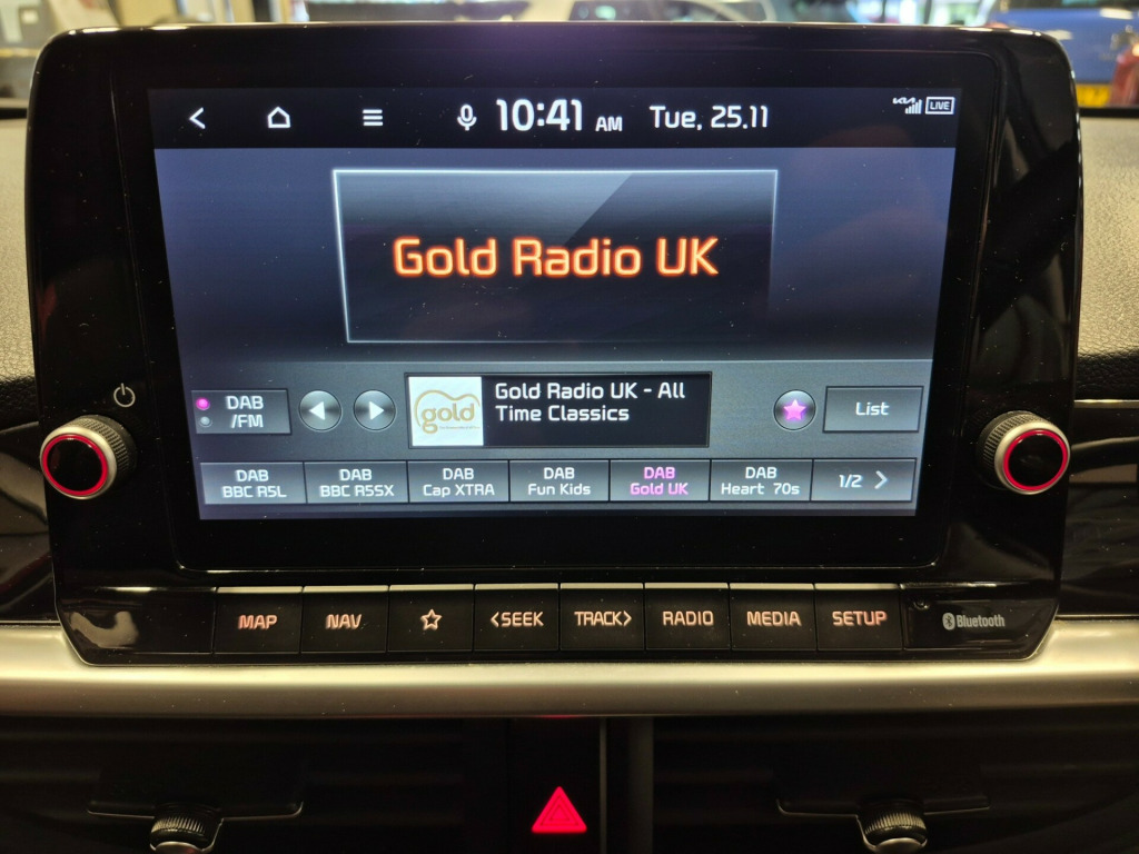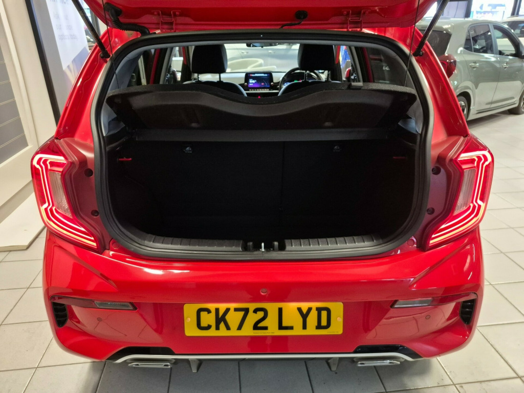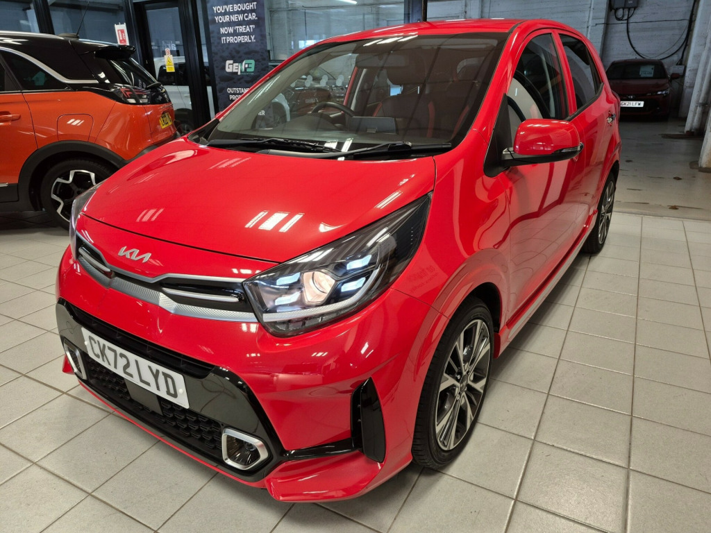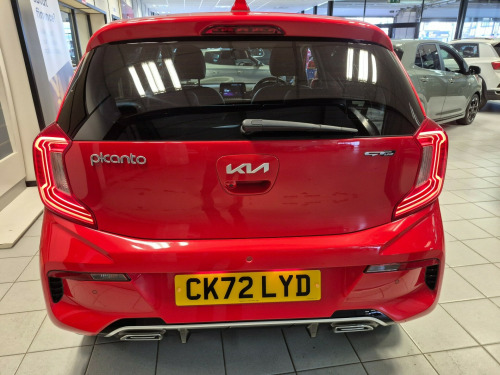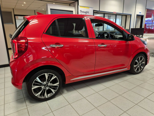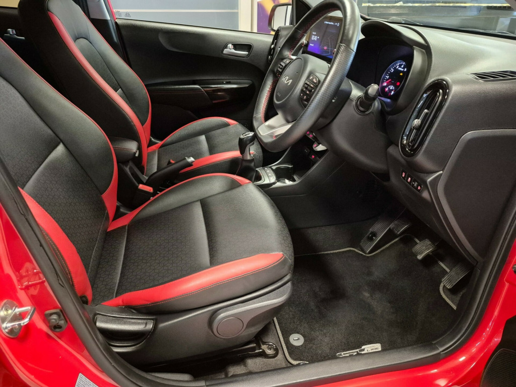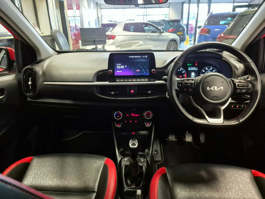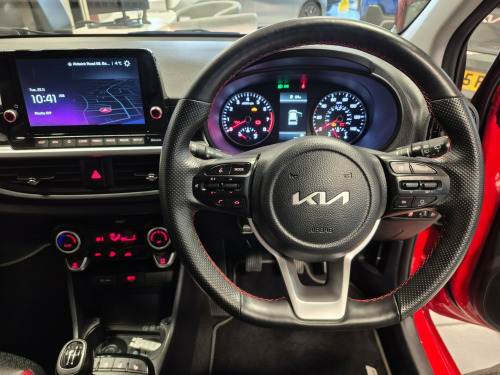 This 2022 Kia Picanto 1.0 T-GDi GT-Line S Hatchback with only 10289 miles on the clock is a perfect choice for those in need of a reliable and efficient car. This 5-door hatchback, powered by petrol and equipped with a manual transmission, is ULEZ compliant and comes with MOT until 27/08/2026. With 4 seats and including features such as 1 x Coat Hooks - Rear, 3 x Passenger Assist Grips, 60-40 Split Folding 2nd Row Seats, All-Round Height Adjustable Headrests, and Automatic Air Conditioning, this car is practical and comfortable for everyday use. Don't miss out on this opportunity to own a low-mileage, well-maintained vehicle with plenty of desirable features. x coat hooks - rear, 3 x passenger assist grips, 60-40 split folding 2nd row seats, all-round height adjustable headrests, automatic air conditioning, black and red accents - front door armrest, centre console cupholders, centre console with storage box and sliding armrest, d-cut steering wheel, driver and front passenger sunvisors with vanity mirror - illuminated drivers side, drivers seat height adjustment, front cabin light, front passenger seatback pocket, glovebox, heated front seats, heated steering wheel, high gloss lower centre fascia trim - door armrest and air vents, leather trimmed steering wheel with leather trimmed gearshift, luggage area light, luggage area parcel shelf, satin chrome interior door handles, sliding and reclining front seats, speed variable front wipers, steering wheel mounted audio controls, tilt steering wheel adjustment, 12v power socket - front, 6-speaker system, 8in touchscreen satellite navigation, android auto with voice control, apple carplay with voice control, bluetooth with music streaming, kia connect uvo, usb ports for connection of a media device, wireless mobile phone charger, 16in alloy wheels, black radiator grille with silver paint surround, body coloured bumpers, body coloured mirrors and chrome exterior handles, body coloured side sill mouldings, chrome side window trim, electrically folding-adjustable and heated door mirrors with led indicator lights, front and rear electric windows with drivers auto up-down function, heated rear window, locking wheel nuts, privacy glass - rear windows and tailgate, refined sports front and rear bumper with gloss black skid plates - twin exhaust, tmk - tyre mobility kit, abs with electronic brakeforce distribution - ebd and brake assist system - bas, advanced driving assistance pack - adap, all-round 3-point seatbelts, anti-theft alarm system, child safety rear door locks, electronic stability control - esc and vehicle stability management - vsm, emergency stop signalling - ess, engine immobiliser, front passenger airbag cut off switch, front seatbelt height adjusters, front seatbelt pre-tensioners and load limiters, hill-start assist control - hac, isofix child seat top tethers and anchor fixings, impact sensing auto door unlocking, rear wiper-washer, seatbelt reminder warning, side impact protection system, smart key with engine start-stop button, torque vectoring brake based and straight-line stability - sls, twin curtain airbags, twin front airbags, twin side airbags - front, visible vehicle identification number - vin, automatic headlight control, bi-function projection headlights, front fog lights, headlight levelling device, high mounted brake light, led daytime running lights, led rear fog light, welcome and follow-me-home light functionality, cruise control with speed limiter, external temperature display, motor driven power steering - mdps, rear parking sensors, reversing camera system with dynamic guidelines, tachometer, trip computer, tyre pressure monitoring system - tpms