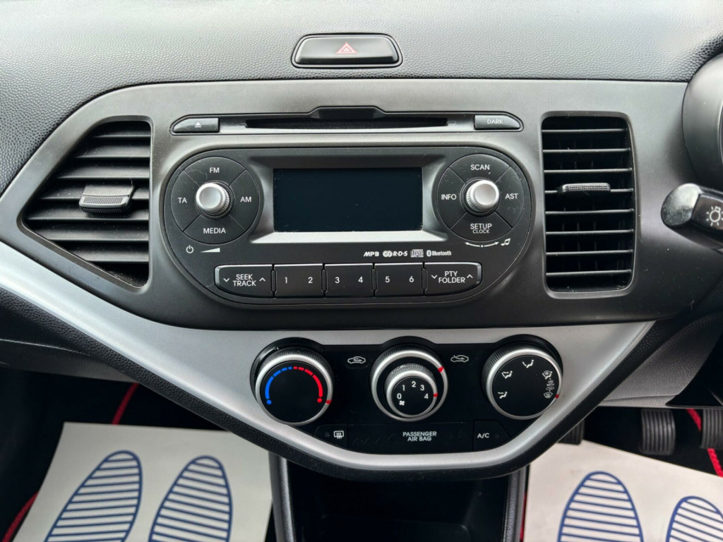 This 2015 Kia Picanto VR7 offers peace of mind with a full 12 months MOT provided on purchase and a 12 month warranty for your confidence. This compact and stylish hatchback is equipped with a responsive 1.0L petrol engine, making it an ideal choice for navigating city streets and beyond. Inside, you'll find a comfortable cabin featuring air conditioning to keep you cool, and for your convenience, it includes Bluetooth connectivity with music streaming and voice recognition, alongside rear parking sensors to assist with manoeuvring.!!..PLEASE CALL BEFORE TRAVELLING OT ADVIOD DESAPPOINTMENT !!. AT VITAL CARS WE GUARANTEE QUALITY AND CONFIDENCE IN THE ROAD AHEAD,IF ITS SMALL LOW INSURANCE CARS YOU ARE LOOKING FOR THEN VISIT OUR WEBSITE WE HAVE A GREAT RANGE TO CHOOSE FROM.The Kia Picanto VR7 stands out with its impressive fuel economy, achieving a remarkable 67 miles per gallon, which is excellent for keeping running costs down. Furthermore, its low insurance group rating means more savings on your insurance policy. The vehicle also boasts low CO2 emissions, contributing to a more environmentally friendly drive. These highlights demonstrate how this Picanto offers a more economical and cost effective ownership experience compared to many other vehicles in its class. oth - premium black, 12v power socket, 14in alloy wheels, 3 x passenger assist grips, 4-speaker system, 60-40 split folding 2nd row seats, abs - anti lock braking system, air conditioning, airbags - curtain, airbags - driver, airbags - passenger, airbags - side, alarm system, all-round height adjustable headrests, auto dimming rear-view mirror, bas - brake assist system, bluetooth with music streaming, bluetooth with voice recognition, body coloured bumpers, body coloured door mirrors, centre console cupholders, centre fascia - metallic, daytime running lights, door handles - chrome, door handles - interior - silver finished, drivers seat height adjuster, ebd - electronic brakeforce distribution, esc - electronic stability control, electrically adjustable and heated door mirrors, emergency stop signalling - ess, exhaust - dual chrome, front cabin map light, front door map pockets, front electric windows with drivers auto up-down function, front passenger airbag cut off switch, front passenger seat undertray, front seatback pockets, glovebox, headlight levelling system, high mounted brake light, hill-start assist control - hac, isofix child seat top tethers and anchor fixings, impact sensing auto door unlocking, inside handle over ride, leather trimmed gear shift, leather trimmed steering wheel, locking wheel nuts, luggage area light, motor driven power steering - mdps, rds radio with cd and mp3, radiator grille - black with red surround, rear combination lights, rear parking sensors, remote central locking with folding key, seatbelt reminder warning, side impact protection system, speed sensing auto door locking, steering wheel mounted audio controls, sunvisors with vanity mirrors and ticket holder, tilt steering wheel adjustment, tinted glass, trip computer, tyre pressure monitoring system - tpms, tyre repair kit, usb and aux ports, vsm - vehicle stability management, ipod connectivity