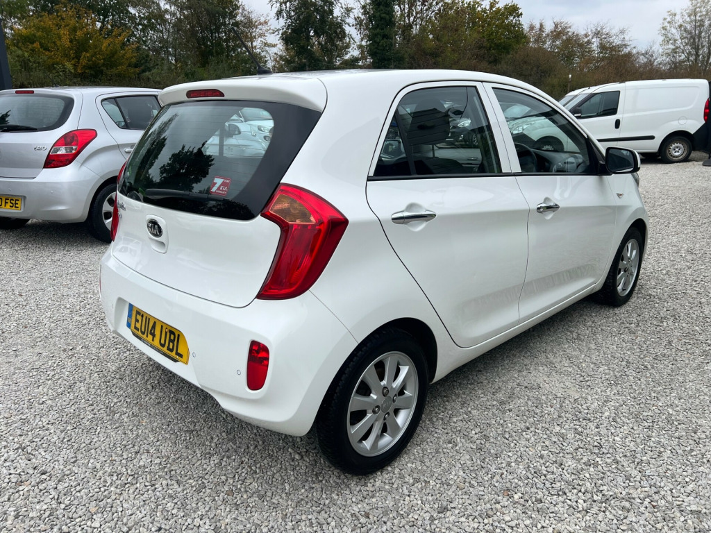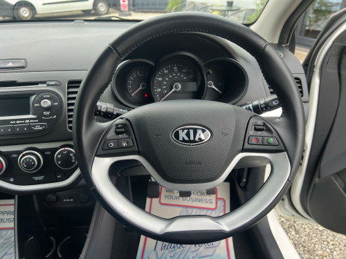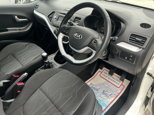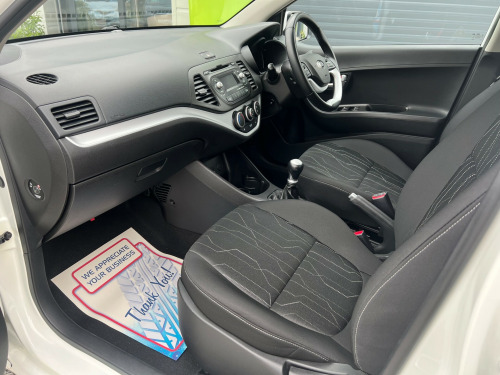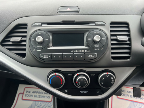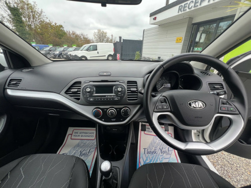 OFFERING THE BEST LOW MILEAGE LOW OWNERSHIP CARS AND CUSTOMER SERVICE IN THE AREA..1 OWNER FROM NEW..JUST 28,000 MILES ON THIS KIA PICANTO  1.0 VR7 MODELSUPERBLY MAINTAINED WITH FULL SERVICE HISTORY CONSISTING OF 11 SERVICES LAST SERVICE WAS AT ITS CURRENT MILEAGE£20 A YEAR ROAD TAXA NEW NO ADVISORY MOT AND OUR OWN NO QUIBBLE WARRANTY INCLUDEDHPI CLEAR..JUST VALETED..PX WELCOME..ALL OUR CARS COME WITH 2 KEYS..,  v power socket, 4-speaker system, bluetooth with music streaming, bluetooth with voice recognition, rds radio with cd and mp3, usb and aux ports, ipod connectivity, 14in alloy wheels, black radiator grille with chrome surround, body coloured bumpers, body coloured door mirrors, door handles - chrome, electric windows - front and rear, electrically adjustable and heated door mirrors, locking wheel nuts, rear combination lights, tinted glass, tyre repair kit, 3 x passenger assist grips, 60-40 split folding 2nd row seats, air conditioning, all-round height adjustable headrests, centre console cupholders, centre fascia - metallic, coat hooks - rear, day and night rear-view mirror, door handles - interior - silver finished, drivers seat height adjuster, front cabin map light, front door map pockets, front passenger seat undertray, front seatback pockets, glovebox, inside handle over ride, leather trimmed gear shift, leather trimmed steering wheel, luggage area light, luggage compartment - load cover, steering wheel mounted audio controls, sunvisors with vanity mirrors and ticket holder, tilt steering wheel adjustment, abs - anti lock braking system, airbags - curtain, airbags - driver, airbags - passenger, airbags - side, alarm system, bas - brake assist system, child safety rear door locks, ebd - electronic brakeforce distribution, esc - electronic stability control, emergency stop signalling - ess, engine immobiliser, front passenger airbag cut off switch, hill-start assist control - hac, isofix child seat top tethers and anchor fixings, impact sensing auto door unlocking, remote central locking with folding key, seatbelt reminder warning, side impact protection system, speed sensing auto door locking, vsm - vehicle stability management, daytime running lights, headlight levelling system, high mounted brake light, motor driven power steering - mdps, rear parking sensors, trip computer