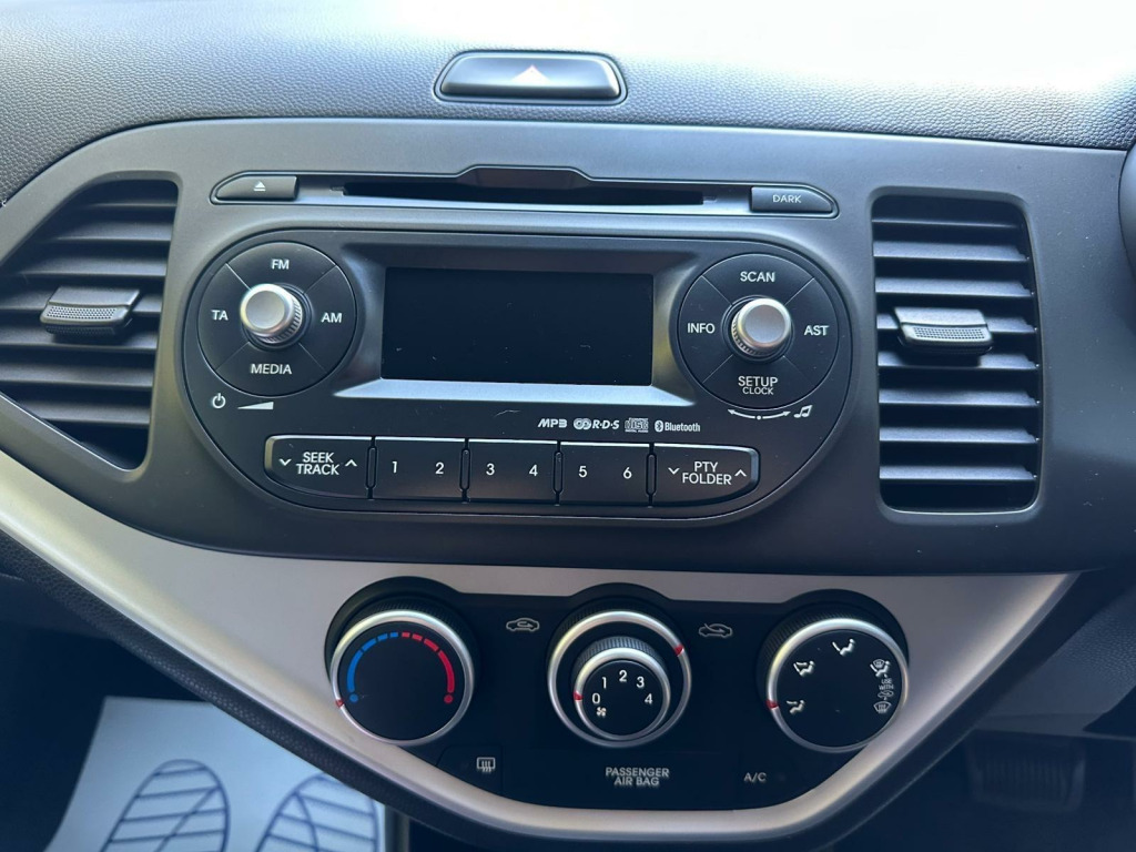 SUPPLIED WITH FULL SERVICE INC TIMING BELT IF REQ! 12 MONTHS MOT! 12 MONTHS FREE AA BREAKDOWN COVER!     AND 3 MONTHS PERSONAL PARTS AND LABOUR WARRANTY! We as a garage have been established since 1997 and from the beginning, have always worked hard to provide the best possible service to our customers. One of the key elements of this service is our 3 month personal warranty. It is supplied with the majority of our cars, free of charge and covers any faults which may occur with the car in the first 3 months of purchase! Unlike conventional warranty booklets the warranty is held with us personally. This unique approach guarantees that you receive the best possible service and that the problem is solved conveniently and successfully. this exceptional 2012 Kia Picanto 2, boasting an incredibly low mileage of just 20,000 miles, a truly remarkable find for a vehicle of its age. This well maintained example has had only two owners from new and comes with a clear vehicle history check, offering you complete peace of mind. Under the bonnet, you'll find a responsive 1.25 litre petrol engine, paired with a smooth manual transmission. Inside, you'll appreciate the convenience of Air Conditioning to keep you comfortable in all conditions, and the integrated Bluetooth with Voice Recognition system allows for hands free calls and music streaming.This Kia Picanto stands out with its impressive fuel economy, achieving an excellent 53 miles per gallon, which indicates it is more economical than many other cars in its class. Furthermore, its low CO2 emissions and placement in a low insurance group highlight its affordability to run and maintain, making it an ideal choice for budget conscious drivers. This combination of low running costs, desirable features, and excellent provenance makes this Picanto a compelling option. v power socket, 14in alloy wheels, 3 x passenger assist grips, 4-speaker system, 60-40 split folding 2nd row seats, abs - anti lock braking system, adaptive brake lights, air conditioning, airbags - curtain, airbags - driver, airbags - passenger, airbags - side, alarm system, all-round height adjustable headrests, bas - brake assist system, black radiator grille with chrome surround, bluetooth with voice recognition, body coloured bumpers, body coloured door mirrors, centre fascia - metallic, child safety rear door locks, coat hooks - rear, cupholders - centre console with ambient lighting, day and night rear-view mirror, daytime running lights, door handles - chrome, door handles - interior - chrome finish, drivers seat height adjuster, ebd - electronic brakeforce distribution, esc - electronic stability control, electric windows - front and rear, electrically adjustable and heated door mirrors, electrically folding door mirrors, emergency stop signalling - ess, engine immobiliser, front cabin map light, front door map pockets, front fog lights, front passenger airbag cut off switch, front passenger seat undertray, front seatback pockets, glovebox, headlight levelling system, heated rear window, high mounted brake light, hill-start assist control - hac, isofix child seat top tethers and anchor fixings, impact sensing auto door unlocking, inside handle over ride, instant mobility tyre inflation system, integrated indicator lights led in door mirrors, leather trimmed gear shift, leather trimmed steering wheel, locking wheel nuts, luggage area light, luggage compartment - load cover, motor driven power steering - mdps, rds radio with cd and mp3, rear combination lights, remote central locking with folding key, seatbelt reminder warning, side impact protection system, speed sensing auto door locking, speed/impact sensing, steering wheel mounted audio controls, sunvisors with vanity mirrors and ticket holder, tilt steering wheel adjustment, tinted glass, trip computer, tyre repair kit, usb and aux ports, vsm - vehicle stability management, ipod connectivity