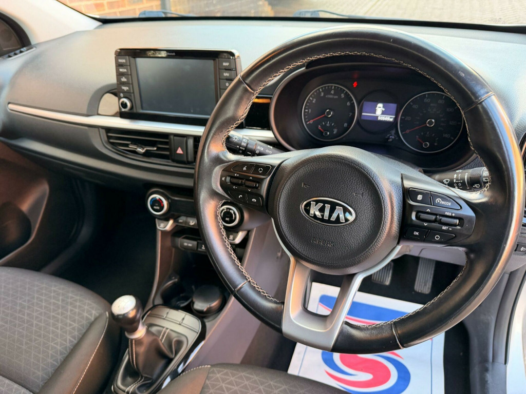 ***THIS VEHICLE HAS NOW BEEN SOLD****1 Former Keeper, Great Mileage with a Full Service History including 6 Stamps in the book, 2 Keys supplied, ULEZ Compliant Vehicle, This 2019 Kia Picanto 3 boasts a full service history and was last serviced at 50548 miles, ensuring excellent provenance. This Euro 6 compliant 1.25L petrol model comes with a clear vehicle history check and will be provided with 12 months MOT for your peace of mind. Inside, you'll find convenient features such as Android Auto with Voice Control, automatic air conditioning, rear parking sensors, and a reversing camera system with dynamic guidelines. The automatic headlight control adds further ease to your driving experience.The Kia Picanto 3 stands out with its low insurance group, making it an economical choice for many drivers. The inclusion of Android Auto and a reversing camera system with dynamic guidelines demonstrates a higher level of technology and convenience compared to many other vehicles in its class. Combined with the automatic air conditioning and parking assistance, this Picanto offers a comfortable and user friendly driving experience. n touchscreen satellite navigation with rds and dab, automatic air conditioning, 15in alloy wheels, abs with electronic brakeforce distribution - ebd and brake assist system - bas, apple carplay with voice control, android auto with voice control, bluetooth with music streaming, cruise control with speed limiter, daytime running lights, reversing camera system with dynamic guidelines, advanced driving assistance pack - adap, all-round 3-point seatbelts, all-round height adjustable headrests, anti-theft alarm system, automatic headlight control, black radiator grille with chrome surround, body coloured bumpers, 1 x coat hooks - rear, 12v power socket - front, 3 x passenger assist grips, 6-speaker system, 60-40 split folding 2nd row seats, body coloured mirrors and chrome exterior handles, centre console cupholders, centre console with storage box and sliding armrest, child safety rear door locks, driver and front passenger sunvisors with vanity mirror, drivers seat height adjustment, esc - electronic stability control, electrically folding-adjustable and heated door mirrors with led indicator lights, emergency stop signalling - ess, engine immobiliser, external temperature display, front cabin light, front fog lights, front passenger airbag cut off switch, front passenger seatback pocket, front seatbelt height adjusters, front seatbelt pre-tensioners and load limiters, front and rear electric windows with drivers auto up-down function, glovebox, headlight levelling device, heated rear window, high gloss lower centre fascia trim - door armrest and air vents, high mounted brake light, hill-start assist control - hac, isofix child seat top tethers and anchor fixings, impact sensing auto door unlocking, kia connected services featuring tomtom - traffic - speed cameras - local search and weather updates, leather trimmed steering wheel with leather trimmed gearshift, locking wheel nuts, luggage area light, luggage area parcel shelf, motor driven power steering - mdps, multi focus reflector headlights with black bezel, rear fog light, rear parking sensors, rear wiper-washer, remote central locking with folding key, seatbelt reminder warning, side impact protection system, silver paint finished interior door handles, sliding and reclining front seats, speed variable front wipers, steering wheel mounted audio controls, tmk - tyre mobility kit, tachometer, tilt steering wheel adjustment, tinted glass, trip computer, twin curtain airbags, twin front airbags, twin side airbags - front, tyre pressure monitoring system - tpms, usb and aux ports for connection of a media device, visible vehicle identification number - vin, welcome and follow-me-home light functionality