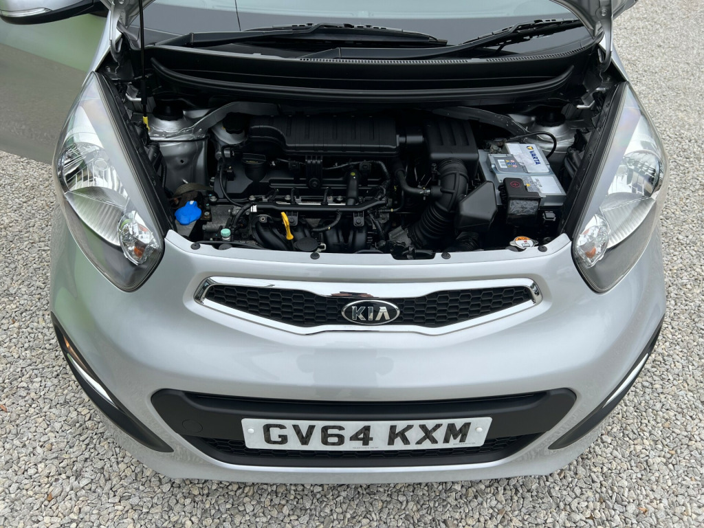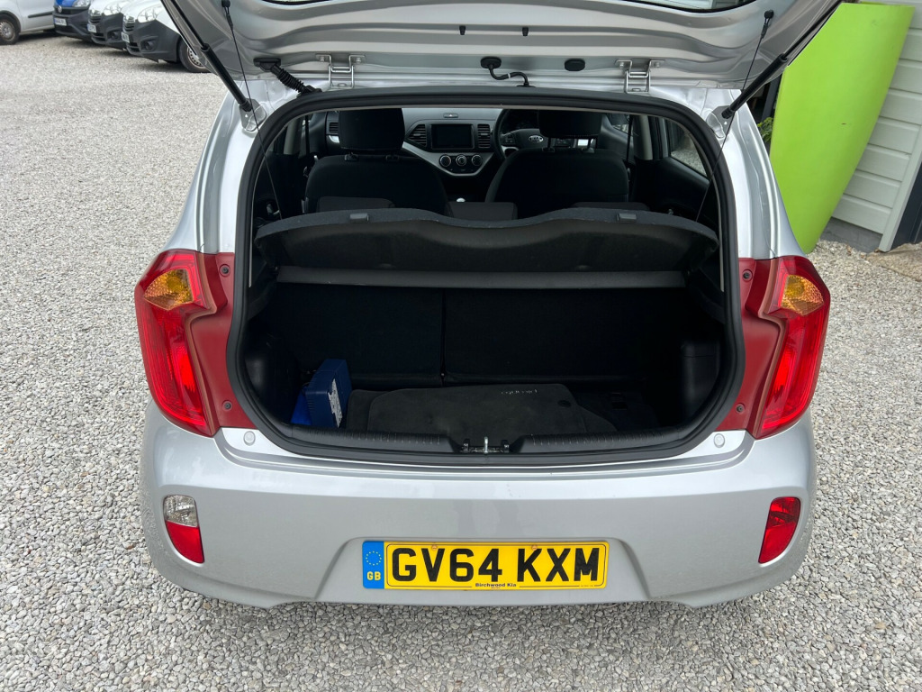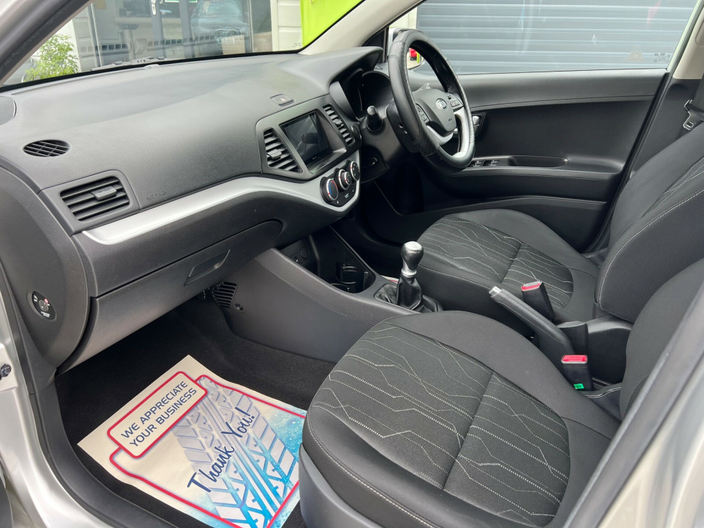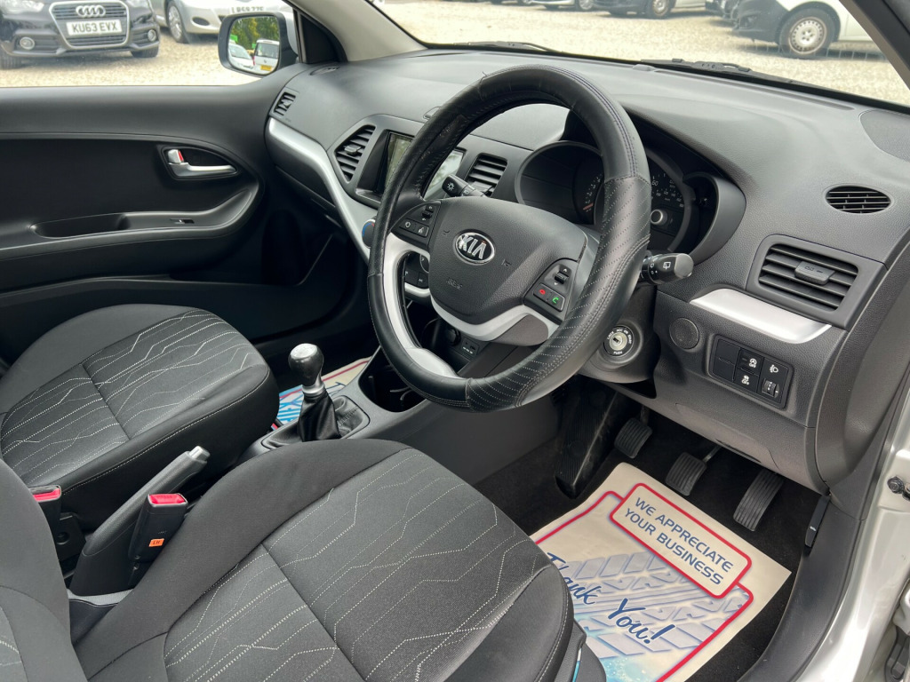 OFFERING THE BEST LOW MILEAGE LOW OWNERSHIP CARS AND CUSTOMER SERVICE IN THE AREA..A SUPERB CONDITION KIA PICANTO 1.2..JUST 32,000 MILES.£20 A YEAR ROAD TAX..UPGRADED STEREO WITH BLUETOOTH..A NEW SERVICE, NO ADVISORY MOT AND OUR OWN NO QUIBBLE WARRANTY INCLUDEDHPI CLEARJUST VALETED..PX WELCOMEALL OUR CARS COME WITH 2 KEYS..,  v power socket, 4-speaker system, bluetooth with music streaming, bluetooth with voice recognition, rds radio with cd and mp3, usb and aux ports, ipod connectivity, 14in alloy wheels, black radiator grille with chrome surround, body coloured bumpers, body coloured door mirrors, door handles - chrome, electric windows - front and rear, electrically adjustable and heated door mirrors, electrically folding door mirrors, instant mobility tyre inflation system, integrated indicator lights led in door mirrors, locking wheel nuts, rear combination lights, tinted glass, tyre repair kit, 3 x passenger assist grips, 60-40 split folding 2nd row seats, air conditioning, all-round height adjustable headrests, auto dimming rear-view mirror, centre console cupholders, centre fascia - metallic, coat hooks - rear, door handles - interior - silver finished, drivers seat height adjuster, front cabin map light, front door map pockets, front passenger seat undertray, front seatback pockets, glovebox, inside handle over ride, leather trimmed gear shift, leather trimmed steering wheel, luggage area light, steering wheel mounted audio controls, sunvisors with vanity mirrors and ticket holder, tilt steering wheel adjustment, abs - anti lock braking system, airbags - curtain, airbags - driver, airbags - passenger, airbags - side, alarm system, bas - brake assist system, child safety rear door locks, ebd - electronic brakeforce distribution, esc - electronic stability control, emergency stop signalling - ess, front passenger airbag cut off switch, hill-start assist control - hac, isofix child seat top tethers and anchor fixings, impact sensing auto door unlocking, remote central locking with folding key, seatbelt reminder warning, side impact protection system, speed sensing auto door locking, vsm - vehicle stability management, adaptive brake lights, motor driven power steering - mdps, trip computer, tyre pressure monitoring system - tpms, daytime running lights, front fog lights, headlight levelling system, high mounted brake light
