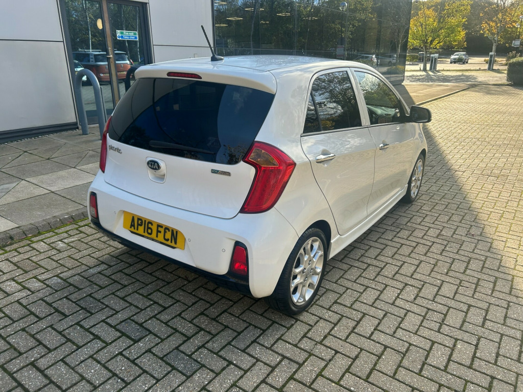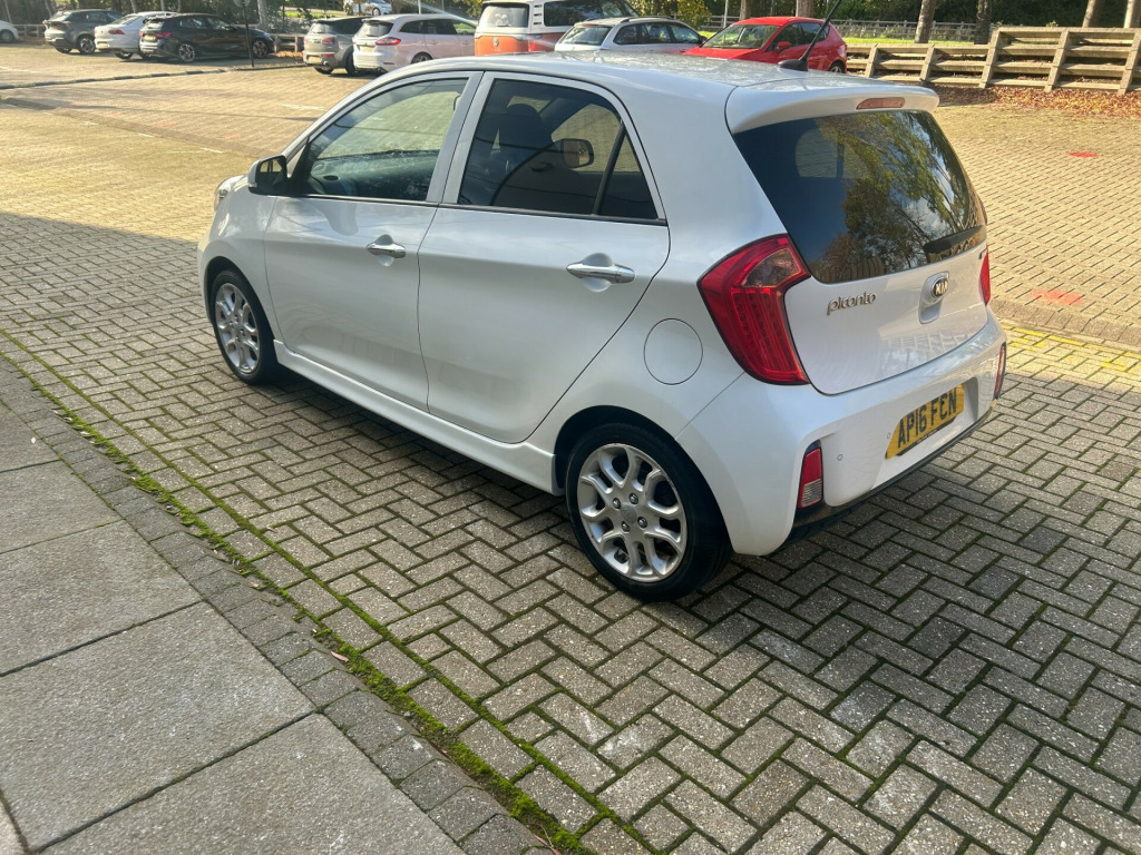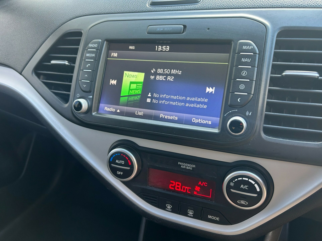COMES WITH A NEW MOT, 2 KEYS, FULL SERVICE HISTORY, REALLY HIGH SPEC INCLUDING, Air ConditioningAuto Climate ControlAutomatic LightsAux InBluetoothElectric Sun RoofHeated SeatsMedia ConnectivityRear Parking SensorsReversing camera and more.Introducing the 2016 Kia Picanto 1.25 EcoDynamics 4 Hatchback, a stylish and efficient vehicle with only 64473 miles on the clock. This 5-door hatchback runs on petrol and is ULEZ compliant, boasting 5 seats and a spacious interior. Equipped with a 7-inch touchscreen satellite navigation system, Bluetooth with music streaming, and a 6-speaker system, the Picanto offers modern convenience and entertainment. Its Euro 6 (s/s) engine produces 84 bhp, making for a smooth and powerful drive. Don't miss out on this reliable and practical choice for your next car purchase. BY APPOINTMENT ONLY! v power socket, 6-speaker system, 7in touchscreen, 7in touchscreen satellite navigation with european mapping, bluetooth with music streaming, european mapping, rds radio with mp3 compatibility, traffic message channel - tmc, usb and aux ports, ipod connectivity, 15in alloy wheels, black radiator grille with chrome surround, body coloured bumpers, body coloured door mirrors, body coloured side sill mouldings, door handles - chrome, ecodynamics badge, electric tilting and sliding sunroof, electrically folding door mirrors, front and rear electric windows with drivers auto up-down function, grab-type exterior door handles, integrated indicator lights led in door mirrors, locking wheel nuts, privacy glass - rear windows and tailgate, tinted glass, tyre repair kit, uv reduced solar glass - windscreen and front window, 3 x passenger assist grips, 60-40 split folding 2nd row seats, all-round height adjustable headrests, automatic air conditioning, centre console cupholders, centre console with ambient lighting, coat hooks - rear, day and night rear-view mirror, drivers seat height adjuster, drivers side vanity mirror with hollywood style led illumination, front cabin map light, front door map pockets, front seatback pockets, glovebox, heated front seats, heated steering wheel, inside handle over ride driver and passenger - 2 motion, leather trimmed gear shift, leather trimmed steering wheel, luggage area light, luggage area parcel shelf, metallic centre fascia - steering wheel bezel and gearshift top trim, pollen filter, premium supervision cluster, silver paint finished interior door handles and handbrake button, steering wheel mounted audio controls, sunvisors with vanity mirrors and ticket holder, tilt steering wheel adjustment, abs - anti lock braking system, airbags - curtain, airbags - driver, airbags - passenger, airbags - side, alarm system, bas - brake assist system, child safety rear door locks, ebd - electronic brakeforce distribution, esc - electronic stability control, emergency stop signalling - ess, engine immobiliser, front passenger airbag cut off switch, hill-start assist control - hac, isofix child seat top tethers and anchor fixings, impact sensing auto door unlocking, seatbelt reminder warning, side impact protection system, smart key entry system, speed sensing auto door locking, vsm - vehicle stability management, automatic headlight control, front fog lights, headlight levelling system, headlights - follow me home function, led daytime running lights, led high mounted brake light, projection headlights, rear lights - led, cruise control, external temperature display, motor driven power steering - mdps, rear parking sensors, reversing camera system, speed limiter, stop start button, tachometer, trip computer, tyre pressure monitoring system - tpms