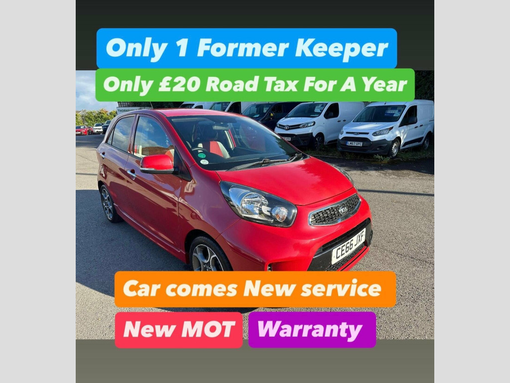 only 1 former ,car comes new service, new mot,only £20 road tax for a year, replaced new disc and pad  on front, This 2016 Kia Picanto Sport is presented with a full 12 months MOT provided on purchase, offering immediate peace of mind.  This stylish Sport variant is equipped with a responsive 1.25 litre petrol engine and meets Euro 6 emissions standards.  With a last service recorded at 47,200 miles, this vehicle has been well maintained.  Inside, youll find a host of convenient features including Bluetooth with music streaming, a reversing camera system with rear parking assistance, and rear parking sensors.  Enjoy a comfortable driving experience with automatic air conditioning and automatic headlights for effortless journeys. The Kia Picanto Sport stands out with its impressive fuel economy, achieving a remarkable 61 miles per gallon, which indicates it is more economical than many similar vehicles. Furthermore, its low insurance group rating suggests that running costs will be kept to a minimum, making it an attractive option for budget conscious drivers. The vehicle also boasts low CO2 emissions, highlighting its environmental consideration compared to other cars in its class.