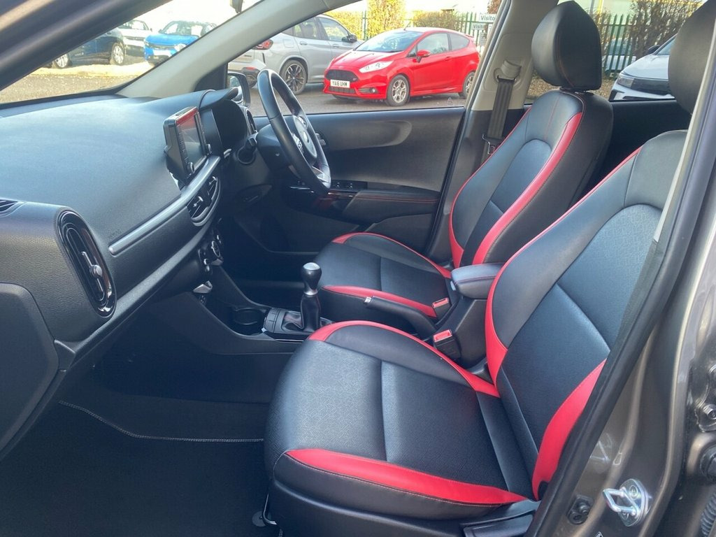 Thompson & Smith are pleased to offer this one owner Kis Picanto GT-Line 1.25 (83ps) 5 speed manual petrol model that has the added benefit of a low group seven insurance ranking. This great looking car stands out with its body coloured sports bumpers,& mirror covers & 16" alloy wheels which are complimented by the rear privacy glass, twin sports exhaust, & Titanium Silver metallic paintwork finish. Specification DAB radio, Bluetooth, apple car play & android support on the easy to use 7" central touchscreen. Other big features include leather seats, air con, cruise control, auto lights, electrically adjustable heated folding door mirrors, front & rear electric mirrors, USB aux & 12V charging socket, rear park sensors, This car has MOT until 19/09/2026 plus full dealer history with the most recent one being carried out at the end of September & it has covered just 2,000 miles since. The car will come with full mechanical checks on purchase plus a 6 month R.A.C Platinum Nationwide warranty that can be extended Part exchange, Full finance facilities and Nationwide Delivery can be arranged. Please note that vehicle specifications, features & designs may vary due to Model Year changes. We strive for accuracy but variations may occur. Please confirm details with our sales team or showroom at time of purchase. 1st Service 05/09/2019 at 5,800 Miles - KIA 2nd Service 05/09/2020 at 12,560 Miles - KIA 3rd Service 04/09/2021 at 17,498 M 1 x Coat Hooks - Rear, 12V Power Socket - Front, 16in Alloy Wheels, 3 x Passenger Assist Grips, 6-Speaker System, 60-40 Split Folding 2nd Row Seats, 7in Touchscreen Display with RDS and DAB, ABS with Electronic Brakeforce Distribut, Advanced Driving Assistance Pack - ADAP, Air Conditioning, All-Round 3-Point Seatbelts, All-Round Height Adjustable Headrests, Android Auto with Voice Control, Anti-Theft Alarm System, Apple CarPlay with Voice Control, Automatic Headlight Control, Bi-Function Projection Headlights, Black Radiator Grille with Chrome Surrou, Black and Red Accents - Front Door Armre, Bluetooth with Music Streaming, Body Coloured Bumpers, Body Coloured Exterior Mirrors and Exter, Bod