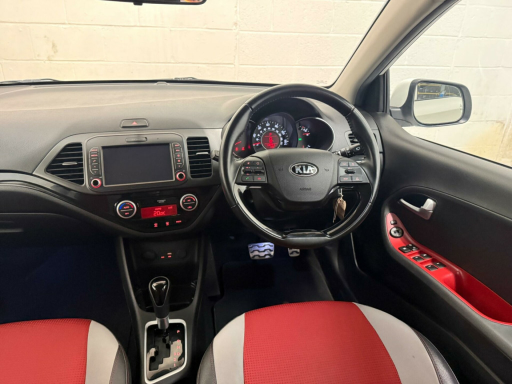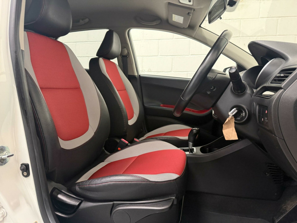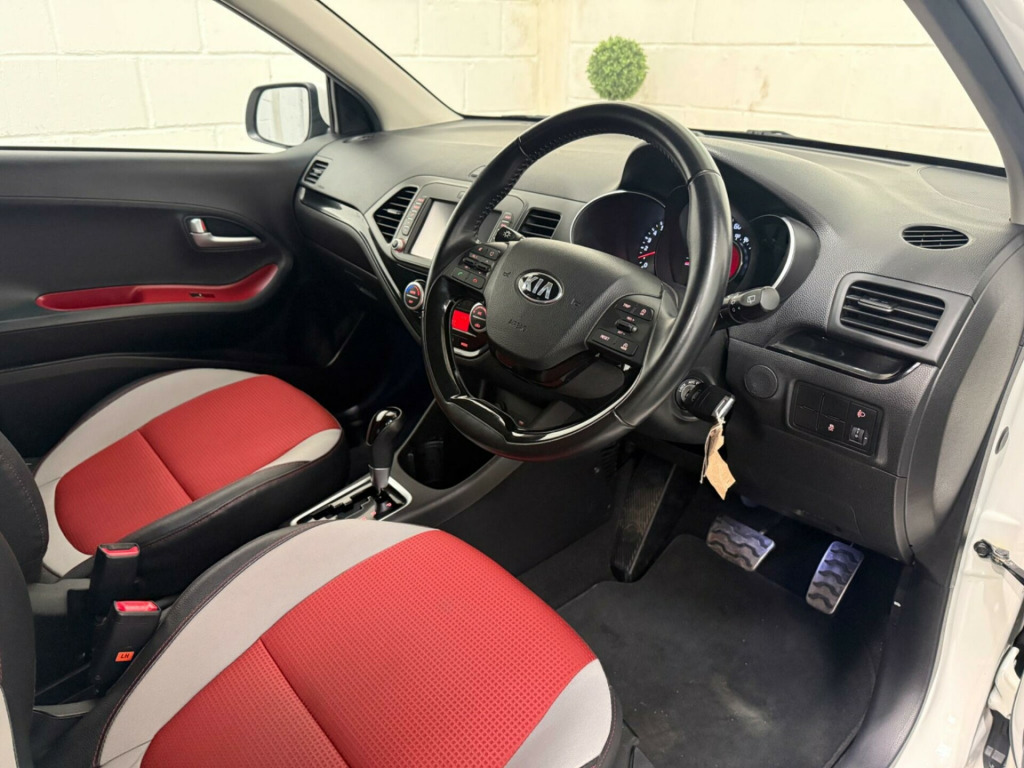 Discover this exceptional 2017 Kia Picanto Sport, boasting remarkably low mileage for its age at just 12863 miles. This Euro 6 compliant 1.25L petrol model presents a clear vehicle history, offering peace of mind. Inside, you'll find comfort and convenience with automatic air conditioning including climate control, and the ease of Bluetooth connectivity for music streaming. Parking is made simpler with rear parking sensors and a reversing camera system, while automatic headlights ensure optimal visibility.This Kia Picanto Sport stands out with its low insurance group, making it an economical choice for many drivers. The combination of its very low mileage, desirable Sport trim, and practical features like the reversing camera and automatic climate control indicate that this vehicle offers a superior ownership experience compared to other similar models on the market. v power socket - front, 15in alloy wheels, 2 x coat hooks - rear, 3 x passenger assist grips, 6-speaker system, 60-40 split folding 2nd row seats, 7in touchscreen satellite navigation with european mapping, abs with electronic brakeforce distribution - ebd and brake assist system - bas, all-round 3-point seatbelts, all-round height adjustable headrests, aluminium sports pedals, anti-theft alarm system, automatic air conditioning, automatic headlight control, black radiator grille with chrome surround, bluetooth with music streaming, body coloured bumpers, body coloured exterior mirrors and chrome exterior handles, body coloured side sill mouldings, centre console cupholders, child safety rear door locks, cruise control with speed limiter, daytime running lights, digital clock, double locking, drivers seat height adjuster, esc - electronic stability control, electrically folding-adjustable and heated door mirrors with led indicator lights, emergency stop signalling - ess, engine immobiliser, external temperature display, front cabin map light, front door map pockets, front passenger airbag cut off switch, front passenger seat undertray, front seatback pockets - driver and passenger, front seatbelt height adjusters, front seatbelt pre-tensioners and load limiters, front and rear electric windows with drivers auto up-down function, glossy black centre fascia - steering wheel bezel and gearshift top trim, glovebox, grab-type exterior door handles, headlight levelling system, heated rear window, high mounted brake light, hill-start assist control - hac, isofix child seat top tethers and anchor fixings, impact sensing auto door unlocking, leather trimmed steering wheel with leather trimmed gearshift, locking wheel nuts, low rolling resistance tyres, luggage area light, luggage area parcel shelf, motor driven power steering - mdps, premium supervision cluster, privacy glass - rear windows and tailgate, rds radio with mp3 compatibility, rear fog light, rear parking sensors, rear wiper-washer, red coloured door trim, remote central locking with folding key, reversing camera system, seatbelt reminder warning, side impact protection system, side and curtain airbags, silver paint finished interior door handles and handbrake button, sliding and reclining front seats, speed sensing auto door locking, speed variable front wipers, sports front and rear bumper with twin exhaust, steering wheel mounted audio controls, sunvisors with vanity mirrors and ticket holder on drivers side, tachometer, tilt steering wheel adjustment, tinted glass, trip computer, twin front airbags, tyre pressure monitoring system - tpms, tyre repair kit, usb and aux ports, visible vehicle identification number - vin, welcome and follow-me-home light functionality