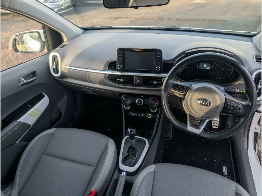 Kia Picanto 1.25 X-Line Auto Euro 6 5dr.We are pleased to be offering this 2019 Kia Picanto X Line which presents an exceptional opportunity to own an example with a remarkably low mileage of just 16302 miles. This Euro 6 compliant 1.25 litre petrol model boasts a clear vehicle history check, offering peace of mind. Inside, you'll find a host of convenient features designed to enhance your driving experience, including Apple CarPlay and Android Auto with voice control, allowing seamless integration of your smartphone. Stay connected and entertained with Bluetooth featuring music streaming, while the air conditioning ensures a comfortable cabin temperature. Navigating tight spots is made easier with the inclusion of rear parking sensors.This car has been well looked after and used sparingly, hence the low mileage. Kia have built a good reputation over the years for producing reliable and good value vehicles. The car will come with a full 12 months MOT, be serviced up to date and, for your complete peace of mind, it will be covered by our own 6 months/6000 mile warranty which can be used at a garage of your choice. If you would like more information, or like to arrange a viewing/test drive, please do not hesitate to get in touch. Part-exchange welcome. Please visit our website (https://www.jonglanvillautocentre.co.uk) for vehicles available which are not advertised on Autotrader. If you are having difficulty finding a particular type/make of vehicle, please get in touch as we may be able to find one for you. versing camera system with dynamic guidelines, apple carplay with voice control, android auto with voice control, 7in touchscreen display with rds and dab, electrically folding-adjustable and heated door mirrors with led indicator lights, hill-start assist control - hac, advanced driving assistance pack - adap, bi-function projection headlights, usb and aux ports for connection of a media device, automatic headlight control, tyre pressure monitoring system - tpms, bluetooth with music streaming, front and rear bumper with silver skid plates and twin exhaust, rear lights - led, 16in alloy wheels, 3 x passenger assist grips, 6-speaker system, 60-40 split folding 2nd row seats, abs with electronic brakeforce distribution - ebd and brake assist system - bas, air conditioning, black side sill moulding and wheel arch cladding, centre console cupholders, centre console with storage box and sliding armrest, child safety rear door locks, driver and front passenger sunvisors with vanity mirror, drivers seat height adjustment, esc - electronic stability control, emergency stop signalling - ess, engine immobiliser, external temperature display, front cabin light, front fog lights, front passenger airbag cut off switch, front passenger seatback pocket, front seatbelt height adjusters, front seatbelt pre-tensioners and load limiters, front and rear electric windows with drivers auto up-down function, heated rear window, high mounted brake light, isofix child seat top tethers and anchor fixings, impact sensing auto door unlocking, led daytime running lights, leather trimmed steering wheel with leather trimmed gearshift, luggage area light, luggage area parcel shelf, motor driven power steering - mdps, privacy glass - rear windows and tailgate, rear parking sensors, remote central locking with folding key, sliding and reclining front seats, speed variable front wipers, stainless steel pedals, steering wheel mounted audio controls, tmk - tyre mobility kit, tachometer, tilt steering wheel adjustment, trip computer, twin curtain airbags, twin front airbags, twin side airbags - front, welcome and follow-me-home light functionality, white and green accents - door armrest - lower centre console trim and air vents, faux leather - grey