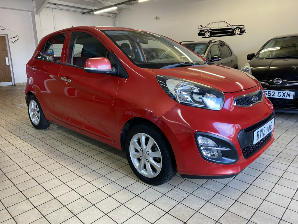 +NATIONWIDE PARTS & LABOUR WARRANTY WITH FREE BREAKDOWN COVER+This 2012 Low Mileage Kia Picanto 2 ECODYNAMICS 1.25 Petrol Manual 5DR Hatchback Has Only Covered A Mere 49k Miles From New And Is Complimented With A Service Record Consisting Of 7x Stamps In The Book And 12 Months MOT With No Advisories. Last Service Was Carried Out @46k Miles. The Car Benefits From £20 Road Tax And A Low Insurance Group. Looks Stunning Finished In Diablo Red Metallic With Multi-spoke Alloy Wheels And Front Fog Lights. Inside Is Furnished With A Contrasting Seating, Leather 3 Spoke Multi-Function Steering Wheel, Satin Inlays, Aircon, Blueetooth, Radio/CD Player, AUX/USB, Electrc Windows, Electric Folding Mirrors, Remote Central Locking, Folding Rear Seats, Plus All Usual Kia Picanto Refinements+, , +LOOKS AND DRIVES FANTASTIC WITH EXCELLENT PERFORMANCE AND FUEL ECONOMY FROM THE 1.25 ENGINE WHICH BENEFITS FROM A LOW INSURANCE GROUP AND ONLY £20 ROAD TAX. IDEAL 1ST CAR. COMES FULLY VALETED COMPLETE WITH 2x KEYS, A BOOK PACK PLUS A NATIONWIDE PARTS & LABOUR WARRANTY WITH FREE BREAKDOWN COVER+, , +PLEASE CALL JOHN ON 07931 899177 FOR ANY FURTHER INFORMATION OR TO ARRANGE A VIEWING OF THIS LOVELY LOW MILEAGE EXAMPLE**********DUE TO THE NATURE OF THE BUSINESS ALL VIEWINGS WILL BE BY APPOINTMENT BASIS ONLY AS NOT TO CAUSE DISAPPOINTMENT**********