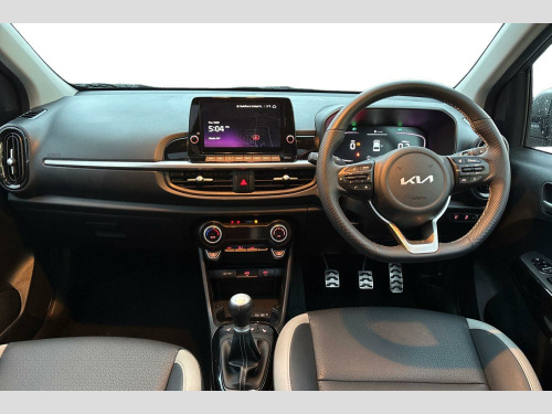 This 2025 Kia Picanto GT-Line S presents an exceptional opportunity with an incredibly low mileage of just 2150 miles, making it virtually as new. This single owner vehicle boasts a full service history and benefits from the remainder of its 72 month warranty, offering peace of mind. Under the bonnet, you'll find an efficient 1.2L petrol engine compliant with Euro 6 emissions standards. Inside, the GT-Line S trim is well equipped with a wireless mobile phone charger, seamless integration for Apple CarPlay and Android Auto, and a reversing camera system complemented by rear parking sensors to assist with manoeuvring. Automatic air conditioning ensures a comfortable cabin environment in all conditions.