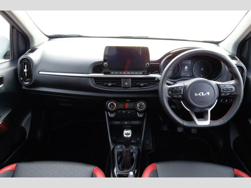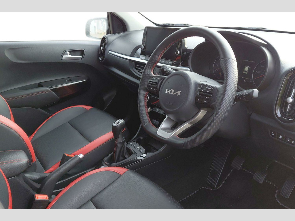This Kia Picanto T GDi GT Line S offers impressive performance and economy, achieving 0 to 60 miles per hour in a sprightly 9.9 seconds. Its fuel economy is a notable highlight, reaching an excellent 53 miles per gallon, which indicates it is more economical than many similar vehicles. Furthermore, its low CO2 emissions contribute to a more environmentally friendly drive. These combined highlights demonstrate the car's superior efficiency and performance, offering a compelling package for any driver. Forward Collision-Avoidance Assist (FCA) City, 16' Alloy Wheels (GT-Line), Refined Sports Front & Rear Bumpers with Gloss Black Skid Plates Twin Exhaust, 8' Touchscreen Satellite Navigation featuring Kia Connect (UVO), Automatic Air Conditioning, Wireless Mobile Phone Charger, Cruise Control & Speed Limiter, Rear Parking Sensors, Heated Front Seats & Steering Wheel, Smart Key with Engine Start/Stop Button, Chrome Exterior Door Handles, Free 7-year Kia Connect (UVO) services, Driver and Front Passenger Sunvisors with Vanity Mirror (Illuminated Driver's Side), Body Coloured Side Sill Mouldings, 8' Touchscreen Display, Black and Red Faux Leather Upholstery, Bi-Function Projection Headlights., LED Daytime Running Lights, LED Rear Lights, Privacy Glass (Rear Windows & Tailgate), Front Fog Lights, Apple CarPlay with voice control, Android Auto with voice control, Reversing Camera System with Dynamic Guidelines, Black & Red Accents Front Door Armrest, 6-speaker audio System, Electrically Folding, Adjustable & Heated Door Mirrors with LED Indicators, Satin Chrome Interior Door Handles, D-Cut Steering Wheel with Red Stitching, Air Conditioning, Front & Rear Electric Windows (Driver's Auto Up/Down), 4.2' Supervision Monochrome Cluster Display, Driver's Seat Height Adjuster, Steering Wheel Mounted Controls, Leather Trimmed Steering Wheel and Gearshift, Body Coloured Mirrors, Black Radiator Grille with Chrome Surround, 4-speaker audio System, Front Seatbelt Height Adjusters, Front Passenger Seatback Pocket, High Gloss Lower Centre Fascia Trim Door Armrest and Air Vents, Front Electric Windows, Remote Central Door Locking & Fold-away Key, 3.8' Monochrome Audio display, USB Port, Automatic Headlight Control, Bluetooth® with Music Streaming, ABS with Electronic Brakeforce Distribution (EBD) & Brake-Assist System (BAS), Electronic Stability Control (ESC) & Vehicle Stability Management (VSM), Hill-start Assist Control (HAC), Twin Front Side & Curtain Airbags, MFR (Multi-Focus Reflector) Headlights with Black Bezel, Daytime Running Lights, Rear Fog Light, 60:40 Split Folding 2nd Row Seats, Trip Computer, All-round Height Adjustable Headrests, Anti-Theft Alarm System, Torque Vectoring Brake Based & Straight-Line Stability (SLS), Speed Sensing Auto Door Locking