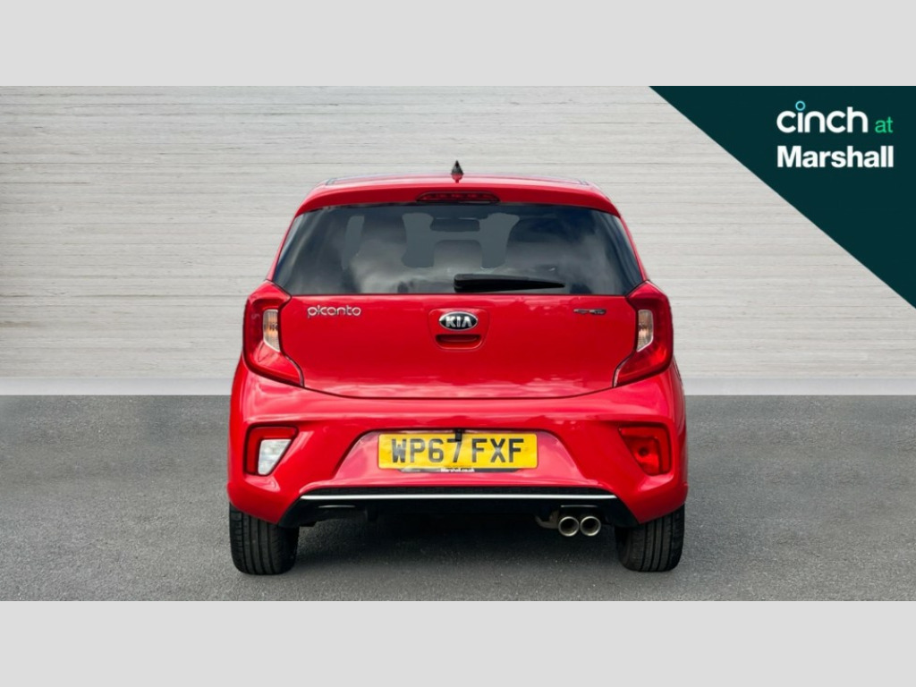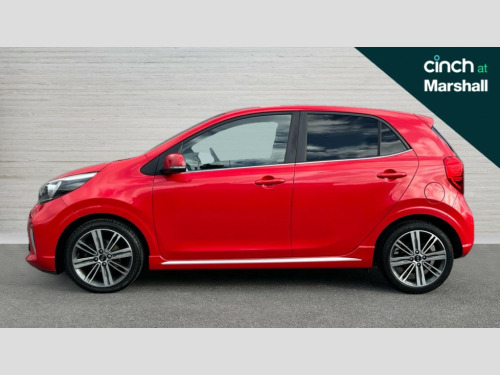 Kia Picanto 1.25 GT-line 5dr Digital clock, Emergency stop signalling system, External temperature gauge, PAS, Supervision cluster, Tachometer, Trip computer, 6 speakers, Bluetooth connectivity including audio streaming, Steering wheel mounted controls, USB and auxiliary socket, Automatic headlights, Black grille with chrome surround, Body colour bumpers, Body colour door handles, Body colour door mirrors, Body colour side mouldings, Chrome side window trim, Day/night rear view mirror, Electric adjustable/heated/folding door mirrors, Front and rear electric windows, Front fog lights, Headlamp levelling, Heated rear window, LED daytime running lights, LED rear lights, Privacy glass, Projector headlamps, Rear wash/wipe, Sports bumpers, Twin exhaust pipes, Variable front intermittent wipers, Welcome home function, 12V socket, 60/40 split/folding 2nd row of seats, Assist grips, Centre console storage and sliding armrest, Coat hooks, Cupholders in centre console, Driver seat height adjust, Driver/passenger front seatback pockets, Front door map pockets, Front interior light, Front map light, Glovebox, Height adjustable front seat head restraints, Height adjustable rear seat head restraints (x2), Isofix child seat attachment, Leather steering wheel and gear knob, Load area light, Manual air conditioning, Rear parcel shelf, Satin chrome interior door handles, Slide/reclining front seats, Stainless steel pedals, Sunvisors with vanity mirrors, Ticket holder, Tilt adjustable steering wheel, 3x3 point rear seatbelts, ABS/EBD, Automatic unlocking of doors in case of impact, Autonomous emergency braking, Curtain airbags, Dual front airbags, ESC + BAS + VSM + HAC, Front seatbelt pretensioners + load limiters, Front side airbags, Height adjustable front seatbelt anchors, Passenger airbag deactivate switch, Rear child proof door locks, Seatbelt warning, Side impact protection, Traction control, Tyre pressure monitoring system, Anti theft alarm, Engine immobiliser, Folding key, Locking wheel nuts, Remote central door locking, Speed sensitive auto door locking, High gloss black centre fascia, 16" alloy wheels, Tyre repair kit