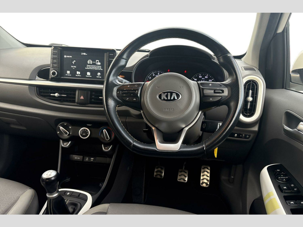 This Kia Picanto stands out with its low insurance group, which can help to keep your running costs down. Furthermore, its low CO2 emissions indicate a more environmentally conscious choice compared to many other vehicles in its class. These highlights demonstrate how this particular Picanto offers excellent value and a more economical ownership experience. Forward Collision-Avoidance Assist (FCA), 16' Alloy Wheels (X-Line), Front & Rear Bumpers with Silver Skid Plates and Twin Exhaust, Black Side Sill Mouldings & Wheel Arch Cladding, 7' Touchscreen Display with RDS & DAB, Apple CarPlay & Android Auto, Grey Faux Leather Upholstery, Bi-Function Projection Headlights, LED Daytime Running Lights, LED Rear Lights, Privacy Glass (Rear Windows & Tailgate), Apple CarPlay with voice control, Android Auto with voice control, Reversing Camera System with Dynamic Guidelines, Rear Parking Sensors, White & Green Accents, Door Armrest, Lower Centre Console Trim and Air Vents, Aluminium Pedals, Front Fog Lights, 6-speaker audio System, Electrically Folding, Adjustable & Heated Door Mirrors with LED Indicators, Satin Chrome Interior Door Handles, Air Conditioning, Air Conditioning, Front & Rear Electric Windows (Driver's Auto Up/Down), Bluetooth® with Music Streaming, Driver's Seat Height Adjuster, Steering Wheel Mounted Controls, Leather Trimmed Steering Wheel and Gearshift, Body Coloured Exterior Door Handles, Body Coloured Mirrors, Black Radiator Grille with Chrome Surround, Front Seatbelt Height Adjusters, Front Passenger Seatback Pocket, High Gloss Lower Centre Fascia Trim, Door Armrest and Air Vents, Front Electric Windows, Remote Central Door Locking & Fold-away Key, 3.8' Monochrome Audio Display with RDS, USB & AUX Ports, Automatic Headlight Control, ABS with Electronic Brakeforce Distribution (EBD) & Brake-Assist System (BAS), Electronic Stability Control (ESC) & Vehicle Stability Management (VSM), Twin Front, Side & Curtain Airbags, Hill-start Assist Control (HAC), Twin Front, Side & Curtain Airbags, 5 Door / 5 Seat Configuration, MFR (Multi-Focus Reflector) Headlights with Black Bezel, 60:40 Split Folding 2nd Row Seats, Trip Computer, All-round Height Adjustable Headrests, Anti-Theft Alarm System, Driver and Front Passenger Sunvisors with Vanity Mirror