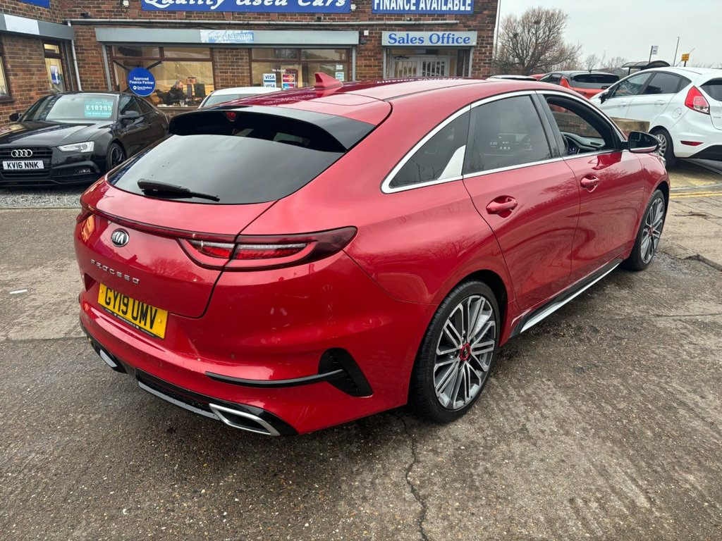 Sat Nav Full service history Apple carPlay DAB radio Heated seats Heated steering wheel Parking sensors Auto headlights Auto wipers 12 months MOT 6 months warranty This 2019 Kia ProCeed T GDi GT Line boasts a clear vehicle history, offering you peace of mind. This stylish estate car is equipped with a 1.4 litre petrol engine and meets Euro 6 emission standards. Inside, you'll find a host of convenient features including Android Auto with voice control, dual automatic air conditioning for personalised comfort, and Bluetooth with voice recognition for seamless connectivity and music streaming. The automatic headlight control ensures optimal visibility, while the reversing camera system with dynamic guidelines makes parking effortless. The Kia ProCeed T GDi GT Line stands out with its impressive fuel economy, achieving up to 46 miles per gallon, which is better than many similar vehicles. Its low CO2 emissions also contribute to its appeal, making it a more environmentally conscious choice. Furthermore, this model benefits from a low insurance group, indicating that running costs are likely to be more affordable compared to other cars in its class. You'll also appreciate the generous boot space, providing ample room for luggage or shopping. 12V Power Socket - Front Centre Console , 17in Alloy Wheels - GT-Line, 3 x Passenger Assist Grips, 4.2in Supervision Colour Cluster Display, 6-Speaker System, 60-40 Split Folding Rear Seats, 8in Touchscreen Satellite Navigation wit, ABS with Electronic Brakeforce Distribut, Air Intake with Black Accent Lower Lip, Alarm System, All-Round 3-Point Seatbelts, All-Round Electric Windows with Auto Up-, All-Round Electric Windows with Driver a, All-Round Height Adjustable Headrests, Aluminium Pedals, Ambient Light - Front Footwell, Android Auto with Voice Control, Apple CarPlay with Voice Control, Auto Dimming Rear-View Mirror, Automatic Defog System, Automatic Headlight Control, Black High Gloss D