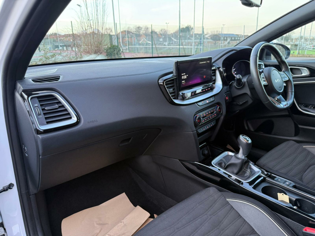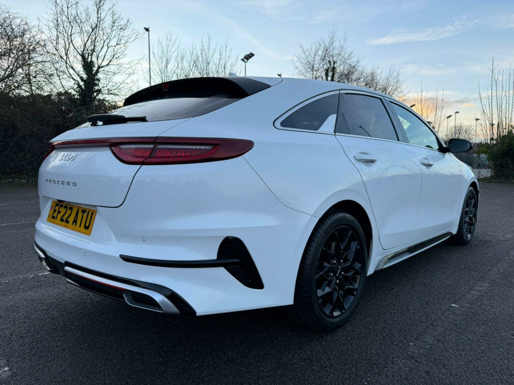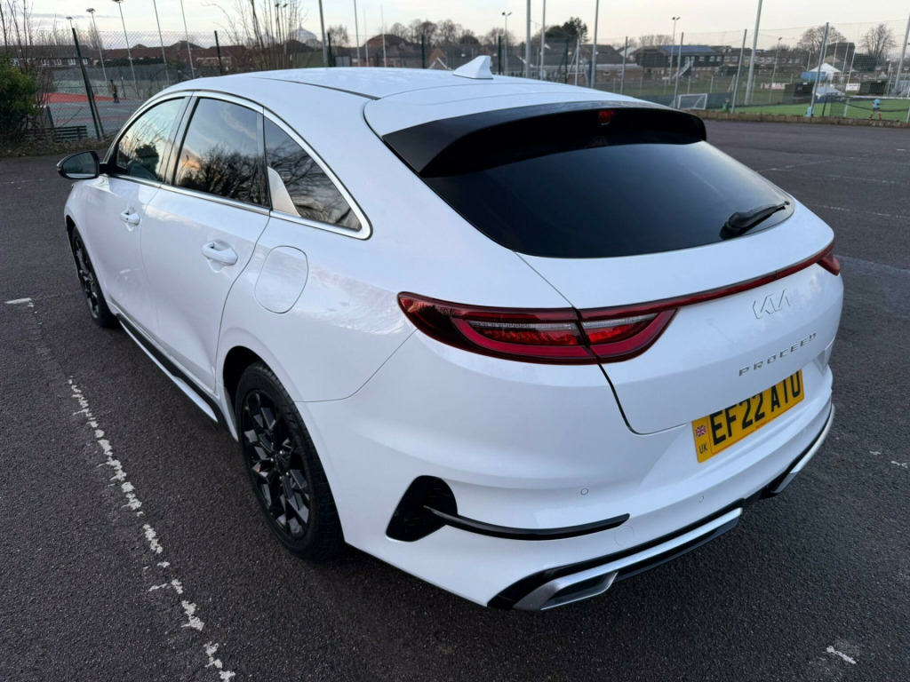 With only one owner and a remarkably low 23,000 miles on the clock, this 2022 Kia ProCeed T-GDi GT-Line presents an exceptional example of this stylish estate car. Powered by an efficient 1.5 litre petrol engine, this Euro 6 compliant model combines performance with economy. Inside, you'll find a host of convenient features designed to enhance your driving experience, including rear parking sensors for easier manoeuvring, dual automatic air conditioning for personalised comfort, and automatic headlights for effortless visibility. The heated steering wheel adds a touch of luxury on colder days, while the smart entry system with an engine start-stop button offers keyless convenience.This Kia ProCeed stands out with its impressive fuel economy, achieving up to 49 miles per gallon, and its low CO2 emissions, making it an environmentally conscious choice. Its acceleration is brisk, reaching 0-60mph in just 8.3 seconds, demonstrating a lively performance. Furthermore, the ProCeed boasts a generous boot space, perfect for accommodating luggage or shopping, and falls into a low insurance group, which can help to reduce your running costs. These highlights collectively indicate that this particular Kia ProCeed offers a superior blend of efficiency, practicality, and driving enjoyment compared to many other vehicles in its class.. 10.25in Touchscreen Satellite Navigation, 12V Power Socket - Front - Centre Console, 17in Alloy Wheels - GT-Line, 3 x Passenger Assist Grips, 4.2in Supervision Colour Cluster Display, 6-Speaker System, 60-40 Split Folding Rear Seats, ABS with Electronic Brakeforce Distribution - EBD and Brake Assist System - BAS, Alarm System, All-Round 3-Point Seatbelts, All-Round Electric Windows with Driver and Front Passenger Auto Up-Down Function, All-Round Height Adjustable Headrests, Aluminium Pedals, Android Auto with Voice Control, Apple CarPlay with Voice Control, Auto Dimming Rear-View Mirror, Automatic Defog System, Automatic Headlight Control, Black High Gloss Door Mirrors, Black High Gloss Front Console Garnish and Door Trim, Bluetooth with Voice Recognition and Music Streaming, Body Coloured Bumpers, Body Coloured Side Sill Mouldings, Body Coloured with High Gloss Black Trim Rear Spoiler, Centre Console with Storage Box and Sliding Armrest, Child Safety Rear Door Locks, Coat Hooks - Rear, Cruise Control with Speed Limiter, DAB Radio with MP3 Compatibility, Dash Illumination Dimmer Switch, Driver Attention Warning Plus - DAW with Leading Vehicle Departure Warning, Driver and Front Passenger Seat Height Adjuster, Dual Automatic Air Conditioning, Dual Horn, Electrically Folding - Adjustable and Heated Door Mirrors with LED Indicators, Electronic Parking Brake, Electronic Stability Control - ESC and Vehicle Stability Management - VSM, Emergency Stop Signalling - ESS, Engine Immobiliser and Deadlocks, Engine Start-Stop Button with Smart Entry System, Exterior Front Door Handle Illumination, Forward Collision-Avoidance Assist - City - Pedestrian - Cyclist, Front Cabin Map Light with Sunglasses Case, Front Fog Lights, Front Passenger Airbag Cut Off Switch, Front Seatback Pockets, Front Seatbelt Height Adjusters, Front and Rear Door Storage, Half Perforated Leather Gearshift, Headlights - High Beam Assist - HBA, Heated Front Seats, Heated Rear Window with Timer, Heated Steering Wheel, High Gloss Black and Satin Chrome Radiator Grille, Hill-Start Assist Control - HAC, ISOFIX Child Seat Top Tethers and Anchor Fixings, Impact Sensing Auto Door Unlocking, Interior Door Lock-Unlock Function, Kia Connect, LED Daytime Running Lights, LED Full Width Brake Light, LED Rear Combination Lights, LED Rear Fog Light, Lane Follow Assist - LFA, Lane Keeping Assist - LKA, Leather D-Cut Steering Wheel with Grey Stitching, Locking Wheel Nuts, Luggage Area Light, Luggage Area Load Cover, Luggage Compartment - Hooks, Motor Driven Power Steering - MDPS, Power Lumbar Support, Premium Centre Console with Sliding Cupholder Cover, Privacy Glass - Rear Windows and Tailgate, Projection Headlights, Rain Sensing Front Wipers, Rear Air Ventilation, Rear Centre Armrest, Rear Cupholders in Rear Armrest, Rear Parking Sensors, Rear Wiper-Washer, Reversing Camera System with Dynamic Guidelines, Satin Chrome Interior Door Handles, Satin Finished Beltline, Seatbelt Reminder Warning, Speed Sensing Auto Door Locking, Steering Wheel Mounted Audio Controls, Sunvisors with Vanity Mirror Illumination and Ticket Holder - Driver and Front Passenger, TMK - Tyre Mobility Kit, Tilt and Telescopic Steering Wheel Adjustment, Trip Computer, Twin Curtain Airbags, Twin Front Airbags, Twin Side Airbags - Front, Tyre Pressure Monitoring System - TPMS, USB Fast Charger - Front Centre Console, USB and AUX Ports Illumination, USB and AUX Ports for Connection of a Media Device, Wide-View Drivers Door Mirror, Windscreen Washer Level Warning. Full dealership history