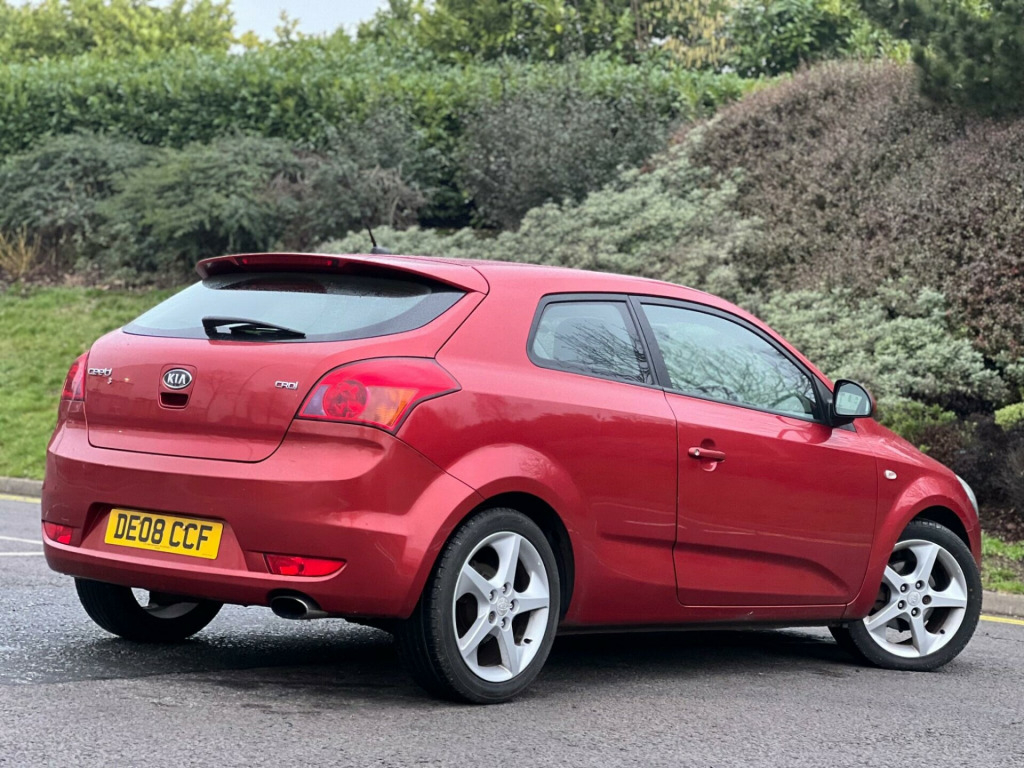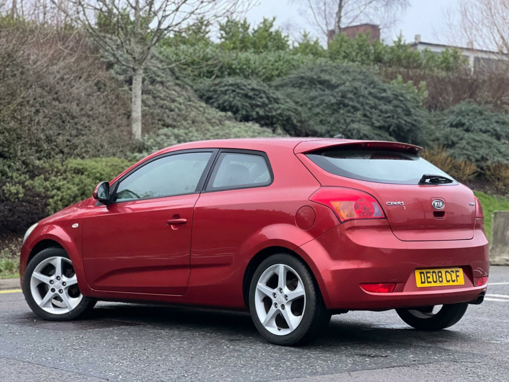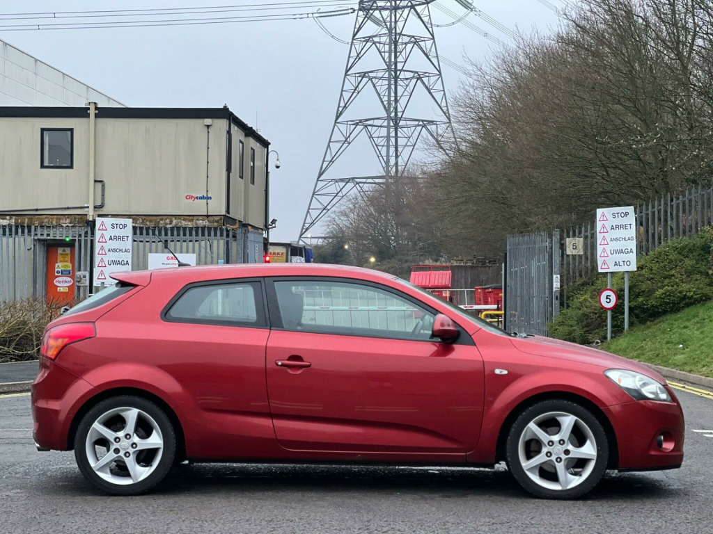 2008 Kia ProCeed 1.6 3 3dr in Red. 126,000 warranted miles on the clock. MOT till 7th April 2026. Only 1 previous owners from new. Service History Available: 12 Services 11 Main Dealer. Car drives well with no mechanical faults. Full V5 Available. Good spec including: Leather Steering Wheel, CD/ Radio/AUX, AC/Climate Control, Electric Windows, Electric Mirrors, Alloy Wheels, Central Locking and many more. Nationwide Delivery Available. P/X Welcome. HPI Clear. 2 Keys. ULEZ Compliant. Any questions don't hesitate to contact us on 07443456706. Whatsapp available as well justable steering column/wheel, air bag driver, air bag passenger, air bag side, alarm, alloy wheels (17in), anti-lock brakes, armrest, ashtray/lighter, body coloured bumpers, central door locking, centre console, centre rear seat belt, cigar lighter, climate control, clock, cup holder, deadlocks, electric windows (front), electronic brake force distribution, external temperature display, extra storage, front fog lights, gear knob leather, head restraints, heated rear screen, immobiliser, in car entertainment (radio/cd/mp3), mirrors external, power socket, power-assisted steering, rear wash/wipe, seat - isofix anchorage point, seat belt pre-tensioners, seat height adjustment, seat lumbar support, seats split rear, spare wheel, speakers, steering wheel leather, steering wheel mounted controls (audio), sun visor, third brake light, tinted glass, trip computer, upholstery cloth/leather, windscreen wiper