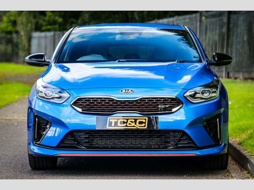 Kia ProCeed GT DCT – Full Service History – Balance of Warranty Until April 2028 / 100k A superb example of the Kia ProCeed GT DCT which has only one previous owner from new, comes with a full service history, serviced at 7K, 14K, 23K & 30K, the balance of the manufacturer's warranty until April 2028 / 100k, two remote keys and an MOT. Specification highlights include: Multi-stage heated seats and heated steering wheel, automatic xenon headlights, switchable driving modes, keyless entry & start, park assist with front & rear sensors, reversing camera, multifunction steering wheel with gearshift paddles, electric power-folding door mirrors, factory privacy glass, electric windows, cruise control, satellite navigation, dual climate control with A/C, DAB / USB / Radio player, and lane departure warning system. Exterior: Finished in gleaming metallic blue with gloss black and red detailing, the ProCeed GT sits on unmarked 18-inch diamond cut alloy wheels with red brake calipers, presenting a sporty and stylish look. Interior: Inside, the cabin is very clean throughout and features five seats trimmed in black half-leather / half-Alcantara with contrasting red stitching, a black roof lining, gloss black and aluminium dashboard detailing, black floor carpet and rubber overmats. Please visit our website to read through our 5-star online reviews and see what our customers have to say. Search Tags: Kia ProCeed GT, Kia ProCeed GT DCT, Kia ProCeed GT Au 10.25in Touchscreen Satellite Navigation, 12V Power Socket - Front - Centre Consol, 18in Alloy Wheels with Red Centre Cap, 3 x Passenger Assist Grips, 4.2in Supervision Colour Cluster Display, 6-Speaker System, 60-40 Split Folding Rear Seats, ABS with Electronic Brakeforce Distribut, Air Intake with Red Accent Lower Lip, Alarm System, All-Round 3-Point Seatbelts, All-Round Electric Windows with Driver a, All-Round Height Adjustable Headrests, Aluminium Pedals, Android Auto with Voice Control, Apple CarPlay with Voice Control, Auto Dimming Rear-View Mirror, Automatic Defog System, Automatic Headlight Control, Black High Gloss Door Mirrors, Black High Gloss Front Console Garnish a, Blue Flame,
