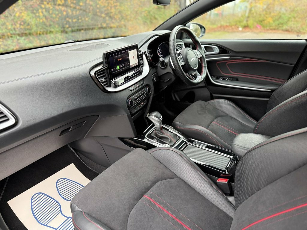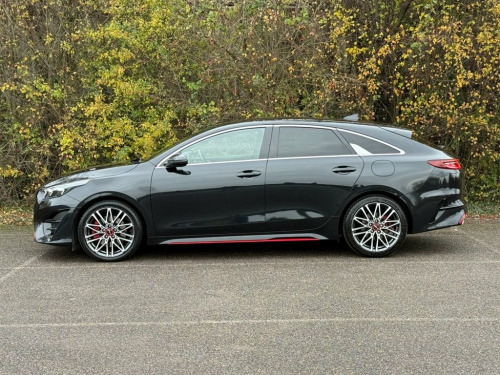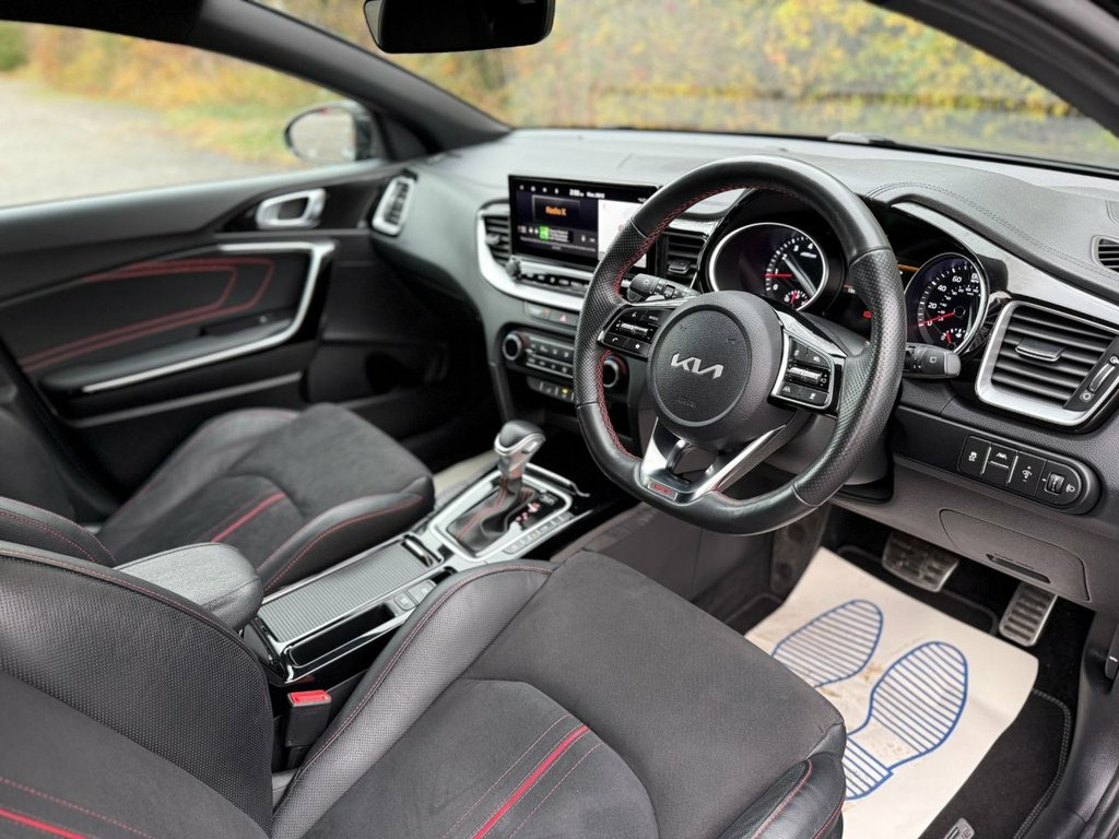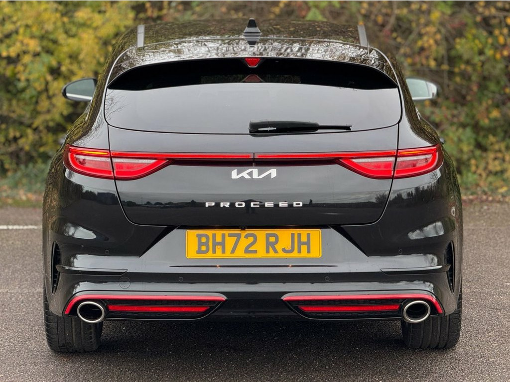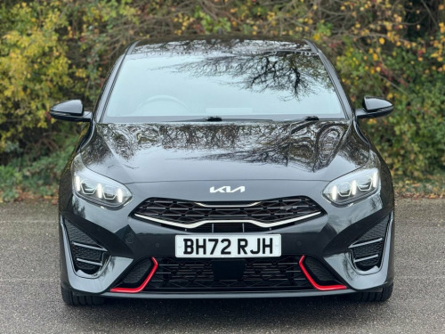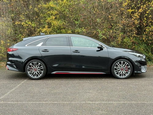 Here for sale at Leigh Cars Ltd we are delighted to present this superb ULEZ EXEMPT high specification example of the KIA ProCeed 1.6 T-GDI GT Shooting Brake 200bhp petrol estate automatic finished in stunning black metallic paint. It comes with full service history - 3 stamps last completed in December 2025. It also comes with a brand new advisory free MOT - expiry December 2026. This fine example benefits from the KIA manufacturer warranty until 2029, so peace of mind is included free of charge! This superb estate is packed with every bit of specification you will ever need on a car. These include half black leather interior, heated front seats, heated steering wheel, front and rear parking aid, rear parking camera, keyless entry + start, 10.25" touchscreen infotainment system with satellite navigation, Park Assist, Apple car Play + Android Auto, Wireless Phone Charging, Voice Command, DAB radio, bluetooth + audio streaming, USB + AUX, cruise control, dual zone climate controlled climate controlled air conditioning, auto lights + wipers, electric windows, electric mirrors, power folding mirrors, alloy wheels, remote central locking, 2 keys + much much more. This amazing 5 door petrol estate would be ideal for any growing family as it comes with an abundance of space, practicality and specification for all those family requirements. The road tax is £195 and it produces 41.5mpg average fuel consumption and is also ULEZ charge exempt. Book in your click & collec Phantom Black, 10.25in Touchscreen Satellite Navigation, 12V Power Socket - Front - Centre Consol, 18in Alloy Wheels with Red Centre Cap, 3 x Passenger Assist Grips, 4.2in Supervision Colour Cluster Display, 6-Speaker System, 60-40 Split Folding Rear Seats, ABS with Electronic Brakeforce Distribut, Alarm System, All-Round 3-Point Seatbelts, All-Round Electric Windows with Driver a, All-Round Height Adjustable Headrests, Aluminium Pedals, Android Auto with Voice Control, Apple CarPlay with Voice Control, Auto Dimming Rear-View Mirror, Automatic Defog System, Automatic Headlight Control, Black High Gloss Door Mirrors, Black High Gloss Front Console Garnish a, Bluetooth with Voice Recognition a