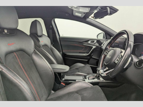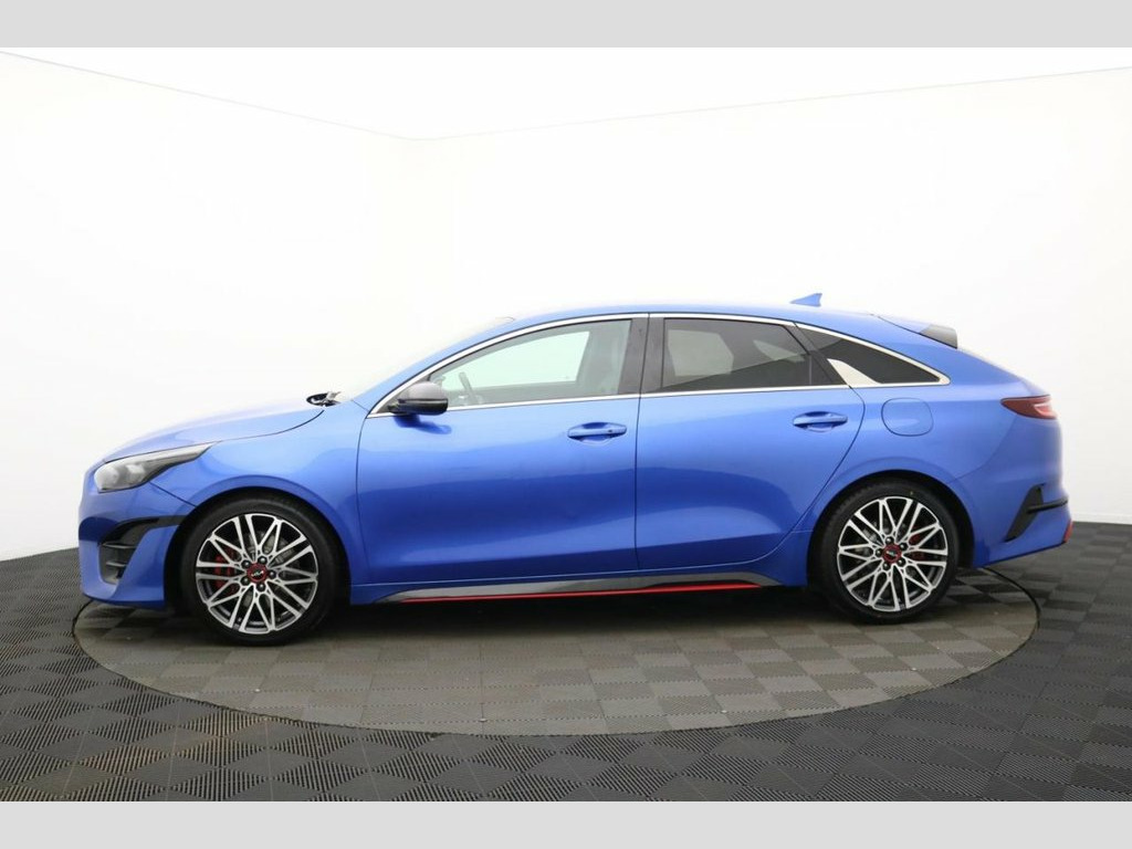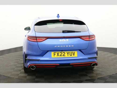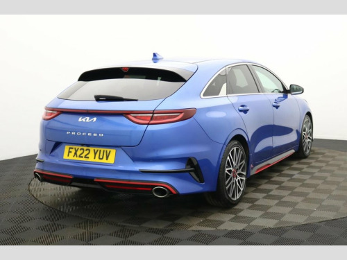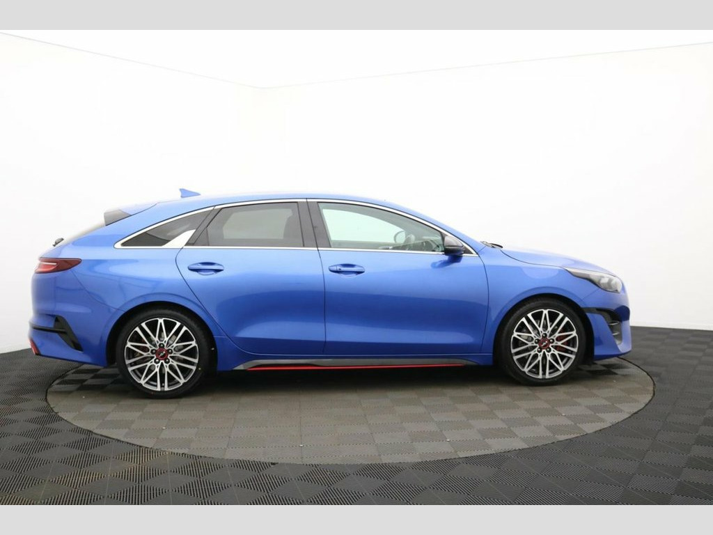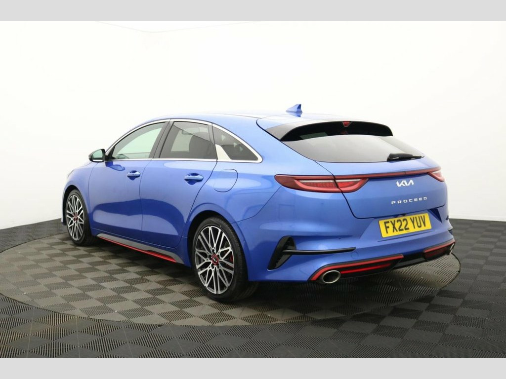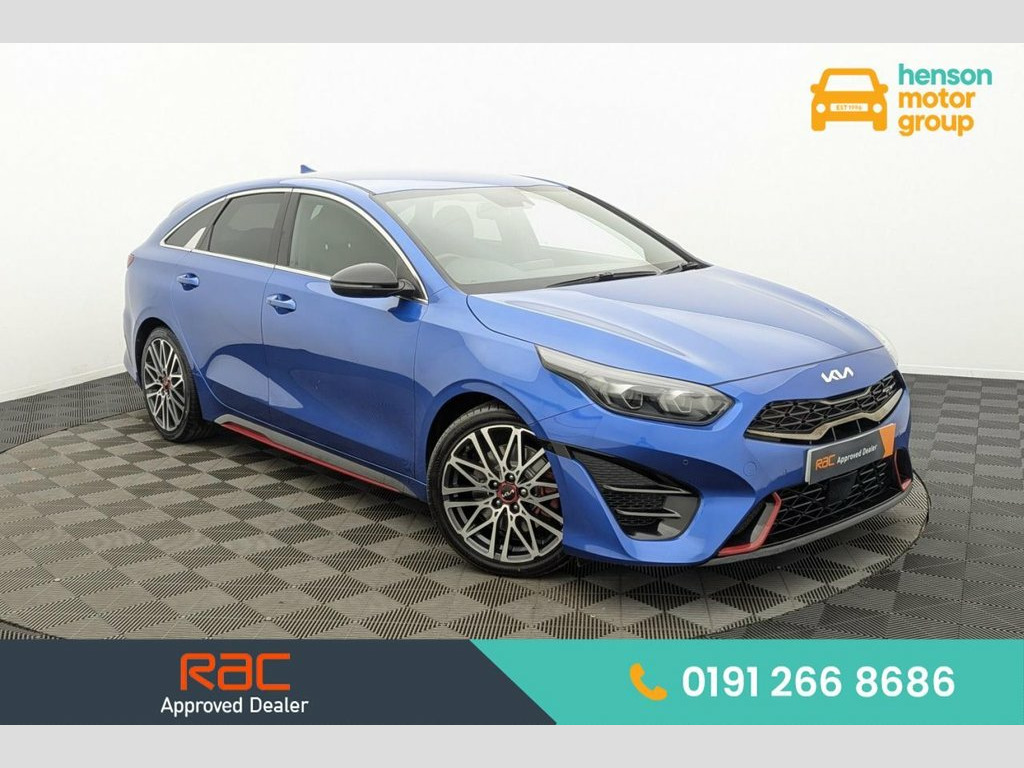 Henson Car Store presents the KIA PROCEED 1.6 T-GDi GT Shooting Brake 5dr Petrol DCT Euro 6 (s/s) finished in Blue, this car comes with service history. This 2022 Kia ProCeed T-GDi GT offers a compelling blend of style and performance, boasting a 1.6 litre petrol engine and meeting Euro 6 emissions standards. This GT trim model comes equipped with advanced features such as automatic headlight control, including automatic on functionality, and LED Bi-Function headlights for enhanced visibility. Inside, you'll appreciate the convenience of both Apple CarPlay and Android Auto, both with voice control, allowing seamless integration of your smartphone. The dual automatic air conditioning ensures a comfortable cabin temperature for all occupants, regardless of the weather outside. The ProCeed T-GDi GT stands out with its impressive acceleration, reaching 0-60mph in just 7.2 seconds, demonstrating its sporty nature. This performance is complemented by a large boot space, offering practicality for everyday needs and longer journeys, making it more versatile than many similar vehicles. Furthermore, its placement in a low insurance group makes it an economical choice for many drivers, providing peace of mind alongside its engaging driving experience. 10.25in Touchscreen Satellite Navigation, 12V Power Socket - Front - Centre Consol, 18in Alloy Wheels with Red Centre Cap, 3 x Passenger Assist Grips, 4.2in Supervision Colour Cluster Display, 6-Speaker System, 60-40 Split Folding Rear Seats, ABS with Electronic Brakeforce Distribut, Alarm System, All-Round 3-Point Seatbelts, All-Round Electric Windows with Driver a, All-Round Height Adjustable Headrests, Aluminium Pedals, Android Auto with Voice Control, Apple CarPlay with Voice Control, Auto Dimming Rear-View Mirror, Automatic Defog System, Automatic Headlight Control, Black High Gloss Door Mirrors, Black High Gloss Front Console Garnish a, Bluetooth with Voice Recognition and Mus, Body Co