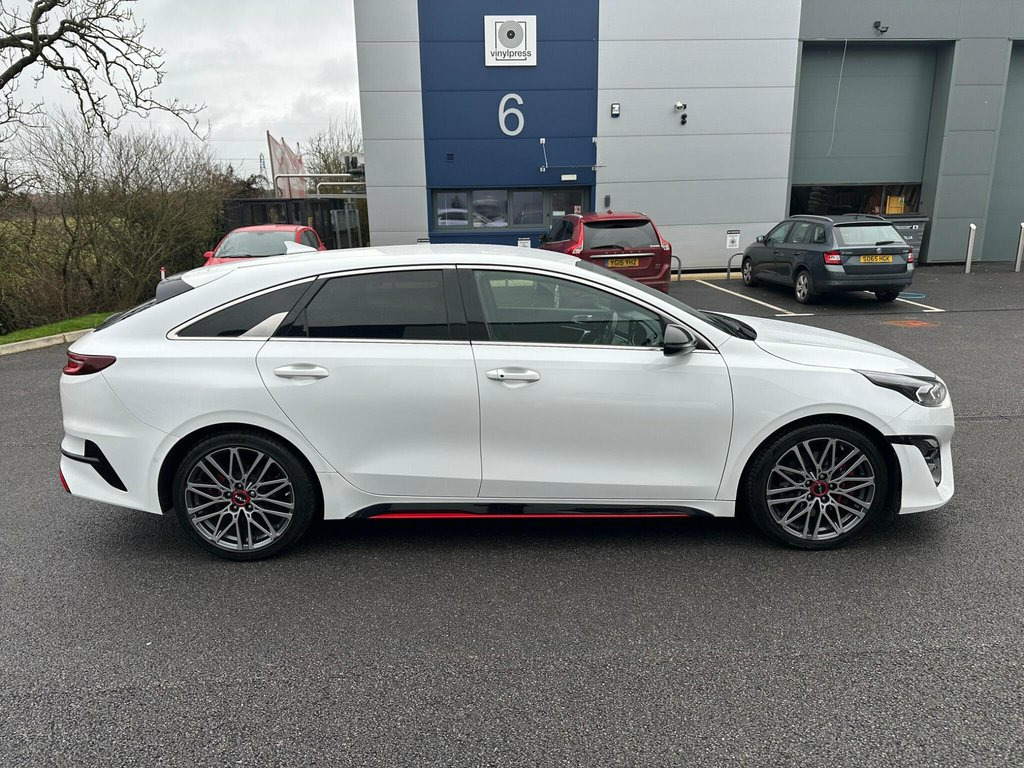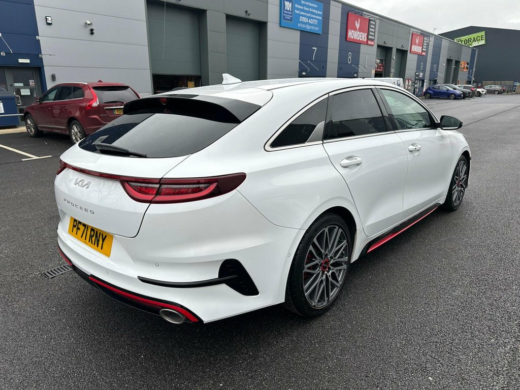 We are delighted to offer for sale this great looking Kia ProCeed GT Shooting Brake. With only one owner and a remarkably low mileage of 22798 miles for its 2022 registration, this ProCeed T-GDi GT presents an exceptional find. This Euro 6 compliant model boasts a 1.6 litre petrol engine and comes with a full dealership service history, a clear vehicle history check, and an MOT valid until January 2027, offering peace of mind. Inside, you'll appreciate the convenience of a heated steering wheel, Bluetooth with voice recognition and music streaming, and dual automatic air conditioning. Parking is made effortless with the Smart Park Assist System, which includes parallel and perpendicular parking capabilities, along with front and rear parking sensors and a reversing camera system with dynamic guidelines. The Kia ProCeed T-GDi GT stands out from other vehicles in its class due to several key highlights. Its impressive acceleration, achieving 0-60mph in just 7.2 seconds, demonstrates its dynamic performance. Furthermore, the generous boot space ensures practicality for all your needs, while its low insurance group rating makes it an economical choice for everyday driving. Will be supplied with a fresh Service and our own Workshop Inspection for added peace of mind and comes with the balance of Kia Warranty until 2029!!!! 10.25in Touchscreen Satellite Navigation, 18in Alloy Wheels with Red Centre Cap, 3 x Passenger Assist Grips, 4.2in Supervision Colour Cluster Display, 6-Speaker System, 60-40 Split Folding Rear Seats, ABS with Electronic Brakeforce Distribut, Alarm System, All-Round 3-Point Seatbelts, All-Round Electric Windows with Driver a, All-Round Height Adjustable Headrests, Aluminium Pedals, Android Auto with Voice Control, Apple CarPlay with Voice Control, Auto Dimming Rear-View Mirror, Automatic Defog System, Automatic Headlight Control, Black High Gloss Door Mirrors, Black High Gloss Front Console Garnish a, Bluetooth with Voice Recognition and Mus, Body Coloured Bumpers, Body Coloured Side Sill Mo