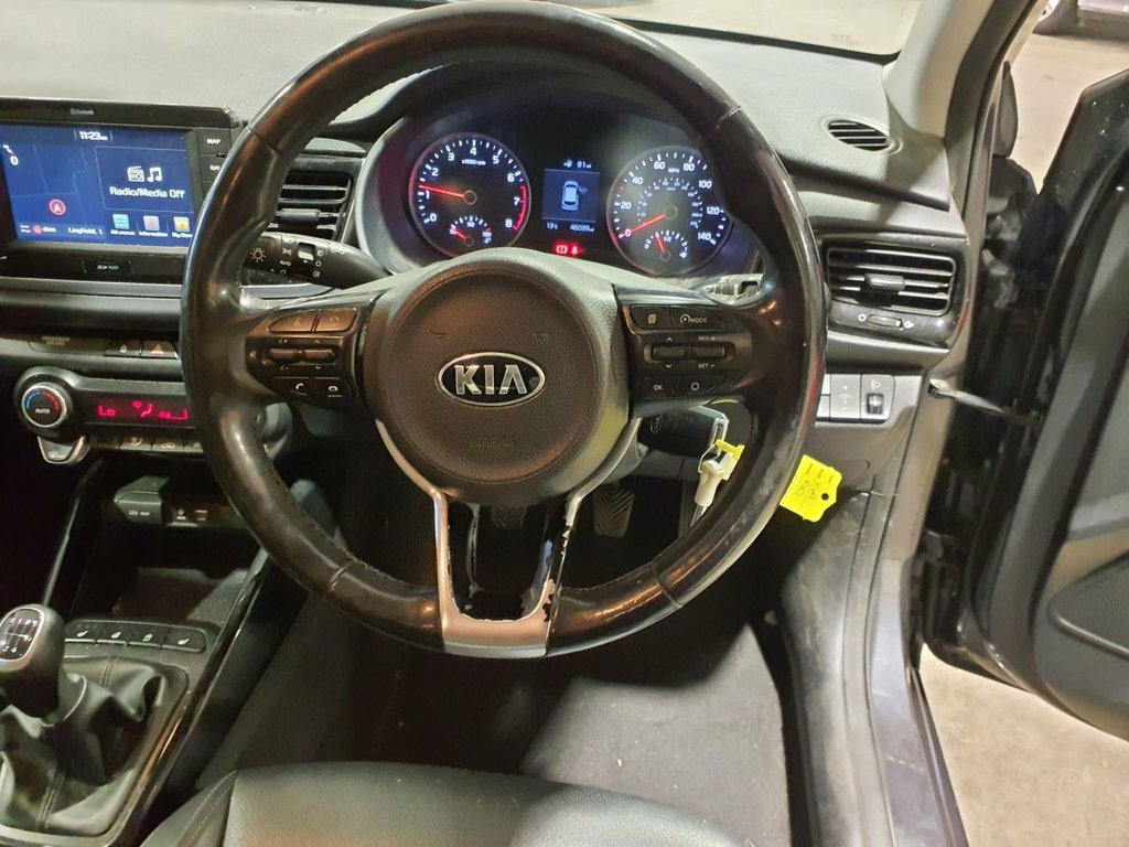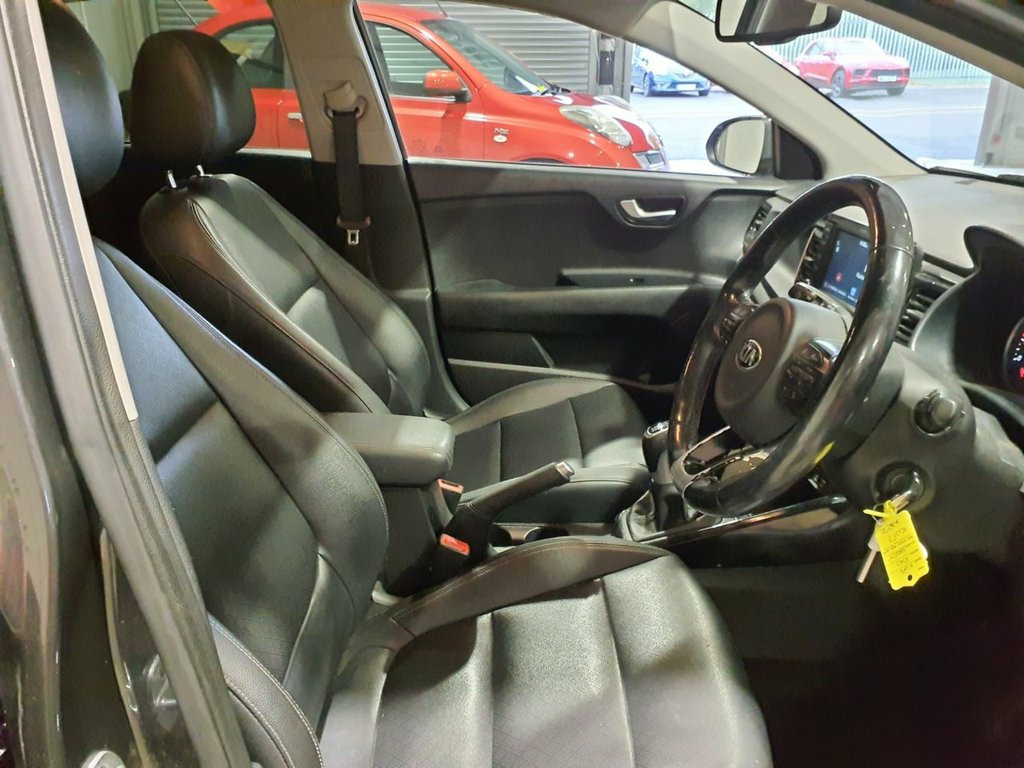ONLY 45,039 MILES+320 A YEAR ROAD TAX+7 INCH SATELLITE NAVIGATION SYSTEM+APPLE CARPLAY/ANDROID AUTO+BLUETOOTH WITH VOICE RECOGNTION AND MUSIC STREAMING+AUTOMATIC AIR-CONDITIONING+LUXURIOUS HEATED HALF LEATHER AND CLOTH UPHOLSTERY+AUTOMATIC HEADLIGHT ACTIVATION+RAIN-SENSING WINDSCREEN WIPERS+PARKING ASSISTANCE WITH PARKING CAMERA+METALLIC 'GRAPHITE GREY' PAINT+16 INCH ALLOY WHEELS. At Haverhill Car Xchange we would like to offer you our LOW MILEAGE Kia Rio T-GDi 3 Hatchback which has been finished in a metallic 'Graphite Grey' paint with Black HEATED half Leather and Cloth upholstery. Excellent Specification Includes a 7 Inch Touchscreen Satellite Navigation System, Kia Connected Services Featuring TOMTOM-Traffic-Speed Cameras-Local Search and Weather Updates, Apple CarPlay/Android Auto, Bluetooth with Voice Recognition and Music Streaming, USB Charging Port, Aux Ports for Connected Media Devices, 12 Volt Power Socket, Lane Departure Waring, Automatic Air-Conditioning, Gear Shift Indicator, Cruise Control with Speed Limiter, Electric Front and Rear Electric Windows with Drivers Auto Up-Down Function, Body Coloured Bumpers/Door Handles and Door Mirrors with Integrated Side Indicators, Black Radiator Grille with Chrome Surround, Automatic Headlight Activation, Bi-Function Projection Headlights, LED Daytime Running Lights, Cornering Lights, Projection Front Fog Lights, Heated Seats, Heated Steering Wheel, Rain-Sensing Windscreen Wipers, Parking Assistance Faux Leather - Black, Graphite, 12V Power Socket - Front, 16in Alloy Wheels, 3 x Passenger Assist Grips, 3.5in Supervision Monochrome Cluster Dis, 6-Speaker System, 60-40 Split Folding 2nd Row Seats, 7in Touchscreen Satellite Navigation wit, ABS with Electronic Brakeforce Distribut, Advanced Driving Assistance Pack - ADAP, Aero-Blade Type Front Wipers, All-Round 3-Point Seatbelts, All-Round Height Adjustable Headrests, Anti-Theft Alarm System, Apple CarPlay and Android Auto, Auto Dimming Rear-View Mirror, Automatic Air Conditioning, Automatic Defog System, Automatic Headlight Control, Autonomous Emergency Braking - AEB, Bi Function Projection Headlights, Black Faux Leather Fascia Trim, Black