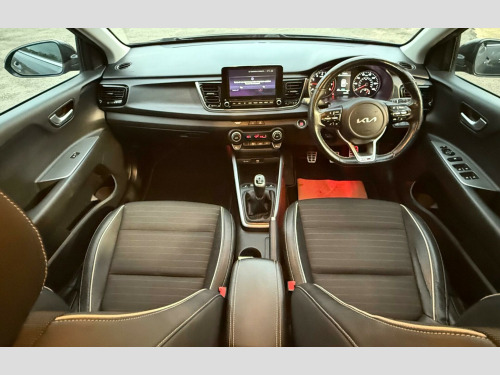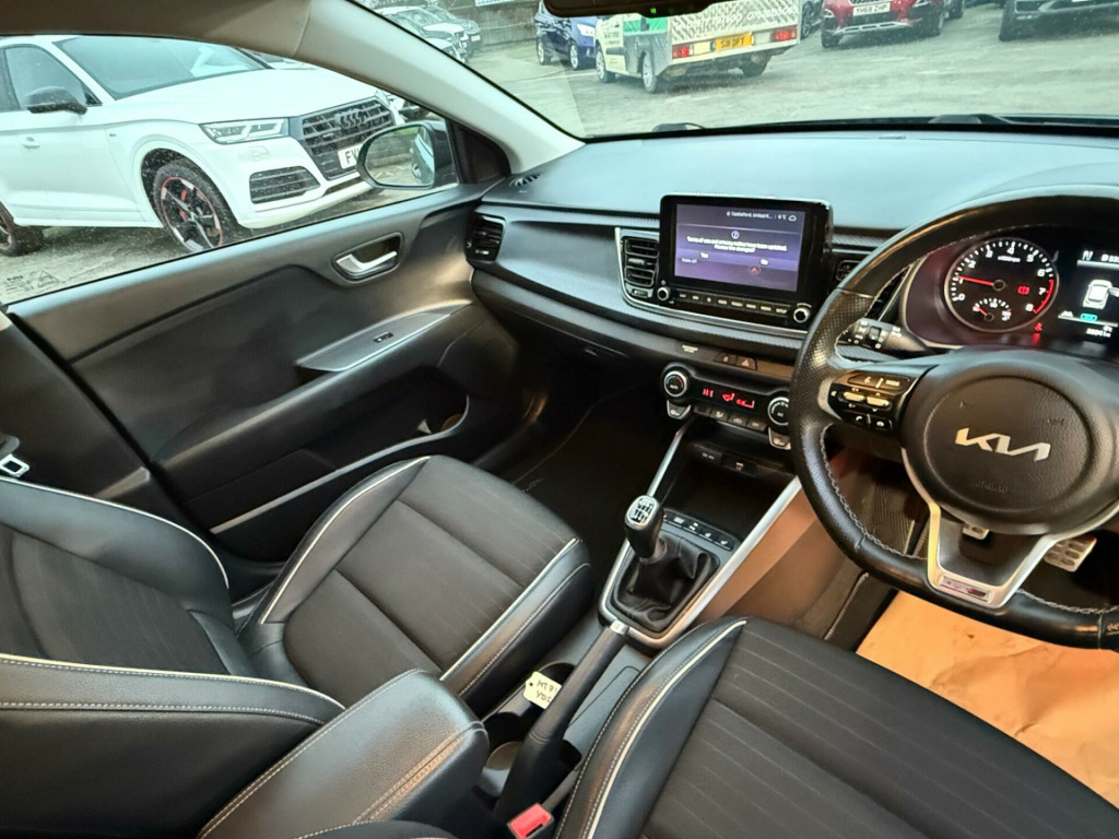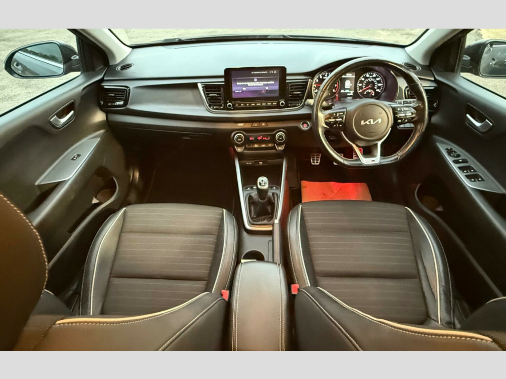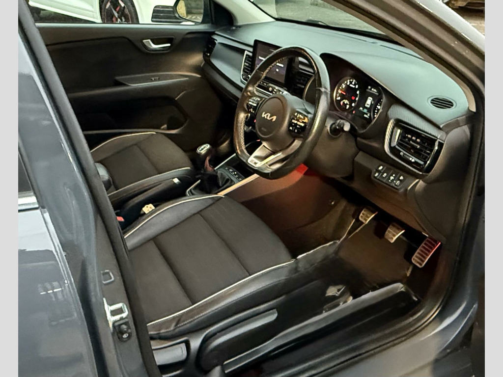 This 2021 Kia Rio T GDi GT Line S is a superb example of a well maintained and cared for vehicle. It boasts a 1.0 litre petrol hybrid engine, meeting Euro 6 emissions standards. Inside, you'll find a host of convenient features designed to enhance your driving experience, including Android Auto with voice control, automatic air conditioning, and Bluetooth connectivity with music streaming. For added comfort on colder days, the front seats are heated, and for peace of mind on the road, it is equipped with Blind Spot Collision Warning.This Kia Rio stands out with its remarkably low insurance group, making it an economical choice for many drivers. Furthermore, its generous boot space offers practicality for everyday needs and longer journeys alike. These highlights demonstrate how this particular Rio offers excellent value and a superior ownership proposition compared to other vehicles in its class. in alloy wheels, 3 x passenger assist grips, 6-speaker system, 60-40 split folding 2nd row seats, 8in touchscreen display with dab radio, 8in touchscreen navigation with dab, abs with electronic brakeforce distribution - ebd and brake assist system - bas, advanced driving assistance pack - adap, aero-blade type front wipers, all-round 3-point seatbelts, all-round height adjustable headrests, android auto with voice control, anti-theft alarm system, apple carplay with voice control, auto dimming rear-view mirror, automatic air conditioning, automatic defog system, automatic light control, bi function projection headlights, blind spot collision warning - bcw, bluetooth with music streaming, body coloured exterior door handles, carbon finished fascia trim, centre console with storage box and sliding armrest, child safety rear door locks, chrome side window trim, cornering brake control - cbc and straight-line stability - sls, cornering lights, cruise control with speed limiter, d-cut steering wheel, dash illumination dimmer switch, door deadlocks, drive mode select, driver and passenger sunvisors with vanity mirror and illumination, drivers seat height adjuster, electrically folding-adjustable and heated door mirrors with led indicator lights, electronic stability control - esc and vehicle stability management - vsm, emergency stop signalling - ess, engine immobiliser, external temperature display, front electric windows with auto up-down function, front passenger airbag cut off switch, front seatback pockets - passenger, front seatbelt height adjusters, front seatbelt pre-tensioners and load limiters, front usb charger port, front usb for media connection, front and rear door map pockets with bottle holder, gear shift indicator, headlight levelling device, heated front seats, heated rear window, heated steering wheel, high glossy black door mirrors and rear spoiler, hill-start assist control - hac, isofix child seat top tethers and anchor fixings, impact sensing auto door unlocking, led daytime running lights, led ice-cube front fog lights, led rear fog light, leather trimmed steering wheel and gearshift, locking wheel nuts, luggage area light, luggage area parcel shelf, luggage hooks, manual speed limit assist, metal pedals, overhead console with sunglasses case, power steering, privacy glass - rear windows and tailgate, radiator grille - gloss black and dark chrome surround, rain sensing front wipers, rear electric windows, rear parking sensors, rear wiper-washer, reversing camera system with dynamic guidelines, satin chrome interior door handles, seatbelt reminder warning, smart key with engine start-stop button, speed sensing auto door locking, speed variable front wipers, sports style front and rear bumpers, steering wheel mounted audio controls, tmk - tyre mobility kit, tachometer, telematics system with uvo connect services, tilt and telescopic steering wheel adjustment, tinted glass, trip computer, twin curtain airbags, twin exhaust tips, twin front airbags, twin side airbags - front, tyre pressure monitoring system - tpms, usb - charging port - rear, visible vehicle identification number - vin, welcome and follow-me-home light functionality, windscreen washer level warning