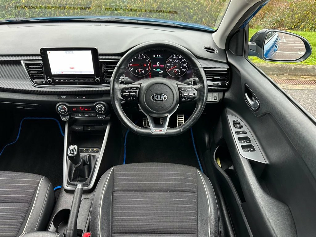 For sale is this stylish and efficient Kia Rio 1.0 T-GDi MHEV GT-Line S Hatchback (5-door) finished in stunning Azure Blue, combining sporty looks with excellent everyday practicality. Powered by a responsive 1.0 turbo petrol mild-hybrid engine paired with a smooth manual gearbox, this Rio delivers impressive performance while remaining economical to run. The car has been exceptionally well maintained with a full service history, most recently serviced in October 2025, giving complete peace of mind to its next owner. As the range-topping GT-Line S model, it comes with a high level of specification, which includes heated steering wheel, front heated seats, reverse camera assist, apple car play/android auto, front & rear sensors, blind spot assist. Even better, it benefits from Kia's manufacturer warranty valid until January 2028, providing long-term reassurance and outstanding value. This is a fantastic opportunity to own a well-cared-for, great-looking hatchback with low running costs, strong reliability and plenty of remaining warranty cover. Azure Blue, 17in Alloy Wheels, 3 x Passenger Assist Grips, 6-Speaker System, 60-40 Split Folding 2nd Row Seats, 8in Touchscreen Display with DAB Radio, 8in Touchscreen Navigation with DAB, Advanced Driving Assistance Pack - ADAP, Aero-Blade Type Front Wipers, All-Round 3-Point Seatbelts, All-Round Height Adjustable Headrests, Android Auto with Voice Control, Anti-Theft Alarm System, Apple CarPlay with Voice Control, Auto Dimming Rear-View Mirror, Automatic Air Conditioning, Automatic Defog System, Automatic Light Control, Bi Function Projection Headlights, Blind Spot Collision Warning - BCW, Bluetooth with Music Streaming, Carbon Finished Fascia Trim, Centre Console with Storage Box and Slid