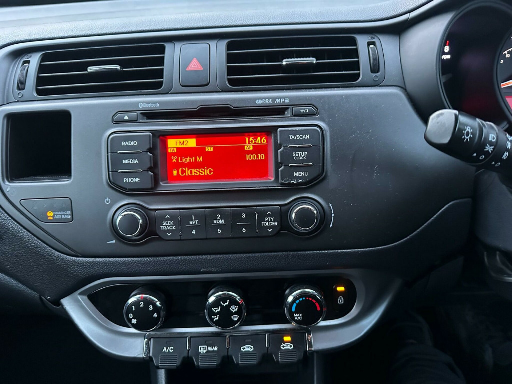 This 2012 Kia Rio 2 offers excellent value with a clear vehicle history check, providing peace of mind for its next owner. Powered by an efficient 1.25L petrol engine, this model is presented in the popular 2 trim. Inside, you'll find a comfortable cabin equipped with air conditioning to keep you cool, and an enhanced Arkamys sound system for enjoyable journeys. Connectivity is made simple with Bluetooth, allowing for seamless music streaming and handsfree calls.The Kia Rio 2 stands out with its impressive fuel economy, achieving up to 55 miles per gallon, which indicates it is more economical than many other vehicles in its class. Furthermore, its low CO2 emissions and low insurance group rating suggest that running costs for this car are kept to a minimum, making it a sensible choice for everyday driving.. 12V Power Socket, 16in Alloy Wheels, 3 x Passenger Assist Grips, 4-Speaker System, 60-40 Split Folding 2nd Row Seats, ABS - Anti Lock Braking System, Air Conditioning, Airbags - Curtain, Airbags - Driver, Airbags - Passenger, Airbags - Side, Alarm System, All-Round Height Adjustable Headrests, BAS - Brake Assist System, Black Bezel Headlights, Bluetooth with Music Streaming, Body Coloured Bumpers, Body Coloured Door Mirrors, Body Coloured Exterior Door Handles, Centre Console Cupholders, Centre Fascia - Metallic, Child Safety Rear Door Locks, Coat Hooks - Rear, Daytime Running Lights, Drivers Seat Height Adjuster, EBD - Electronic Brakeforce Distribution, ESC - Electronic Stability Control, Electric Windows - Front and Rear, Electrically Adjustable and Heated Door Mirrors, Electrically Folding Door Mirrors, Emergency Stop Signalling - ESS, Engine Immobiliser, Enhanced Sound System - Arkamys, External Temperature Display, Faux Leather Door Centre Trim, Front Centre Console Sliding Armrest, Front Passenger Airbag Cut Off Switch, Front Seatback Pockets, Front and Rear Door Map Pockets with Bottle Holder, Gear Shift Indicator, Glovebox - Cooled, Glovebox with Illumination, Headlight Levelling System, High Mounted Brake Light, Hill-Start Assist Control - HAC, ISOFIX Child Seat Top Tethers and Anchor Fixings, Impact Sensing Auto Door Unlocking, Inside Handle Over Ride, Integrated Indicator Lights LED in Door Mirrors, Leather Trimmed Gear Shift, Leather Trimmed Steering Wheel, Locking Wheel Nuts, Motor Driven Power Steering - MDPS, Projection Front Fog Lights, RDS Radio with CD and MP3, Radiator Grille - Black Mesh with Chrome Surround, Remote Central Locking with Tailgate and Folding Key, Seatbelt Reminder Warning, Side Impact Protection System, Soft-Touch Dashboard Insert, Speed Sensing Auto Door Locking, Steering Wheel Mounted Audio Controls, Sunvisors with Vanity Mirrors Illumination, Tilt and Telescopic Steering Wheel Adjustment, Tinted Glass, Trip Computer, Tyre Repair Kit, USB and AUX Ports, VSM - Vehicle Stability Management.