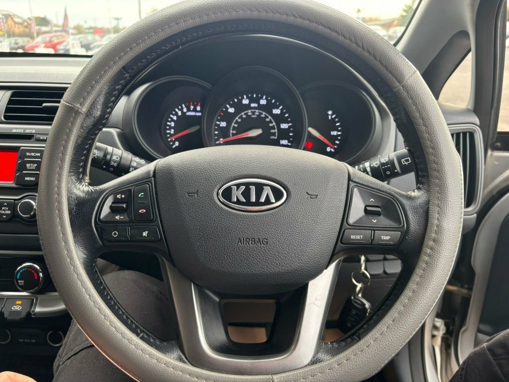 Powered by South Korea's finest 1.25 litre petrol engine and paired with a 5 speed manual gear box this Kia boasts 84 bhp and returns and impeccable 55.4 mpg on a combined cycle The Kia has traveled just under 65,000 miles The Kia is known for being a practical, well-equipped, and reliable with low running costs The Rio makes a great first car for someone benefiting from group 5 insurance and only £35.00 a year to tax! The Hatchback comes with great spec such as steering wheel mounted controls, telephone connection and just so much more! 12V Power Socket, 16in Alloy Wheels, 3 x Passenger Assist Grips, 4-Speaker System, 60-40 Split Folding 2nd Row Seats, ABS - Anti Lock Braking System, Air Conditioning, Airbags - Curtain, Airbags - Driver, Airbags - Passenger, Airbags - Side, Alarm System, All-Round Height Adjustable Headrests, BAS - Brake Assist System, Black Bezel Headlights, Bluetooth with Music Streaming, Body Coloured Bumpers, Body Coloured Door Mirrors, Body Coloured Exterior Door Handles, Centre Console Cupholders, Centre Fascia - Metallic, Child Safety Rear Door Locks, Coat Hooks - Rear, Daytime Running Lights, Drivers Seat Height Adjuster, EBD - Electronic Brakeforce Distribution, ESC - Electronic Stability Control,