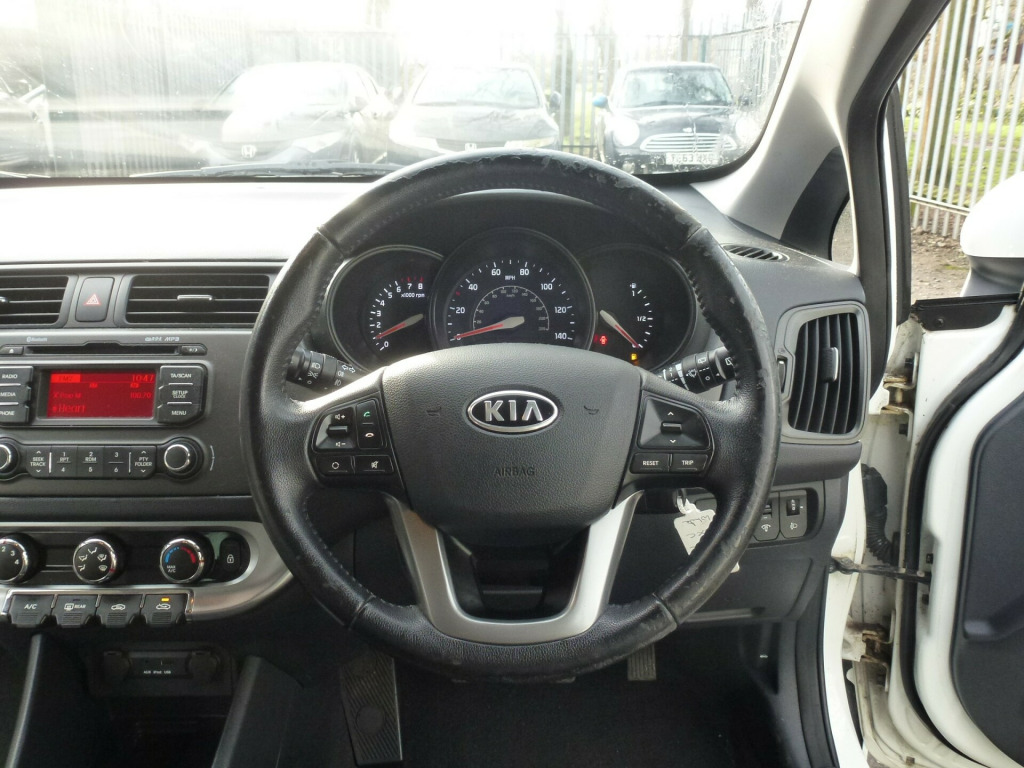 2012 KIA RIO 1.25 2 5DR HATCHBACK 103000 Miles With Full Kia Main Dealer Service History, ULEZ Compliant, Finished In White With Black Cloth Interior Trim, Lovely Car In Fantastic Condition, Drives Superbly With No Faults, Fitted With Alloy Wheels, Electric Windows x4, Electric Mirrors, Air Conditioning, Radio CD Player, Bluetooth Phone Connectivity, Aux Connection, USB Connection, Isofix Anchor Points, Traction Control, High Level Rear Brake Light, Rear Boot Spoiler Tinted Privacy Glass, Remote Central Locking, MOT Till 16/08/26, Full Service History 9 Dealer Stamps 87134,To Arrange a Viewing Call Steve on 07767783701, v power socket, 4-speaker system, bluetooth with music streaming, enhanced sound system - arkamys, rds radio with cd and mp3, usb and aux ports, 16in alloy wheels, black bezel headlights, body coloured bumpers, body coloured door mirrors, body coloured exterior door handles, electric windows - front and rear, electrically adjustable and heated door mirrors, electrically folding door mirrors, integrated indicator lights led in door mirrors, locking wheel nuts, radiator grille - black mesh with chrome surround, tinted glass, tyre repair kit, 3 x passenger assist grips, 60-40 split folding 2nd row seats, air conditioning, all-round height adjustable headrests, centre console cupholders, centre fascia - metallic, coat hooks - rear, drivers seat height adjuster, faux leather door centre trim, front centre console sliding armrest, front seatback pockets, front and rear door map pockets with bottle holder, glovebox - cooled, glovebox with illumination, inside handle over ride, leather trimmed gear shift, leather trimmed steering wheel, soft-touch dashboard insert, steering wheel mounted audio controls, sunvisors with vanity mirrors illumination, tilt and telescopic steering wheel adjustment, abs - anti lock braking system, airbags - curtain, airbags - driver, airbags - passenger, airbags - side, alarm system, bas - brake assist system, child safety rear door locks, ebd - electronic brakeforce distribution, esc - electronic stability control, emergency stop signalling - ess, engine immobiliser, front passenger airbag cut off switch, hill-start assist control - hac, isofix child seat top tethers and anchor fixings, impact sensing auto door unlocking, remote central locking with tailgate and folding key, seatbelt reminder warning, side impact protection system, speed sensing auto door locking, vsm - vehicle stability management, daytime running lights, headlight levelling system, high mounted brake light, projection front fog lights, external temperature display, gear shift indicator, motor driven power steering - mdps, trip computer