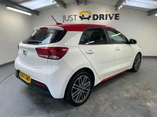 The Kia Rio is a stylish, practical and highly reliable 5-door hatchback featuring a distinctive two-tone roof and red interior accents. It offers a spacious cabin, great comfort and renowned reliabilty. Its low running costs and easy, everyday usability make it a great choice. The Pulse Edition trim often adds unique styling elements including red bumper inserts, side skirts and mirror caps together with black and red leather-effect upholstery. There's also 17" titanium-effect alloy wheels and a 5-inch touchscreen media system with DAB radio, Bluetooth connectivity and a rear parking camera as well as audio sensors. The solid 1.25 petrol engine is highly economical with Kia suggesting up to 68 mpg achievable, it's ULEZ compliant and only Group 7 insurance making it an ideal car for the younger driver. 12V Power Socket - Front, 17in Alloy Wheels, 3 x Passenger Assist Grips, 3.5in Monochrome Cluster Display, 5in Colour Touchscreen Audio Display wit, 6-Speaker System, 60-40 Split Folding 2nd Row Seats, ABS with Electronic Brakeforce Distribut, Aero-Blade Type Front Wipers, Air Conditioning, All-Round 3-Point Seatbelts, All-Round Height Adjustable Headrests, Anti-Theft Alarm System, Automatic Headlight Control, Black Radiator Grille with Chrome Surrou, Bluetooth with Music Streaming, Body Coloured Bumpers, Body Coloured Door Mirrors, Body Coloured Exterior Door Handles, Centre Console with Storage Box and Slid, Child Safety Rear Door Locks, Cornering Brake Control - CBC and Straig, Dash Illum