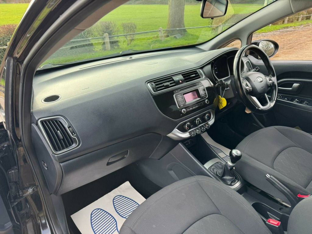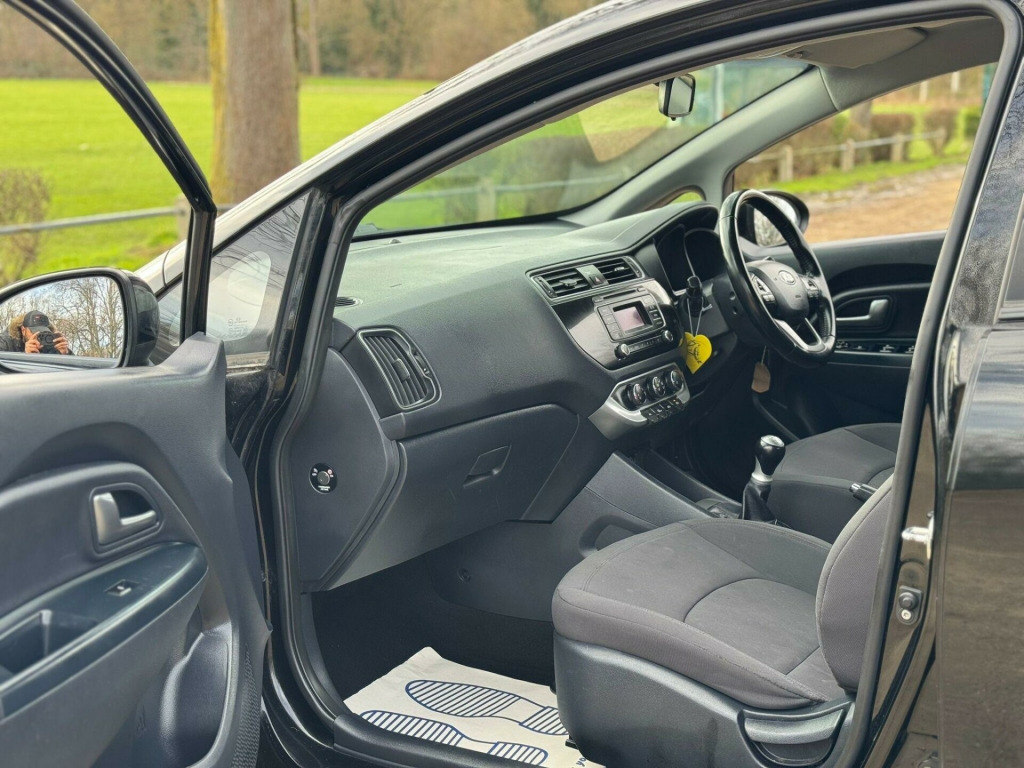 This 2015 Kia Rio SR7 presents a superb ownership proposition, boasting a Euro 6 compliant 1.25L petrol engine that ensures efficient driving. As a well appointed SR7 model, this Rio comes equipped with desirable features designed for comfort and convenience. You'll appreciate the automatic headlight control for effortless visibility, while the air conditioning system keeps the cabin at a pleasant temperature. For your entertainment, an enhanced Arkamys branded sound system is fitted, complete with Bluetooth connectivity for seamless music streaming. Manoeuvring is made simpler with the inclusion of rear parking sensors, offering added peace of mind.This particular Kia Rio SR7 stands out with its low insurance group rating, indicating that running costs are likely to be more affordable compared to similar vehicles. The combination of its Euro 6 emissions standard, efficient 1.25L engine, and practical features like Bluetooth and rear parking sensors makes this a sensible and well equipped choice for everyday motoring. oth - premium black, 12v power socket - front centre console x2, 15in alloy wheels, 3 x passenger assist grips, 4-speaker system, 60-40 split folding 2nd row seats, abs - anti lock braking system, air conditioning, airbags - curtain, airbags - driver, airbags - passenger, airbags - side, alarm system, all-round height adjustable headrests, automatic headlight control, aux connectivity, bas - brake assist system, black bezel headlights, bluetooth with music streaming, body coloured bumpers, body coloured door mirrors, body coloured exterior door handles, centre cabin light, centre console cupholders, centre fascia - black high gloss, child safety rear door locks, dab radio, dash illumination dimmer switch - rheostat, daytime running lights, drivers seat height adjuster, ebd - electronic brakeforce distribution, esc - electronic stability control, electric windows - front and rear, electrically adjustable and heated door mirrors, emergency stop signalling - ess, engine immobiliser, enhanced sound system - arkamys, external temperature display, faux leather door centre trim, front centre console sliding armrest, front passenger airbag cut off switch, front seatback pockets - driver and passenger, front and rear door map pockets with bottle holder, gear shift indicator, glovebox - cooled, glovebox with illumination, headlight levelling system, hill-start assist control - hac, isofix child seat top tethers and anchor fixings, impact sensing auto door unlocking, inside handle over ride, leather trimmed gear shift, leather trimmed steering wheel, locking wheel nuts, luggage area light, metallic finish air vent surrounds, motor driven power steering - mdps, my music memory, privacy glass - rear windows and tailgate, rds radio with cd and mp3, radiator grille - black mesh with chrome surround, rear parking sensors, remote central locking with tailgate and folding key, seatbelt reminder warning, soft-touch dashboard insert, speed sensing auto door locking, steering wheel mounted audio controls, sunvisors with vanity mirrors illumination, temporary spare wheel, tilt and telescopic steering wheel adjustment, tinted glass, traction control, trip computer, tyre pressure monitoring system - tpms, usb connection, uv reduced solar glass - windscreen and front window, vsm - vehicle stability management