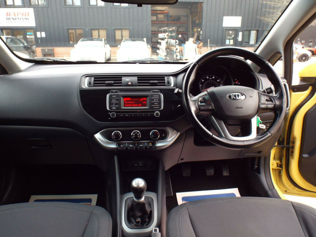 This is a clean and tidy well looked after 2015/65 Kia Rio 1.25 SR7 which comes with a full service history, a long MOT until October 2026 and a great spec. Finished in yellow the paintwork is in great condition for the age / mileage and actually really suits the car! The black cloth interior is also in great condition with no adverse wear at all. Good spec: E/Widows, E/Mirrors, Remote C/L (2xKeys, Totally unmarked alloy wheels, Rear parking sensors, Auto lights, Front and rear fog lights, AM/FM/CD Player, Aux/USB input, Bluetooth connectivity, Climate control with Air conditioning, Multi-function steering wheel, ABS/PAS/DSC, Fitted mats plus more. This is a lovely example which looks and drives great. We accept credit/debit cards and welcome part exchange too..., v power socket - front centre console x2, 15in alloy wheels, 3 x passenger assist grips, 4-speaker system, 60-40 split folding 2nd row seats, abs - anti lock braking system, air conditioning, airbags - curtain, airbags - driver, airbags - passenger, airbags - side, alarm system, all-round height adjustable headrests, automatic headlight control, aux connectivity, bas - brake assist system, black bezel headlights, bluetooth with music streaming, body coloured bumpers, body coloured door mirrors, body coloured exterior door handles, centre cabin light, centre console cupholders, centre fascia - black high gloss, child safety rear door locks, dab radio, dash illumination dimmer switch - rheostat, daytime running lights, drivers seat height adjuster, ebd - electronic brakeforce distribution, esc - electronic stability control, electric windows - front and rear, electrically adjustable and heated door mirrors, emergency stop signalling - ess, engine immobiliser, enhanced sound system - arkamys, external temperature display, faux leather door centre trim, front centre console sliding armrest, front passenger airbag cut off switch, front seatback pockets - driver and passenger, front and rear door map pockets with bottle holder, gear shift indicator, glovebox - cooled, glovebox with illumination, headlight levelling system, hill-start assist control - hac, isofix child seat top tethers and anchor fixings, impact sensing auto door unlocking, inside handle over ride, leather trimmed gear shift, leather trimmed steering wheel, locking wheel nuts, luggage area light, metallic finish air vent surrounds, motor driven power steering - mdps, my music memory, privacy glass - rear windows and tailgate, rds radio with cd and mp3, radiator grille - black mesh with chrome surround, rear parking sensors, remote central locking with tailgate and folding key, seatbelt reminder warning, soft-touch dashboard insert, speed sensing auto door locking, steering wheel mounted audio controls, sunvisors with vanity mirrors illumination, temporary spare wheel, tilt and telescopic steering wheel adjustment, tinted glass, traction control, trip computer, tyre pressure monitoring system - tpms, usb connection, uv reduced solar glass - windscreen and front window, vsm - vehicle stability management