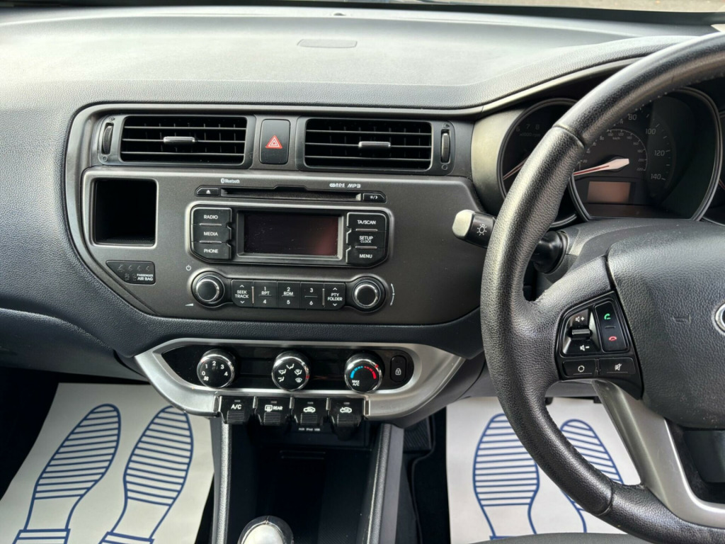 Discover this exceptional 2013 Kia Rio 2, boasting incredibly low mileage for its age, having covered just 22,000 miles with only one previous owner and a full service history. This well maintained example is powered by a responsive 1.4L petrol engine and comes with a 12 month warranty for your peace of mind. It also includes a full 12 months MOT upon purchase, ensuring its roadworthiness. Inside, you'll find convenient features such as Air Conditioning to keep you comfortable, Bluetooth connectivity for hands free calls and music streaming, and an enhanced Arkamys sound system for an enjoyable audio experience.!!..PLEASE CALL BEFORE TRAVELLING OT ADVIOD DESAPPOINTMENT !!. AT VITAL CARS WE GUARANTEE QUALITY AND CONFIDENCE IN THE ROAD AHEAD,IF ITS SMALL LOW INSURANCE CARS YOU ARE LOOKING FOR THEN VISIT OUR WEBSITE WE HAVE A GREAT RANGE TO CHOOSE FROM.This Kia Rio 2 stands out due to its remarkably low mileage and single owner history, suggesting it has been cherished and well looked after. Its low insurance group rating also means it is economical to run, making it an attractive choice for many drivers. This combination of low ownership, minimal mileage, and desirable features makes this particular Rio a compelling option compared to other vehicles of its kind. emium cloth - black, 12v power socket, 16in alloy wheels, 3 x passenger assist grips, 4-speaker system, 60-40 split folding 2nd row seats, abs - anti lock braking system, air conditioning, airbags - curtain, airbags - driver, airbags - passenger, airbags - side, alarm system, all-round height adjustable headrests, bas - brake assist system, black bezel headlights, bluetooth with music streaming, body coloured bumpers, body coloured door mirrors, body coloured exterior door handles, centre console cupholders, centre fascia - metallic, child safety rear door locks, coat hooks - rear, daytime running lights, drivers seat height adjuster, ebd - electronic brakeforce distribution, esc - electronic stability control, eco shift indicator, electric windows - front and rear, electrically adjustable and heated door mirrors, electrically folding door mirrors, emergency stop signalling - ess, engine immobiliser, enhanced sound system - arkamys, external temperature display, faux leather door centre trim, front centre console sliding armrest, front passenger airbag cut off switch, front seatback pockets, front and rear door map pockets with bottle holder, glovebox - cooled, glovebox with illumination, headlight levelling system, high mounted brake light, hill-start assist control - hac, isofix child seat top tethers and anchor fixings, impact sensing auto door unlocking, inside handle over ride, integrated indicator lights led in door mirrors, leather trimmed gear shift, leather trimmed steering wheel, locking wheel nuts, motor driven power steering - mdps, projection front fog lights, rds radio with cd and mp3, radiator grille - black mesh with chrome surround, remote central locking with tailgate and folding key, seatbelt reminder warning, side impact protection system, soft-touch dashboard insert, speed sensing auto door locking, steering wheel mounted audio controls, sunvisors with vanity mirrors illumination, tilt and telescopic steering wheel adjustment, tinted glass, trip computer, tyre repair kit, usb and aux ports, vsm - vehicle stability management