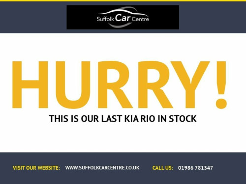 KIA RIO 1.4 3 Hatchback 5dr Petrol Manual Euro 5 (107 bhp) Service History and 12 Months MOT 6 Months Premium Blue Chip Warranty Road Side Assistance (Optional) Located at Ilketshall 12V Power Socket, 17in Alloy Wheels, 3 x Passenger Assist Grips, 4-Speaker System, 60-40 Split Folding 2nd Row Seats, ABS - Anti Lock Braking System, Airbags - Curtain, Airbags - Driver, Airbags - Passenger, Airbags - Side, Alarm System, All-Round Height Adjustable Headrests, Automatic Air Conditioning, Automatic Defog System, Automatic Headlight Control, BAS - Brake Assist System, Black Bezel Headlights, Bluetooth with Music Streaming, Body Coloured Bumpers, Body Coloured Door Mirrors, Body Coloured Exterior Door Handles, Centre Cabin Light, Centre Console Cupholders, Child Safety Rear Door Locks, Coat Hooks - Rear, Cornering Lights, Cruise Control, Dash Illumination Dimmer Switch - Rheost,