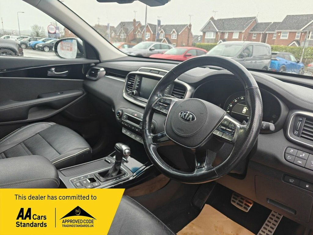 This 2019 Kia Sorento CRDi GT-Line S boasts a clear vehicle history, offering you peace of mind. This vehicle also comes with two keys, a full service history and only has one former keeper. This seven seat, four wheel drive SUV is powered by an efficient 2.2 litre diesel engine and meets Euro 6 emissions standards. Inside, you'll find modern convenience with Apple CarPlay and Voice Control, a wireless mobile phone charger, and a heated steering wheel for those colder journeys. Parking is made easier with a reversing camera system featuring dynamic guidelines and rear parking sensors. The GT-Line S trim level signifies a higher specification, indicating this Sorento offers more than many similar vehicles. Its low insurance group rating is a notable highlight, suggesting lower running costs. This well equipped and practical Kia Sorento is ready for family adventures and everyday driving. ========= Specification 360 Degree Around View Monitor / Rear View Camera / Parking Sensors (Front & Rear) Adaptive Cruise Control / Intelligent Speed & Traffic Assist Apple CarPlay & Android Auto (with Voice Control) Dual / 2-Zone Automatic Climate Control (incl. rear AC) Lane Keep Assist / Lane Departure / Driver Attention Warning Forward Collision Avoidance / Emergency Braking (Pedestrian & Cyclist) Heated Seats (Front + Rear) & Heated Steering Wheel Large Touchscreen with Integrated Navigation (8–12in, SYNC / Nissan / Pivi etc.) Blind Spot Detection & 1 x 12V Power Socket and 1 x USB Chargin, 10-Way Power Adjustable Drivers Seat wit, 19in Alloy Wheels, 2 x 12V Power Sockets, 3 x Passenger Assist Grips, 360 Degree Around View Monitor, 3rd Row Seats Air Conditioning, 40-20-40 Split Folding and Reclining 2nd, 7in LCD Full Colour Display, 8-Way Power Adjustable Passengers Seat -, 8in Touchscreen Satellite Navigation wit, ABS with Electronic Brakeforce Distribut, Advanced Anti -Theft Alarm System, All-Round 3-Point Seatbelts, All-Round Electric Windows with Auto Up-, All-Round Height Adjustable Headrests, Aluminium Door Scuff Plates with Front I, Aluminium Pedals, Android Auto with Voice Control, Apple CarPlay with Voice Control, Armrest - Rea