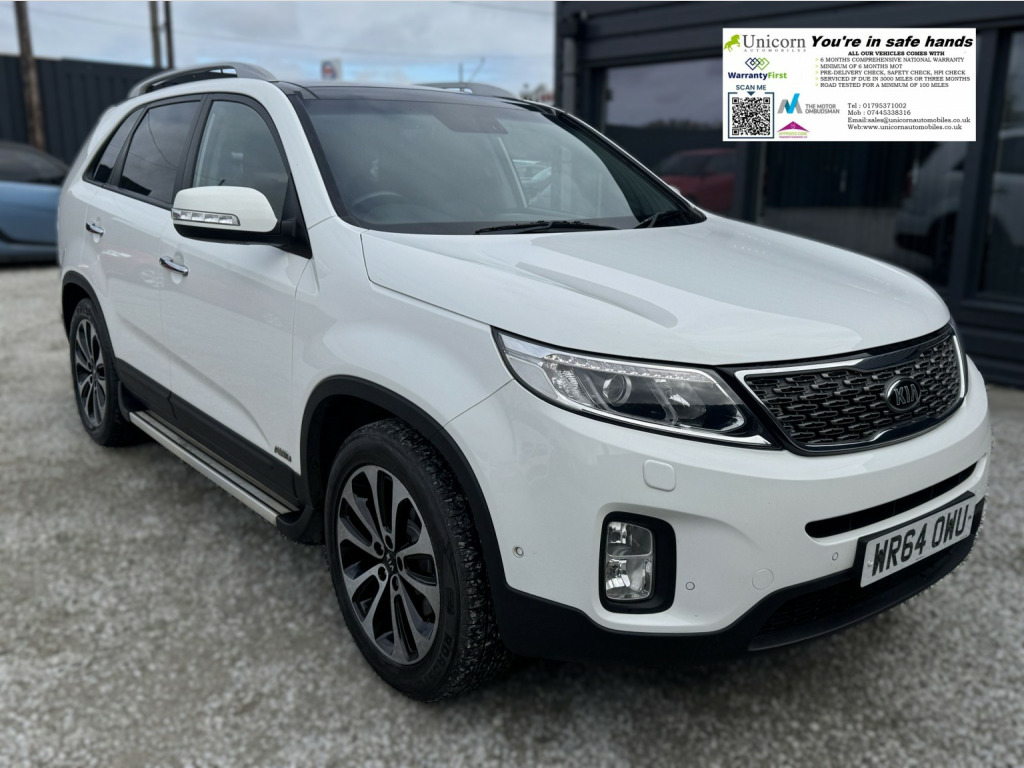 WE ARE PLEASED TO PRESENT THIS 1 PREVIOUS OWNER KIA SORENTO KX-4, A TOP-OF-THE-RANGE 7-SEATER SUV FINISHED IN WHITE WITH A SMOOTH AUTOMATIC TRANSMISSION. THIS PREMIUM MODEL FEATURES 19 DIAMOND-CUT ALLOY WHEELS, A FULL BLACK LEATHER INTERIOR, HEATED AND VENTILATED FRONT SEATS, HEATED REAR SEATS, HEATED STEERING WHEEL, AND FACTORY-FITTED SIDE STEPS FOR ADDED COMFORT. THE ELECTRIC DRIVERS SEAT WITH MEMORY FUNCTION OFFERS EFFORTLESS ADJUSTMENT, WHILE THE PANORAMIC ELECTRIC SLIDING SUNROOF ENHANCES THE SENSE OF SPACE. ADVANCED TECHNOLOGY INCLUDES SATELLITE NAVIGATION, ACTIVE PARK ASSIST, REVERSE CAMERA, KEYLESS ENTRY AND START, BLUETOOTH HANDS-FREE CALLING AND AUDIO STREAMING, AS WELL AS AUX AND USB CONNECTIVITY, DUAL FRONT CLIMATE CONTROL, CRUISE CONTROL, SAFETY AND PERFORMANCE FEATURES INCLUDE ADAPTIVE XENON HEADLIGHTS, AUTOMATIC LIGHTS, RAIN-SENSING WIPERS, FRONT AND REAR PARKING SENSORS, REAR PRIVACY GLASS WITH REAR BLINDS, AND ELECTRIC FOLDING MIRRORS. SUPPLIED WITH TWO KEYS, THIS VEHICLE COMES WITH A 6-MONTH COMPREHENSIVE NATIONAL WARRANTY, HAS BEEN SAFETY CHECKED AND HPI CLEARED, RECENTLY SERVICED, AND ROAD TESTED FOR MINIMUM OF 100 MILES FOR YOUR PEACE OF MIND. FLEXIBLE FINANCE OPTIONS ARE AVAILABLE TO SUIT YOUR NEEDS. READY TO DRIVE AWAY. 19in Alloy Wheels, 60-40 Split Folding 2nd Row Seats, 7in Touchscreen Satellite Navigation with European Mapping with Traffic Message Channel - TMC, Active ECO Switch, Adaptive Front Lighting System, Air Filter, Alarm System, All-Round Height Adjustable Headrests, Ambient Light - Front Centre Console Tray Illumination, Armrest - Rear Centre, Auto Dimming Rear-View Mirror, Automatic Headlight Control, Bluetooth with Music Streaming, Bluetooth with Voice Recognition, Body Coloured Bumpers, Centre Cabin Light, Chrome Instrument Cluster Rings, Cornering Lights, Cruise Control, Dash Illumination Dimmer Switch - Rheostat, Door Handles - Chrome, Dual Automatic Air Conditioning with Ioniser, EBD - Electronic Brakeforce Distribution, ESC - Electronic Stability Control, Electrically Adjustable and Heated Door Mirrors, Electrically Folding Door Mirrors, Engine Start-Stop Button with Smart Entry System, Flex Steer, Footbrake - Type parking brake, Front Cabin Map Light, Front Door Courtesy Reflectors, Front Fog Lights, Front Passenger Airbag Cut Off Switch, Glovebox with Illumination, Head Rests - Front Active, Headlight Washers, Headlights - Xenon with Auto Levelling, Heated Front Seats, Heated Outer Rear Seats, High Performance Dampers, Impact Sensing Auto Door Unlocking, Interior Door Lock-Unlock Function, Leather Trimmed Gear Shift, Leather Trimmed Instrument Panel, Metallic Finish Interior Door Handles, Mouldings - Side Sill - Black, Panoramic Sunroof - Electric One Touch with Safety Function, Pedals - Alloy, Privacy Glass - Rear Windows and Tailgate, Rear Air Ventilation, Rear Parking Sensors, Rear Spoiler, Reversing Camera System, Roof Rails, Scuff Plates - Aluminium, Scuff Plates - Illuminated, Seats - 50-50 Split Flat Folding 3rd Row, Seats - Drivers Electrical Adjustment, Seats - Passenger 4-Way Power Adjustment, Speakers x10, Speed Sensing Auto Door Locking, Speed and Multifunction LCD Full Colour Display, Sunvisors with Vanity Mirrors Illumination, Suspension - Self-Levelling, TSA - Trailer Stability Assist, Tinted Glass, USB and AUX Ports, VSM - Vehicle Stability Management, Ventilated Front Seats