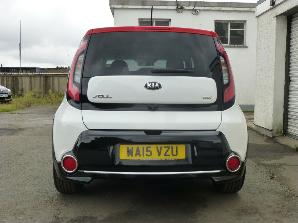 kia soul 1.6 crdi 126 bhp mixx ltd edition euro 5 suv Presenting the 2015 Kia Soul. With unique styling precise handling and a wealth of entertainment options it redefines fun to drive 8 inch colour Touchscreen Satellite Navigation with European Mapping Aux Connectivity, Bluetooth Hands Free Connectivity Bluetooth with Music Streaming DAB/RDS Radio with CD and MP3 Infinity Premium Sound System, Speakers x8 USB Connection Cruise Control External Temperature Display Flex Steer Reversing Camera System Trip Computer Tyre Pressure Monitoring System TPMS Voice Control 18 inch Alloy Wheels gloss black with diamond cut face Black High Gloss Front and Rear bumpers, chrome Door Handles Electric Windows x4 Electrically Folding Door Mirrors chrome Front Grille Front Grille with Sports Black High Gloss, Integrated Indicator Lights LED in Door Mirrors Privacy Glass infra red Roof and Coloured Door Mirrors Tinted Glass Urban Styling Pack, Automatic Headlight Control Front Fog Lights Headlight Levelling System LED Daytime Running Lights LED High Mounted Brake Light, Projection Headlights lrd Rear Lights 60 40 Split Folding 2nd Row Seats All-Round Height Adjustable Headrests Automatic Air Conditioning, Centre Cabin Map Light Centre Console Cupholders Centre Fascia in Black High Gloss Day and Night Rear-View Mirror Door Map Pockets -Front and Rear Front Cabin Map Light Leather Trimmed Gear Shift Leather Trimmed Steering Wheel Luggage Compartment Hooks, Luggage Compartment Load Cover Luggage Compartment Portable Light LED Luggage Under Floor Tray Pollen Filter Satin Chrome Interior Door Handles front Speakers with Mood Lighting Steering Wheel Mounted Audio Controls Sunvisors with Vanity Mirrors Illumination Tilt and Telescopic Steering Wheel Adjustment Power Steering Speed Limiter ABS Anti Lock Braking System BAS Brake Assist System Deadlocks, EBD Electronic Brakeforce Distribution ESC Electronic Stability Control Emergency Stop Signalling ESS Engine Immobiliser Front Passenger Airbag Cut Off Switch Hill-Start Assist Control HAC ISOFIX Child Seat Top Tethers and Anchor Fixings Impact Sensing Auto Door Unlocking, Remote Central Locking with Folding Key Seatbelt Reminder Warning Speed Sensing Auto Door Locking VSM Vehicle Stability Management, 62000 miles with history finishrd in kia [aa9] infra red roof and mirrors and [ud] clear white body, , , , , , , , , , , hpi report available on all vehicles