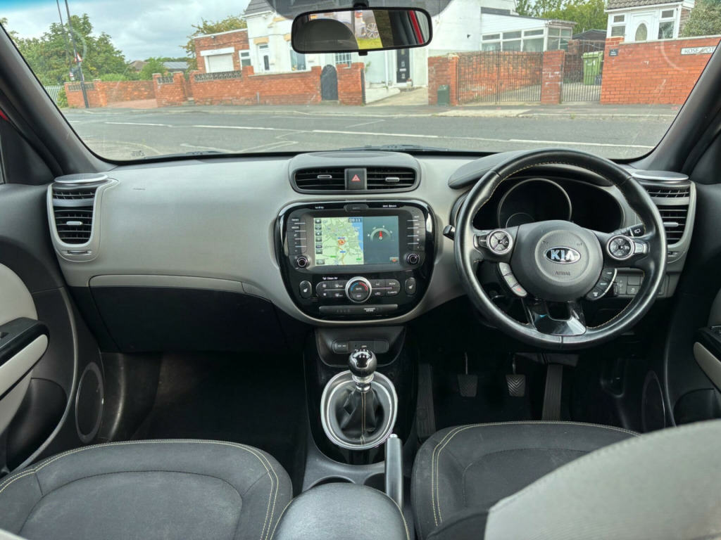 This 2015 Kia Soul CRDi Mixx offers exceptional value with its remarkably low mileage of just 66,374 miles, a clear vehicle history, and a desirable specification. Powered by an efficient 1.6 litre diesel engine, this Mixx trim model is equipped with a suite of convenient features designed to enhance your driving experience. These include a helpful reversing camera system with rear parking assistance, automatic headlight control for effortless visibility, and automatic air conditioning for consistent comfort. Stay connected on the go with Bluetooth hands free connectivity, and enjoy your favourite music through the impressive Infinity premium sound system.The appeal of this Kia Soul is further amplified by its economical running costs, making it a smart choice for any driver. It boasts an impressive fuel economy of 57 miles per gallon, contributing to lower fuel bills. Furthermore, its low CO2 emissions are beneficial for both the environment and potentially for road tax. The vehicle also falls into a low insurance group, which can help to reduce your annual motoring expenses. These highlights collectively demonstrate how this particular Kia Soul stands out as a well maintained and cost effective option compared to other vehicles in its class. o-tone woven - cloth - grey and black with yellow stitching, woven - cloth - black with yellow stitching, sat nav, heated seats, infinity sound system, 12v power socket - front, 12v power socket - luggage compartment, 18in alloy wheels - a-type, 60-40 split folding 2nd row seats, 8in touchscreen, 8in touchscreen satellite navigation with european mapping, abs - anti lock braking system, airbags - curtain, airbags - driver, airbags - front side, airbags - passenger, all-round height adjustable headrests, armrest - door - artificial leather trim, automatic air conditioning, automatic headlight control, aux connectivity, bas - brake assist system, bluetooth hands free connectivity, bluetooth with music streaming, bumpers - black high gloss - front-rear, centre cabin map light, centre console cupholders, centre fascia - black high gloss, cruise control, dab/rds radio with cd and mp3, day and night rear-view mirror, deadlocks, door handles - chrome, door map pockets - front and rear, ebd - electronic brakeforce distribution, esc - electronic stability control, electric windows - front and rear, electrically folding door mirrors, emergency stop signalling - ess, engine immobiliser, external temperature display, flex steer, front cabin map light, front fog lights, front grille - chrome, front grille - sports black high gloss, front passenger airbag cut off switch, front seatback pocket - passenger side only, glovebox with illumination, headlight levelling system, heated front seats, hill-start assist control - hac, isofix child seat top tethers and anchor fixings, ignition keyhole illumination, impact sensing auto door unlocking, infinity premium sound system, integrated indicator lights led in door mirrors, led daytime running lights, led high mounted brake light, leather trimmed gear shift, leather trimmed steering wheel, locking wheel nuts, luggage compartment - hooks, luggage compartment - load cover, luggage compartment - portable light led, luggage under floor tray, pollen filter, power steering, privacy glass - rear windows and tailgate, projection headlights, rear lights - led, remote central locking with folding key, reversing camera system, roof coloured door mirrors, satin chrome interior door handles, seatbelt reminder warning, speakers - front mood lighting, speakers x8, speed limiter, speed sensing auto door locking, steering wheel mounted audio controls, sunvisors with vanity mirrors illumination, temporary spare wheel, tilt and telescopic steering wheel adjustment, tinted glass, trip computer, tyre pressure monitoring system - tpms, usb connection, urban styling pack, vsm - vehicle stability management, voice control