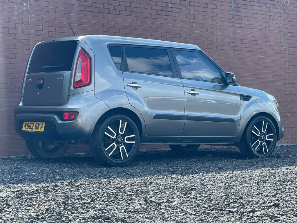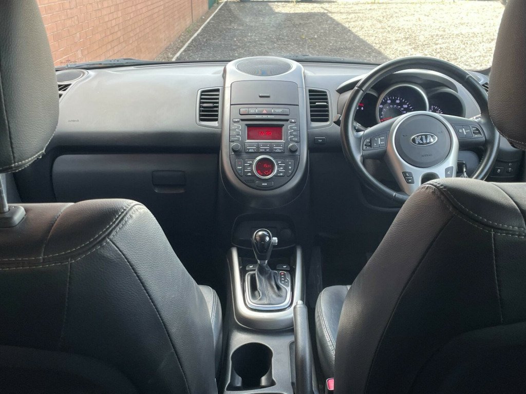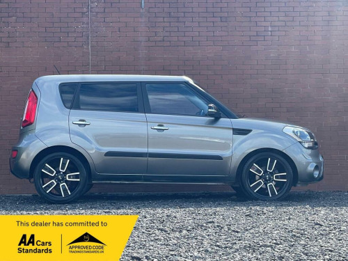 With only 41688 miles on the clock, this 2013 Kia Soul is a rare find. As a CRDi Quantum variant with a Quantum trim, this Kia Soul is equipped with a 1.6L diesel engine and has had only two owners from new. The vehicle includes rear parking sensors to make parking easier, as well as Bluetooth with voice recognition and music streaming, so you can stay connected on the move. You'll also appreciate the automatic headlight control and heated front seats, adding extra convenience and comfort to your journeys.This Kia Soul stands out with its low insurance group, potentially saving you money on your premiums. The low mileage for its age also suggests that it has been gently used and well-maintained, making it a smart choice for those seeking a dependable and economical vehicle., ather - black, 12v power socket - front, 12v power socket - luggage compartment, 18in alloy wheels - black, 6-speaker system, 60-40 split folding 2nd row seats, abs - anti lock braking system, adaptive brake lights, additional front speaker - external amp and sub woofer, airbags - curtain, airbags - driver, airbags - front side, airbags - passenger, all-round height adjustable headrests, armrest - door - artificial leather trim, automatic air conditioning, automatic headlight control, bas - brake assist system, black bezel headlights, black high gloss a-pillars, black high gloss door mirrors, bluetooth with music streaming, bluetooth with voice recognition, bumpers - black high gloss - front-rear, centre cabin light, centre console cupholders, centre fascia storage tray - lidded, cruise control, day and night rear-view mirror, deadlocks, door handles - chrome, door map pockets - front and rear, drivers seat height adjuster, ebd - electronic brakeforce distribution, esc - electronic stability control, electric windows - front and rear, electrically adjustable door mirrors, emergency stop signalling - ess, engine immobiliser, external temperature display, front cabin map light, front fog lights, front grille - chrome, front passenger airbag cut off switch, front seatback pockets, glovebox with illumination, headlight levelling system, heated door mirrors, heated front seats, hill-start assist control - hac, isofix child seat top tethers and anchor fixings, ignition keyhole illumination, impact sensing auto door unlocking, led daytime running lights, led high mounted brake light, leather trimmed gear shift, leather trimmed steering wheel, locking wheel nuts, luggage area light, luggage compartment - hooks, luggage compartment - net, luggage under floor tray, metallic finish centre fascia trim, metallic finish interior door handles, mouldings - waistline - black, power steering, privacy glass - rear windows and tailgate, projection headlights, rds radio with cd and mp3, rear lights - led, rear parking sensors, remote central locking with folding key, seatbelt reminder warning, speed sensing auto door locking, steering wheel mounted audio controls, sunvisors with vanity mirrors illumination, temporary spare wheel, tilt and telescopic steering wheel adjustment, trip computer, usb and aux ports, vsm - vehicle stability management, ipod connectivity