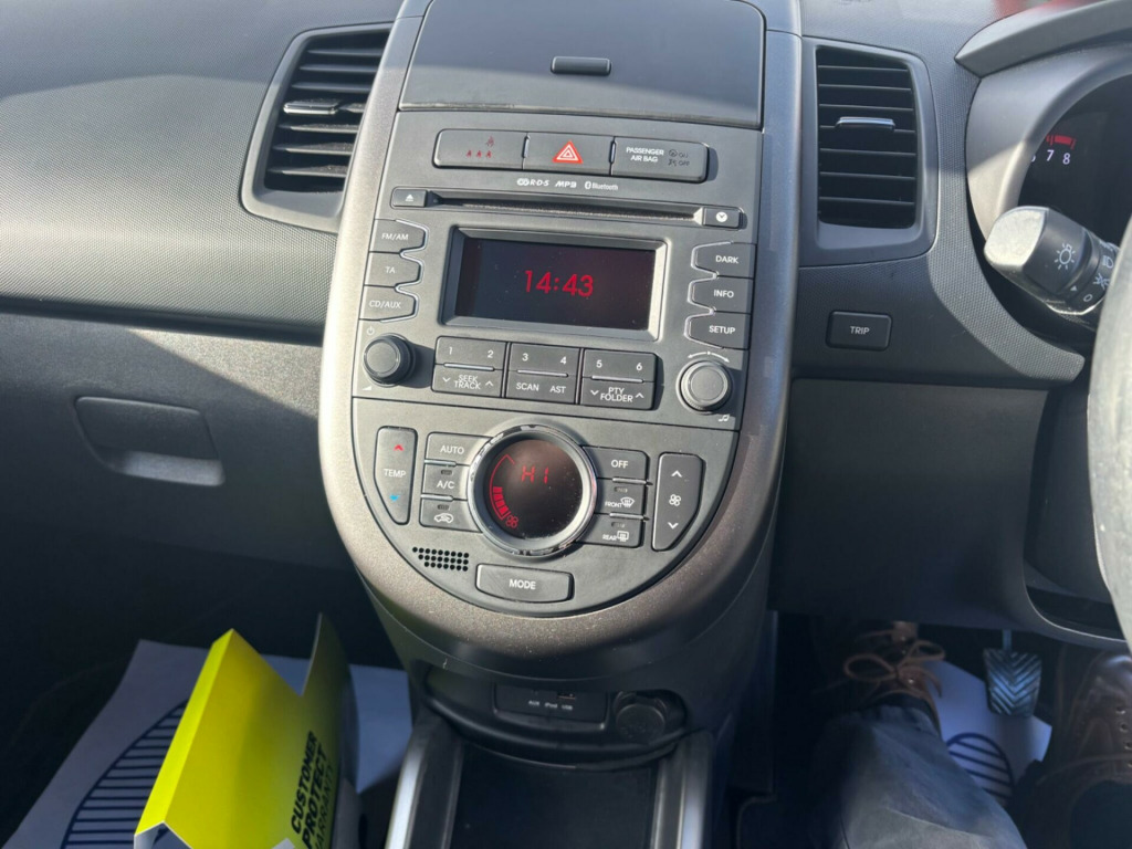 Discover this 2014 Kia Soul GDi Quantum with exceptionally low mileage for its age last owner since 2022, having covered just 32,651 miles. This well maintained vehicle boasts a clear history check and has had only two previous owners, offering you peace of mind. Under the bonnet, you'll find a responsive 1.6 litre petrol engine, paired with the Quantum trim level.This Kia Soul comes equipped with a range of convenient features designed to enhance your driving experience. Enjoy seamless connectivity with Bluetooth, allowing for both music streaming and voice recognition. Parking is made easier thanks to the rear parking sensors, and the automatic headlight control ensures optimal visibility. For your comfort, it also features automatic air conditioning, providing a pleasant cabin environment in all conditions. The low insurance group rating further adds to its appeal, making it an economical choice.. 12V Power Socket - Front, 12V Power Socket - Luggage Compartment, 18in Alloy Wheels - Black, 6-Speaker System, 60-40 Split Folding 2nd Row Seats, ABS - Anti Lock Braking System, Adaptive Brake Lights, Additional Front Speaker - External Amp and Sub Woofer, Airbags - Curtain, Airbags - Driver, Airbags - Front Side, Airbags - Passenger, All-Round Height Adjustable Headrests, Armrest - Door - Artificial Leather Trim, Automatic Air Conditioning, Automatic Headlight Control, BAS - Brake Assist System, Black Bezel Headlights, Black High Gloss A-Pillars, Black High Gloss Door Mirrors, Bluetooth with Music Streaming, Bluetooth with Voice Recognition, Bumpers - Black High Gloss - Front-Rear, Centre Cabin Light, Centre Console Cupholders, Centre Fascia Storage Tray - Lidded, Day and Night Rear-View Mirror, Deadlocks, Door Handles - Chrome, Door Map Pockets - Front and Rear, Drivers Seat Height Adjuster, EBD - Electronic Brakeforce Distribution, ESC - Electronic Stability Control, Electric Windows - Front and Rear, Electrically Adjustable Door Mirrors, Emergency Stop Signalling - ESS, Engine Immobiliser, External Temperature Display, Front Cabin Map Light, Front Fog Lights, Front Grille - Chrome, Front Passenger Airbag Cut Off Switch, Front Seatback Pockets, Glovebox with Illumination, Headlight Levelling System, Heated Door Mirrors, Heated Front Seats, Hill-Start Assist Control - HAC, ISOFIX Child Seat Top Tethers and Anchor Fixings, Ignition Keyhole Illumination, Impact Sensing Auto Door Unlocking, LED Daytime Running Lights, LED High Mounted Brake Light, Leather Trimmed Gear Shift, Leather Trimmed Steering Wheel, Locking Wheel Nuts, Luggage Area Light, Luggage Compartment - Hooks, Luggage Compartment - Net, Luggage Under Floor Tray, Metallic Finish Centre Fascia Trim, Metallic Finish Interior Door Handles, Mouldings - Waistline - Black, Power Steering, Privacy Glass - Rear Windows and Tailgate, Projection Headlights, RDS Radio with CD and MP3, Rear Lights - LED, Rear Parking Sensors, Remote Central Locking with Folding Key, Seatbelt Reminder Warning, Speed Sensing Auto Door Locking, Steering Wheel Mounted Audio Controls, Sunvisors with Vanity Mirrors Illumination, Temporary Spare Wheel, Tilt and Telescopic Steering Wheel Adjustment, Trip Computer, USB and AUX Ports, VSM - Vehicle Stability Management, iPod Connectivity, Leather - Black. Full service history