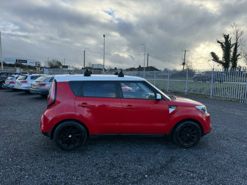 Kia Soul 1.6i 16V 130bhp 5Dr HatchbackRegistered July 2014Fresh Out Of England.Only 1 Previous Owner.Warranted 120k UK Miles With Verified VOSA MOT History.Full Pre Delivery Inspection In Our Workshop.3 Months Comprehensive No Quibble In House Warranty Included.MOT July 2026.Finished In Unmarked Rosso Red With A White Roof.Power Steering, Electric Windows, Electric Door Mirrors, Air Conditioning, Rear Parking Sensors, Trip Computer, RDS Radio /CD Player, Alloy Wheels, Remote Central Locking With Factory Alarm & Immobiliser, 2 Keys Supplied.Part Exchange & Nationwide Warranty Included.Viewing By Appointment Only.Signature Cars Of Portadown Beat Value Approved Used Cars In Northern Ireland.***** Check Out Our 5Star Reviews On Line *****, v power socket - front, 16in steel wheels, 6-speaker system, 60-40 split folding 2nd row seats, abs - anti lock braking system, air conditioning, airbags - curtain, airbags - driver, airbags - front side, airbags - passenger, all-round height adjustable headrests, aux connectivity, bas - brake assist system, body coloured bumpers, body coloured door mirrors, body coloured exterior door handles, centre cabin map light, centre console cupholders, dab/rds radio with cd and mp3, day and night rear-view mirror, daytime running lights, deadlocks, door handles - interior - silver finished, door map pockets - front and rear, ebd - electronic brakeforce distribution, esc - electronic stability control, electric windows - front and rear, electrically adjustable door mirrors, emergency stop signalling - ess, engine immobiliser, external temperature display, flex steer, front cabin map light, front fender side indicator lights, front grille - chrome, front passenger airbag cut off switch, front seatback pocket - passenger side only, full wheel covers, glovebox with illumination, headlight levelling system, headlights - multi focus reflector, high mounted brake light, hill-start assist control - hac, isofix child seat top tethers and anchor fixings, ignition keyhole illumination, impact sensing auto door unlocking, luggage area light, luggage compartment - hooks, luggage compartment - load cover, pollen filter, power steering, rear combination lights, remote central locking with folding key, seatbelt reminder warning, speed sensing auto door locking, steering wheel mounted audio controls, sunvisors with vanity mirrors illumination, temporary spare wheel, tilt and telescopic steering wheel adjustment, tinted glass, trip computer, tyre pressure monitoring system - tpms, usb connection, vsm - vehicle stability management