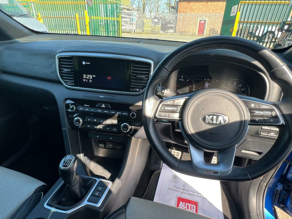 KIA SPORTAGE 1.6 CRDi MHEV GT-Line. 2021 Diesel Hybrid Manual Blue, , Leather - Grey & Black, 12V Power Sockets - Front and Rear Consoles, 19in Alloy Wheels - GT Line, 3 x Passenger Assist Grips, 4.2in Supervision Colour Cluster Display, 6-Speaker System, 60-40 Split Folding Rear Seats, 8in Touchscreen Satellite Navigation with European Mapping and Traffic Messaging Channel - TMC, Advanced Anti-Theft System including Immobiliser and Alarm, All-Round 3-Point Seatbelts, All-Round Electric Windows with Drivers Auto Up-Down Function, All-Round Height Adjustable Headrests, Aluminium Door Scuff Plates, Aluminium Pedals, Android Auto with Voice Control, Anti-Lock Braking System - ABS with Electronic Brakeforce Distribution - EBD, Apple CarPlay with Voice Control, Auto Dimming Rear-View Mirror, Automatic Light Control, Black Wheel Arch Body Mouldings and Side Sills with Dark Chrome Insert, Bluetooth with Music Streaming, Body Coloured Door Mirrors, Body Coloured Exterior Door Handles with Chrome Insert, Centre Cabin Light, Centre Console Storage Box, Centre Fascia - Black High Gloss, Child Safety Rear Door Locks, Chrome Boot Sill Guard, Chrome Window Surrounds, Coat Hooks - Rear, Cruise Control with Speed Limiter, Cupholders in Rear Armrest, DAB Radio with MP3 Compatibility, Dark Chrome Front Bumper Insert, Dark Chrome Front Grille Surround, Door Deadlocks, Driver Attention Warning - DAW, Driver and Passenger Sunvisors with Vanity Mirror and Illumination, Drivers Seat Manual Height Adjuster, Drivers Seat Power Lumbar Support, Drivers Wide View Door Mirror, Dual Automatic Air Conditioning, EcoDynamics Badge, Electrically Folding-Adjustable and Heated Door Mirrors with LED Indicators, Electronic Stability Control - ESC - with Downhill Brake Control - DBC, Emergency Stop Signalling - ESS, Engine Start-Stop Button with Smart Entry System, Exhaust - Dual, Front Cabin LED Map Light with Sunglasses Case, Front Door Courtesy Reflectors, Front Parking Sensors, Front Passenger Airbag Cut Off Switch, Front Seatback Pockets, Front Seatbelt Height Adjusters, Front Wiper De-Icer, Front and Rear Centre Armrests, Front and Rear Door Storage, Gear Shift Indicator, Glovebox with Illumination, Head Rests - Front Active, Headlights - High Beam Assist - HBA, Headlining - Black, Heated Front and Outer Rear Seats, High Gloss Black Blade Mesh Radiator Grille, Hill-Start Assist Control - HAC, ISOFIX Child Seat Top Tethers and Anchor Fixings, Impact Sensing Auto Door Unlocking, Interior Door Lock-Unlock Function, Kia Connected Services Featuring TomTom - Traffic - Speed Cameras - Local Search and Weather Updates, LED Bi-Function Headlights, LED Daytime Running Lights, LED Ice-Cube Front Fog Lights, LED Rear Tail Lights, Lane Keep Assist System - LKAS, Leather Trimmed Door Armrests, Leather Trimmed Gearshift, Locking Wheel Nuts, Luggage Area Light, Luggage Area Load Cover, Luggage Net Hooks, Privacy Glass - Rear Windows and Tailgate, Rain Sensing Front Wipers, Rear Parking Sensors, Rear Spoiler, Rear USB Charging Port, Rear Ventilation Duct, Reversing Camera System, Roof Rails, Satin Chrome Interior Door Handles, Shark Fin Antenna, Silver Painted Front and Rear Skid Plates, Speed Limit Information Function - SLIF, Speed Sensing Auto Door Locking, Steering Wheel - D-Shaped Sports Leather with Perforated Inserts and GT-Line Logo, Steering Wheel Mounted Audio Controls, TMK - Tyre Mobility Kit, TSA - Trailer Stability Assist, Telematics System with UVO Connect Services, Tilt and Telescopic Steering Wheel Adjustment, Tinted Glass, Trip Computer, Twin Curtain Airbags with Roll-Over Sensor, Twin Front Airbags, Twin Side Airbags - Front, Tyre Pressure Monitoring System - TPMS, USB Port for Connection of a Media Device, Visible Vehicle Identification Number - VIN, Welcome and Follow-Me-Home Light Functionality, Windscreen Washer Level Warning. , WE ARE LOCATED IN WINSFORD CHESHIRE 10 MINS FROM JUNCTION 18 OF THE M6 MOTORWAY,, , FINANCE + NATIONWIDE DELIVERY AVAILABLE ON REQUEST... £ 13,995.00, , Email : [email protected], , T : 0333 323 4406 , M : 07941 044 460,