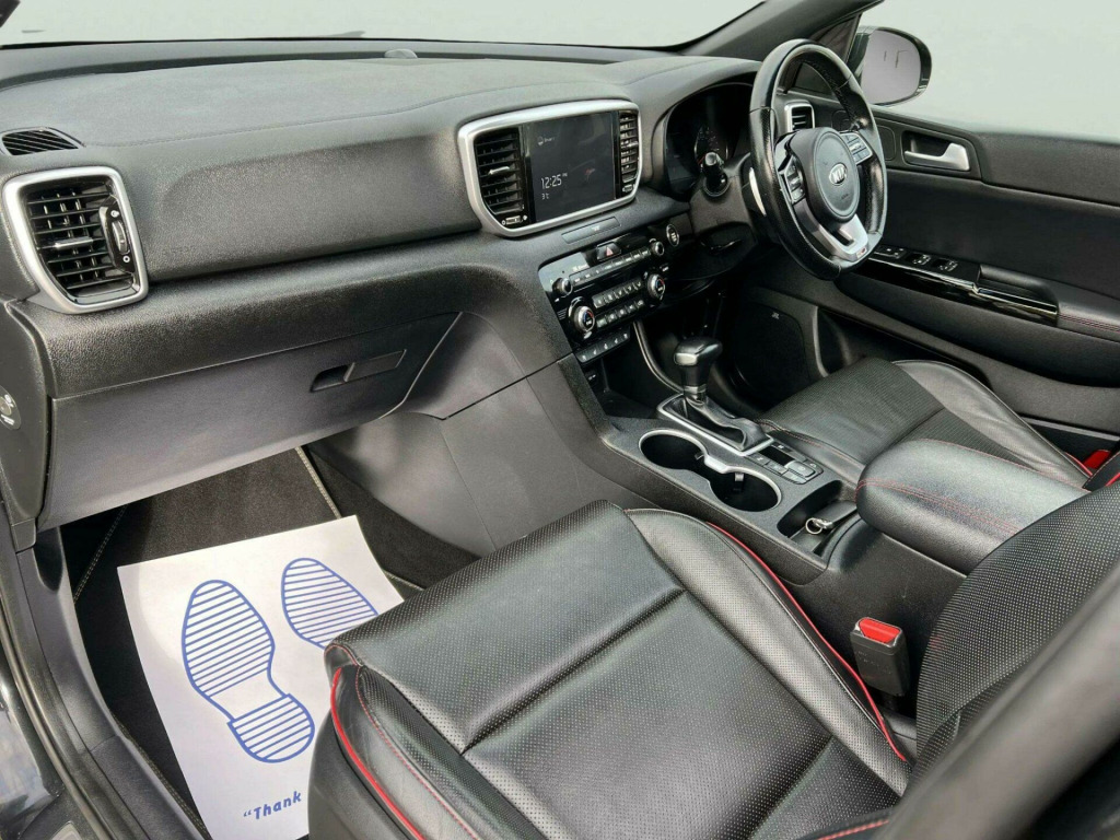 ------PART/EXCHANGE WELCOME. NATIONWIDE WIDE DELIVERY. -----,HPI CLEAR, ULEZ COMPLIANCE, FULL-SERVICE HISTORY, 2 KEYS AND 1 YEAR FREE WARRANTY FOR YOUR PEACE OF MIND.=================This 2020 Kia Sportage CRDi GT Line S presents an exceptional ownership proposition with its remarkably low mileage of just 22,875 miles, supported by a clear vehicle history check and a recent service completed on 2025-11-17 at 22,853 miles. This Euro 6 compliant 1.6L Diesel Hybrid model benefits from a comprehensive 12 months warranty, offering peace of mind. The GT Line S trim level boasts desirable features such as an Engine Start-Stop Button with Smart Entry System for effortless access, front parking sensors to aid manoeuvrability, and striking LED Bi-Function headlights. Inside, you will appreciate the convenience of Dual Automatic Air Conditioning and seamless integration with your smartphone via Android Auto with Voice Control.The appeal of this Sportage is further enhanced by its impressive fuel economy of 47 mpg, making it an economical choice for your journeys. Its low CO2 emissions also contribute to its environmental credentials. Furthermore, this vehicle falls into a low insurance group, which can help to reduce your annual running costs. These highlights collectively demonstrate how this particular Kia Sportage offers a superior ownership experience compared to other vehicles in its class. -way drivers and 8-way passengers power adjustable seat, 12v power sockets - front and rear consoles, 19in alloy wheels - gt line, 3 x passenger assist grips, 360 degree around view monitor, 4.2in supervision colour cluster display, 60-40 split folding rear seats, 8-speaker jbl - premium sound system with subwoofer - external amp and front centre speaker, 8in touchscreen satellite navigation with european mapping and traffic messaging channel - tmc, advanced anti-theft system including immobiliser and alarm, all-round 3-point seatbelts, all-round electric windows with driver and front passenger auto up-down function, all-round height adjustable headrests, aluminium door scuff plates, aluminium pedals, android auto with voice control, anti-lock braking system - abs with electronic brakeforce distribution - ebd, apple carplay with voice control, auto dimming rear-view mirror, automatic light control, black wheel arch body mouldings and side sills with dark chrome insert, blind-spot collision warning - bcw, bluetooth with music streaming, body coloured door mirrors, body coloured exterior door handles with chrome insert, centre console storage box, centre fascia - black high gloss, child safety rear door locks, chrome boot sill guard, chrome window surrounds, coat hooks - rear, cupholders in rear armrest, dab radio with mp3 compatibility, dark chrome front bumper insert, dark chrome front grille surround, door deadlocks, drive mode select, driver attention warning - daw, driver and passenger sunvisors with vanity mirror and illumination, drivers seat power lumbar support, drivers wide view door mirror, dual automatic air conditioning, ecodynamics badge, electrically folding-adjustable and heated door mirrors with led indicators, electronic parking brake, electronic stability control - esc - with downhill brake control - dbc, emergency stop signalling - ess, engine start-stop button with smart entry system, exhaust - dual, forward collision-avoidance assist - city - pedestrian, front cabin led map light with sunglasses case, front door courtesy reflectors, front parking sensors, front passenger airbag cut off switch, front seatback pockets, front seatbelt height adjusters, front wiper de-icer, front and rear centre armrests, front and rear door storage, gear shift indicator, glovebox with illumination, head rests - front active, headlights - high beam assist - hba, headlining - black, heated front and outer rear seats, heated steering wheel, high gloss black blade mesh radiator grille, hill-start assist control - hac, isofix child seat top tethers and anchor fixings, impact sensing auto door unlocking, interior door lock-unlock function, kia connected services featuring tomtom - traffic - speed cameras - local search and weather updates, led bi-function headlights, led daytime running lights, led ice-cube front fog lights, led rear tail lights, lane keep assist system - lkas, leather trimmed door armrests, leather trimmed gearshift, locking wheel nuts, luggage area light - led, luggage area load cover, luggage net hooks, panoramic sunroof - electric one touch with safety function, privacy glass - rear windows and tailgate, rain sensing front wipers, rear parking sensors, rear spoiler, rear usb charging port, rear ventilation duct, reversing camera system, roof rails, satin chrome interior door handles, shark fin antenna, side cabin led lights, silver painted front and rear skid plates, smart cruise control with stop and go functionality, smart power tailgate, speed limit information function - slif, speed sensing auto door locking, steering wheel - d-shaped sports leather with perforated inserts and gt-line logo, steering wheel - paddle shift, steering wheel mounted audio controls, tmk - tyre mobility kit, tsa - trailer stability assist, telematics system with uvo connect services, tilt and telescopic steering wheel adjustment, tinted glass, trip computer, twin curtain airbags with roll-over sensor, twin front airbags, twin side airbags - front, tyre pressure monitoring system - tpms, usb port for connection of a media device, ventilated front seats, visible vehicle identification number - vin, welcome and follow-me-home light functionality, windscreen washer level warning, wireless phone charger
