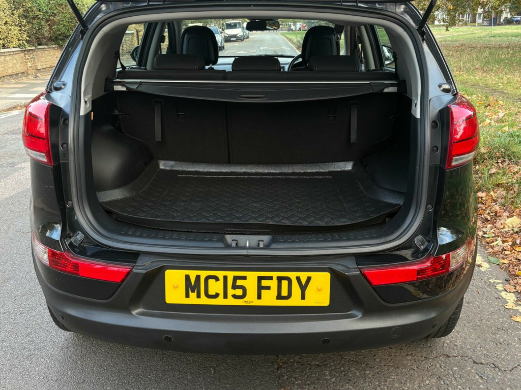 Blackheath Motor Group Are Proud To Present This Huge Specification And Lovely Looking Kia Sportage 1.6 Petrol 1 2015/15 Finished in Black Metallic With Contrasting Black Interior. A Colour Combination Which Looks Stunning in Person. Only Covered A Very Low & Vosa Verified 53,000 Miles From With Full Up To Date Main Dealer/Specialist Service History. A Vast 12 Service Entries in Total. Just Been Serviced at 52,000 Miles. Stacks and Stacks of Paperwork. Very Well Maintained Vehicle Via Just 2F Owners. Presented With 2 Keys, MOT: APR 26. Specification Includes: Kia In Car Entertainment With MP3, AUX, Bluetooth, Parking Sensors, Electric Heated Folding Mirrors, Multi Function Leather Steering, Day Time Lights, Cruise Control, Climate Control. And Much More. A Very Nice Looking Family Ca. Blackheath Motor Group is a Family Run Business Which Prides Itself in Not Only Supplying Motor Vehicles But Also Building Positive Relationships with its Satisfied Customers. All of Our Stock is Carefully Picked From Main Dealers Throughout the UK. Please Visit Our Website or Call Us To Book an Appointment on 07543455948 / 02084655506. We Are Always Happy to Give Car Related Advice and Answer Any Questions. Finance Available Via Zuto. 3 Months Warranty One Year Free AA Breakdown Cover. v power socket - front centre console x2, 12v power socket - luggage compartment, 16in alloy wheels, 3 x passenger assist grips, 6-speaker system, 60-40 split folding 2nd row seats, abs - anti lock braking system, air conditioning, airbags - driver, airbags - front side, airbags - passenger, airbags - side, airbags - twin curtain, alarm system, all-round height adjustable headrests, ambient light - front centre console tray illumination, armrest - rear centre, aux connectivity, bluetooth hands free connectivity, bluetooth with music streaming, body coloured door mirrors, body coloured exterior door handles, body coloured side sill mouldings, centre console storage, child safety rear door locks, chrome front grille surround, coat hooks - rear, cornering lights, cruise control, cupholders - centre console with ambient lighting, cupholders - rear, dbc - downhill brake control, deadlocks, drivers seat height adjuster, ebd - electronic brakeforce distribution, esc - electronic stability control, electric windows - front and rear, electrically adjustable and heated door mirrors, emergency stop signalling - ess, engine immobiliser, front cabin map light, front centre console armrest, front door courtesy reflectors, front fog lights, front passenger airbag cut off switch, front seatback pockets, front and rear door storage, full size alloy spare wheel, gear shift indicator, glovebox with illumination, head rests - front active, hill-start assist control - hac, isofix child seat top tethers and anchor fixings, ignition keyhole illumination, impact sensing auto door unlocking, led daytime running lights, leather trimmed gear shift, leather trimmed steering wheel, locking wheel nuts, luggage area light, luggage compartment - hooks, luggage compartment - load cover, motor driven power steering - mdps, mouldings - side sill - black, rds radio with cd and mp3, radiator grille - black gloss horizontal bar, rain sensing front wipers, rear spoiler, remote central locking with folding key, speed sensing auto door locking, steering wheel mounted audio controls, sunvisors with vanity mirrors and ticket holder, tsa - trailer stability assist, tilt and telescopic steering wheel adjustment, tinted glass, trip computer, tyre pressure monitoring system - tpms, usb connection, voice control